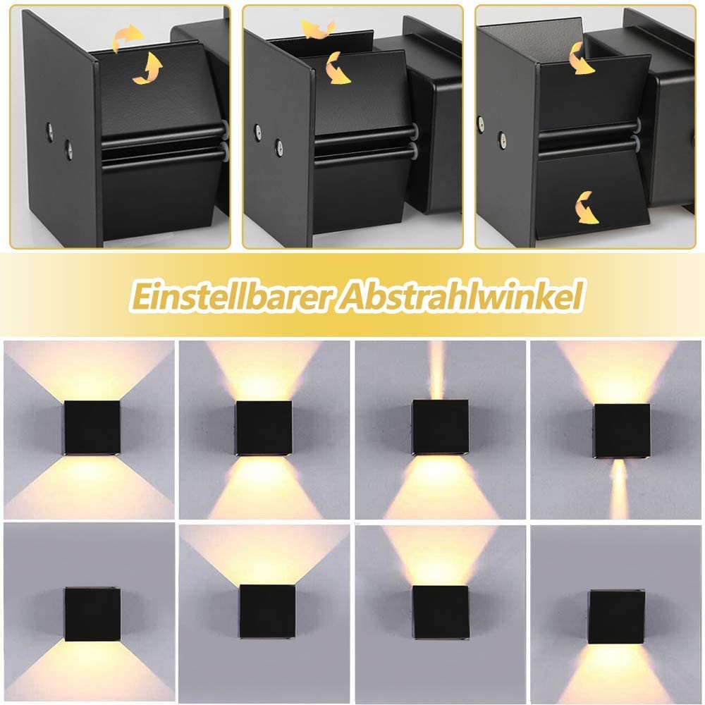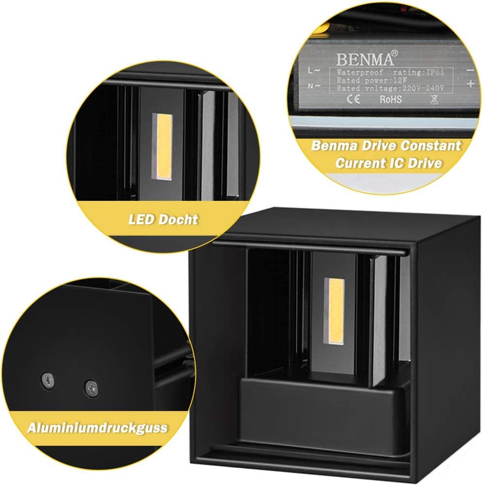 BENMA 12W Wandleuchte, Wandlampe Innen/Aussen, Warmweiss Wandleuchten, 3000K LED Aussenwandleuchte IP65 für Schlafzimmer, Wohnzimmer, Draussen, Verstellbarem Abstrahlwinkel, Schwarz