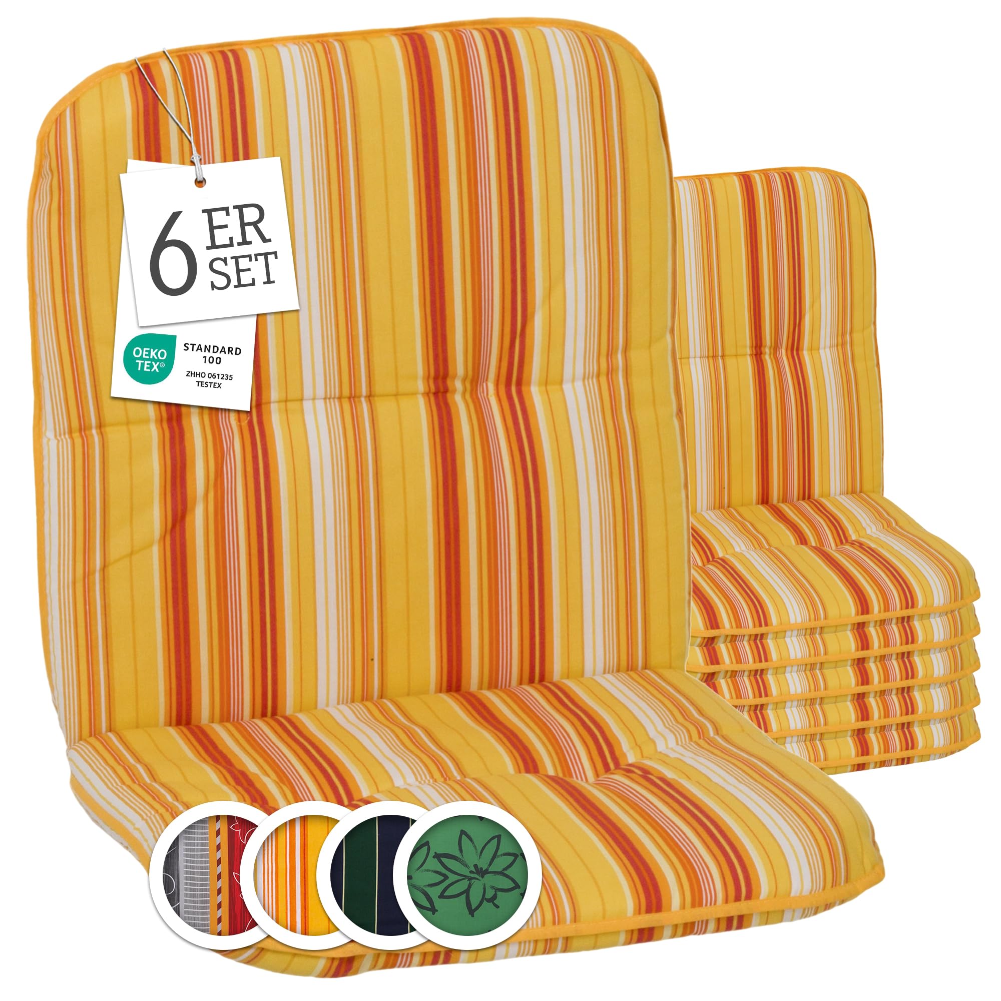 Beo Bali Gartenstuhl-Auflagen Niedriglehner 96x47 cm, 6er Set orange gelb weiss gestreift | Waschbare, UV-beständige Sitz-Kissen | Atmungsaktive Polster-Auflagen nach Öko-Tex Standard | Made in EU
