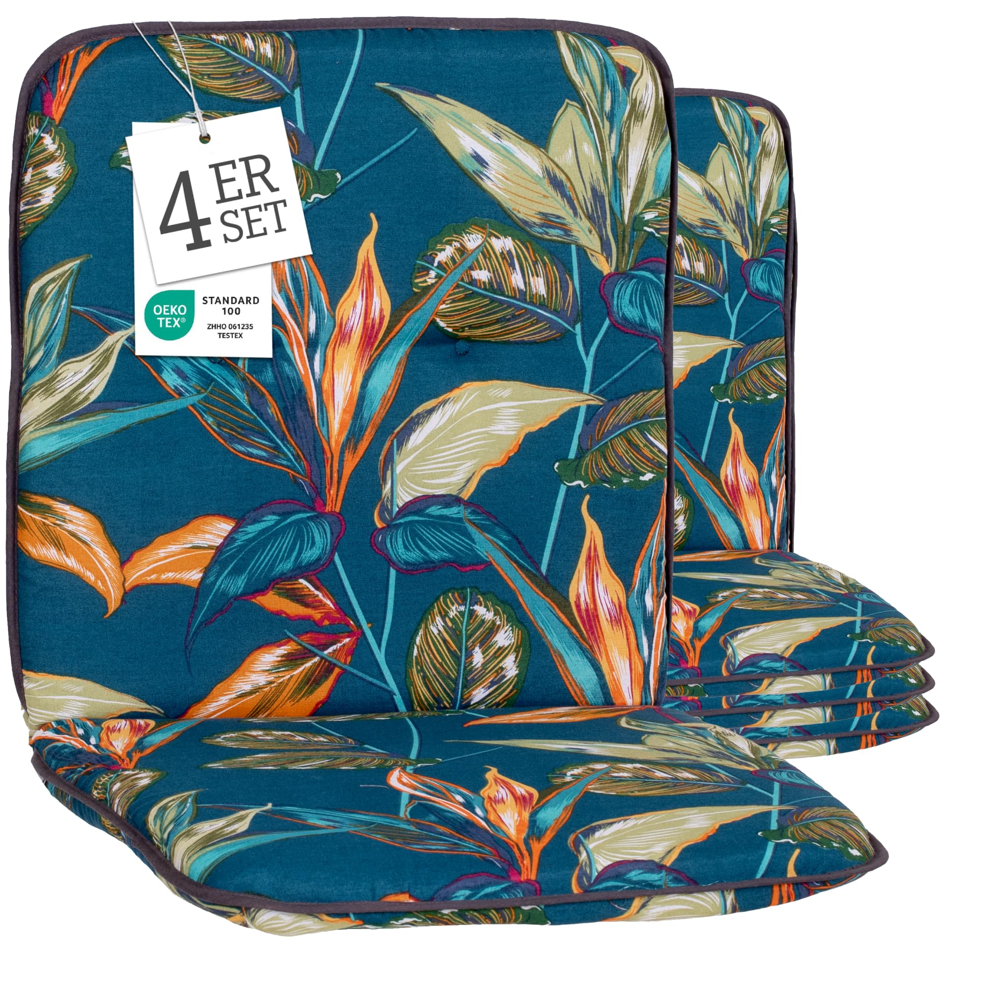 Beo Niedriglehner Gartenstuhlauflage Bali - 4er Set - 47x44x52 cm - Waschbar - Atmungsaktives Gartenstuhlkissen - Baumwolle & Extra Dickes Polster - UV-beständig, Oeko-TEX Zertifiziert - Enschede