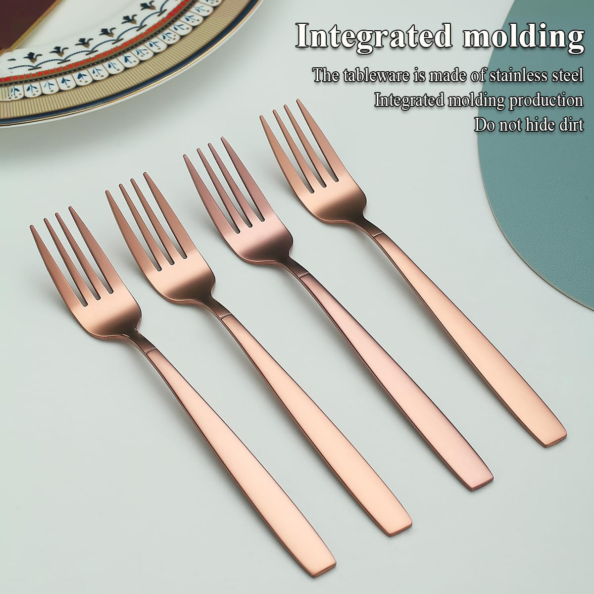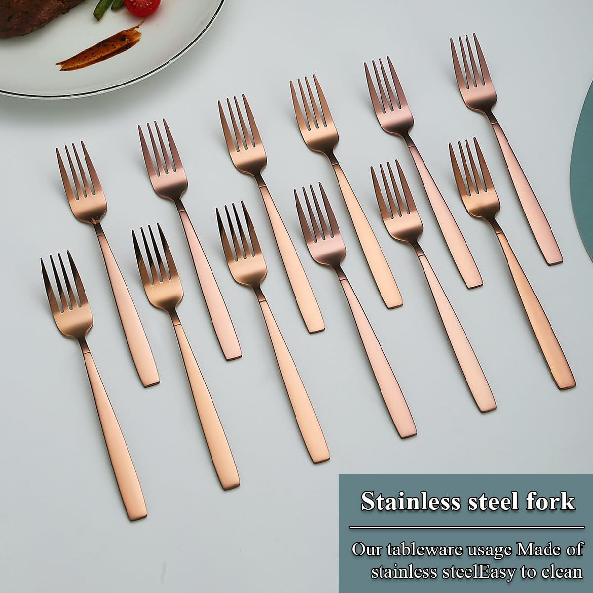 Berglander Roségold Tafelgabeln von 12 Stück, Titanverkupferung Edelstahl Modernes Speisegabel-Set, Gabeln und Löffel Besteck, ideal für Zuhause, Toilettenzimmer, Hotel, Hochzeit, spülmaschinenfest