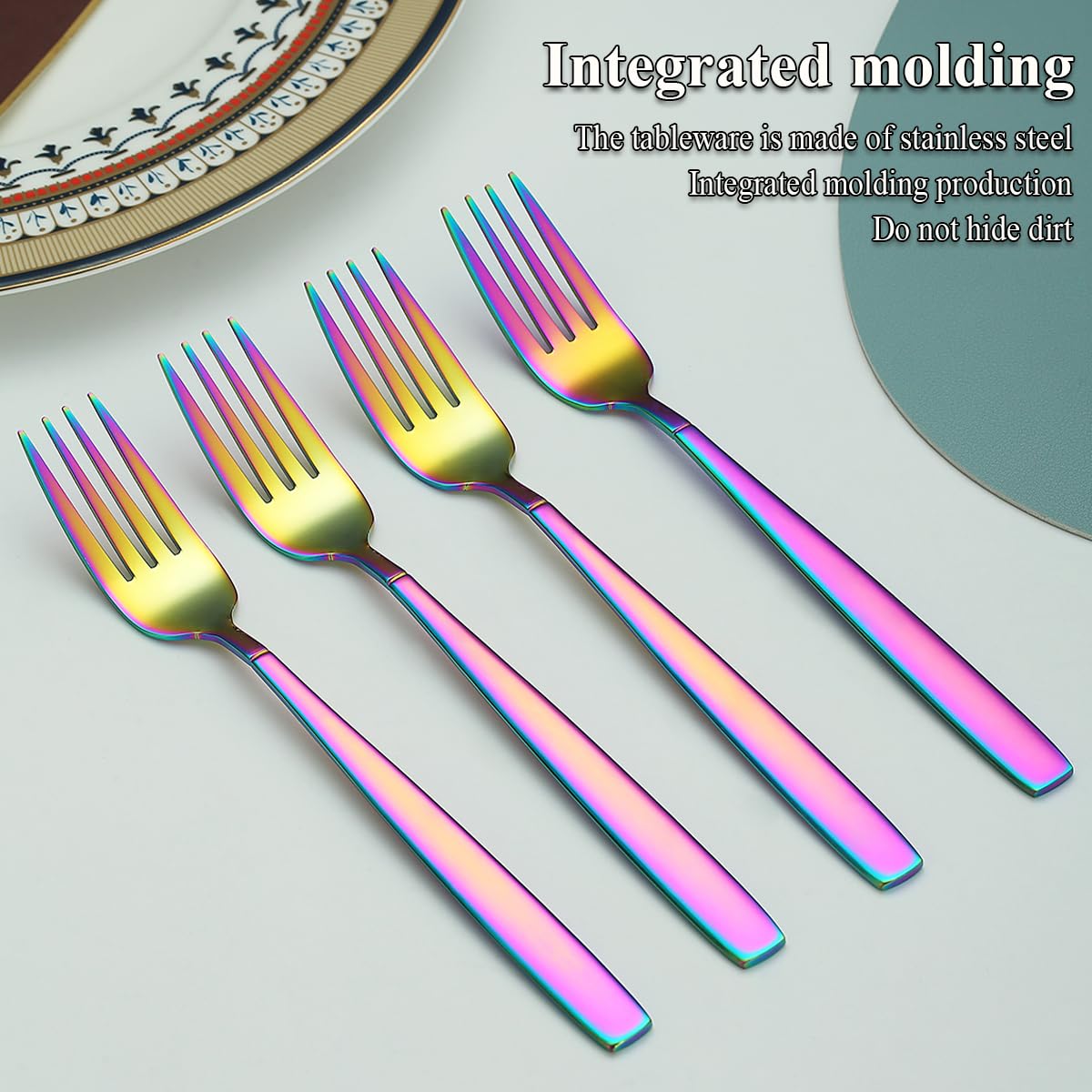 Berglander Regenbogen Tafelgabeln von 12 Stück, Titan bunt beschichtet Edelstahl Modernes Speisegabel-Set, Gabeln und Löffel Besteck, ideal für Zuhause, Restauroom, Hotel, Hochzeit, spülmaschinenfest