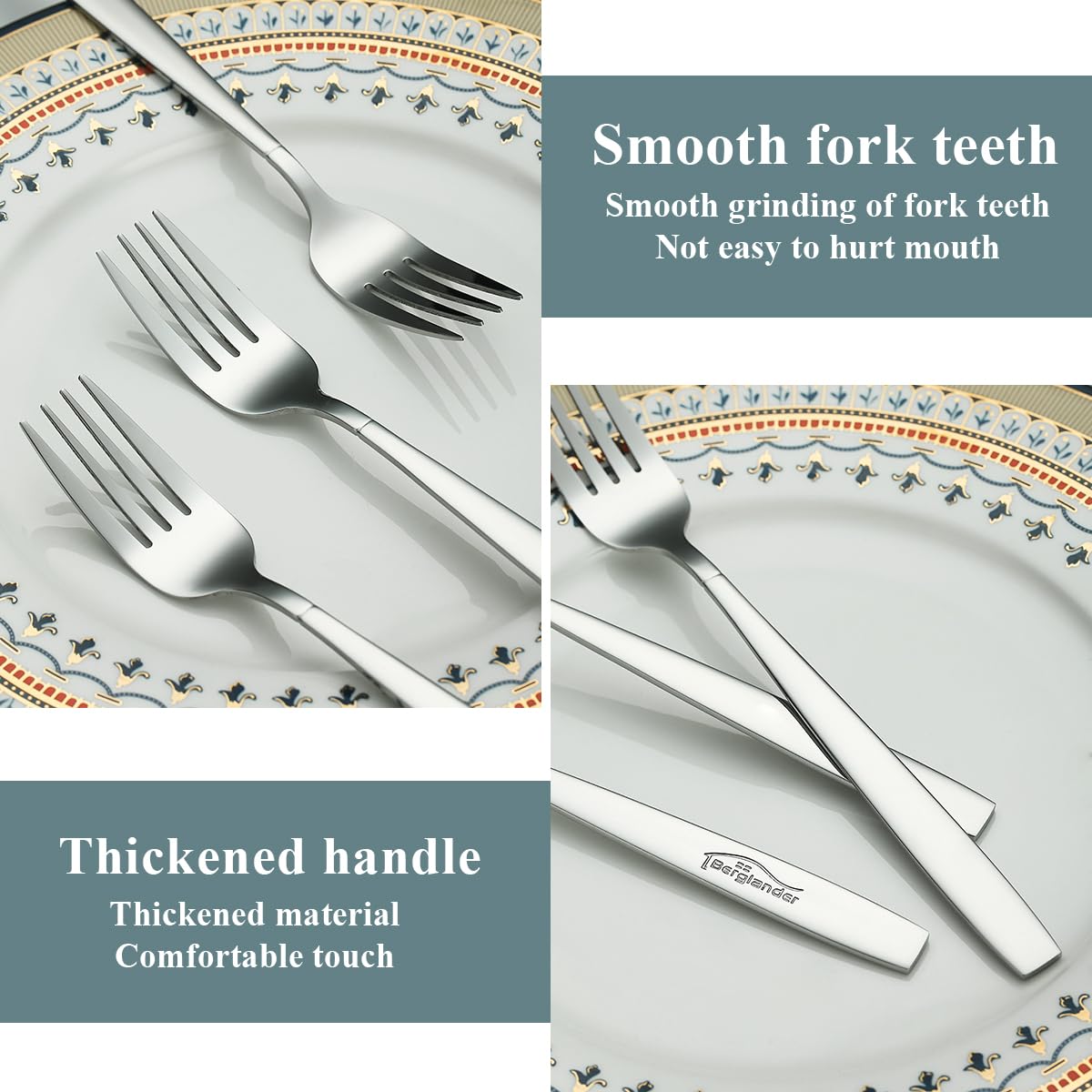 Berglander Tafelgabeln von 12 Stück, Edelstahl Modernes Speisegabel-Set, Gabeln und Löffel Besteck, ideal für Zuhause, Restauroom, Hotel, Hochzeit, Party, spülmaschinenfest