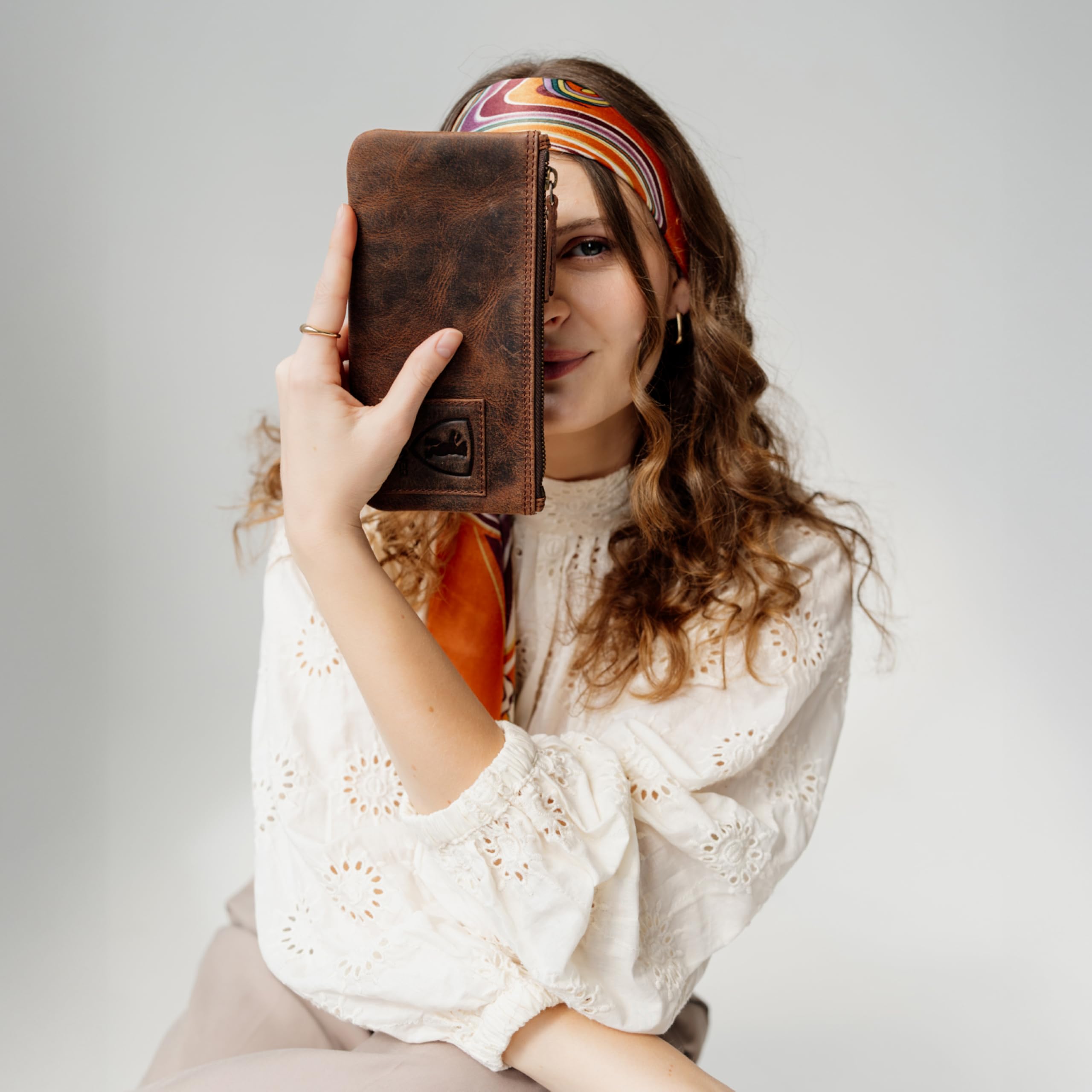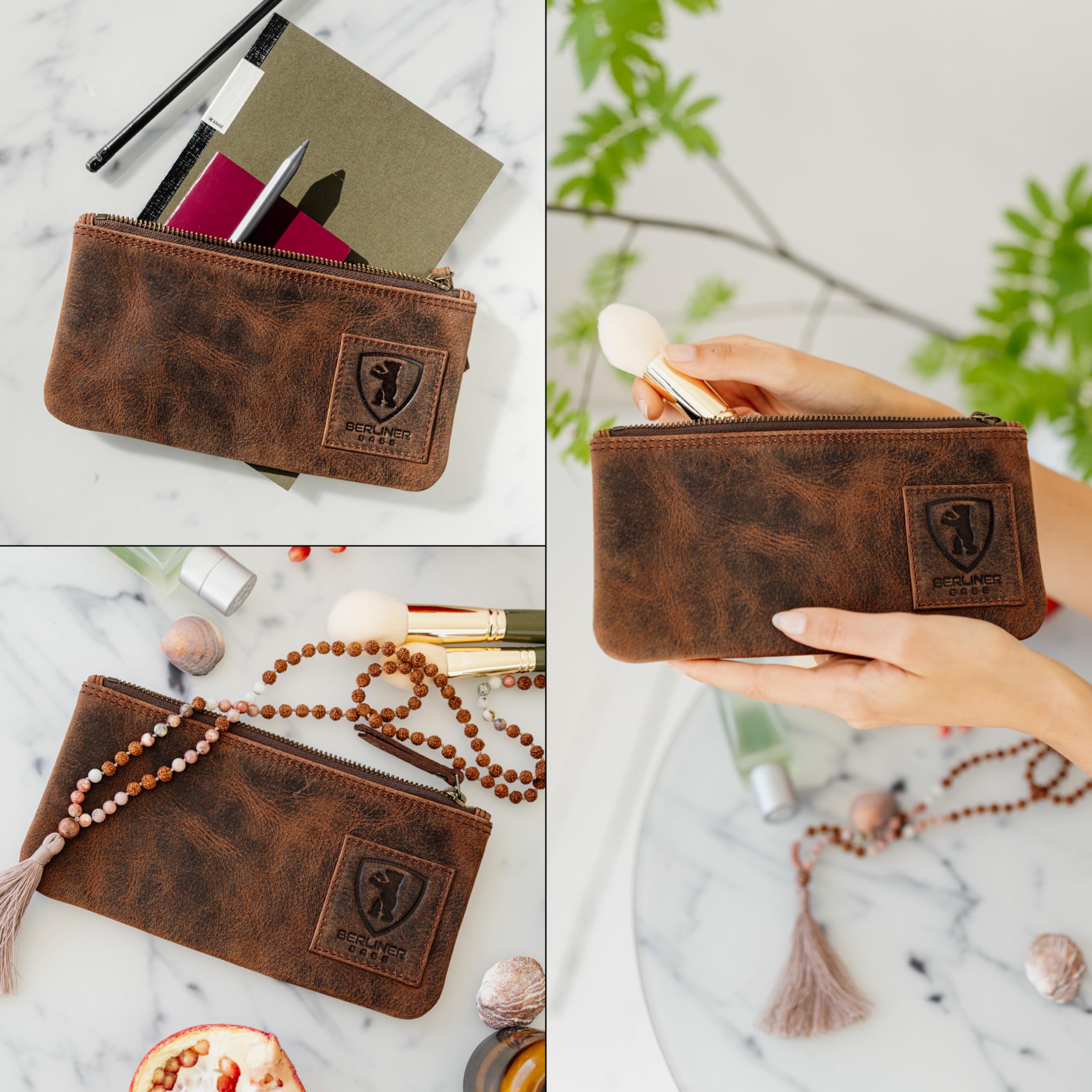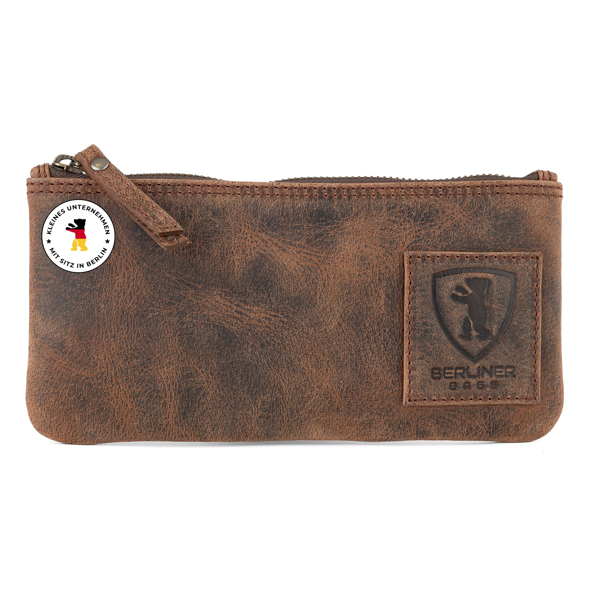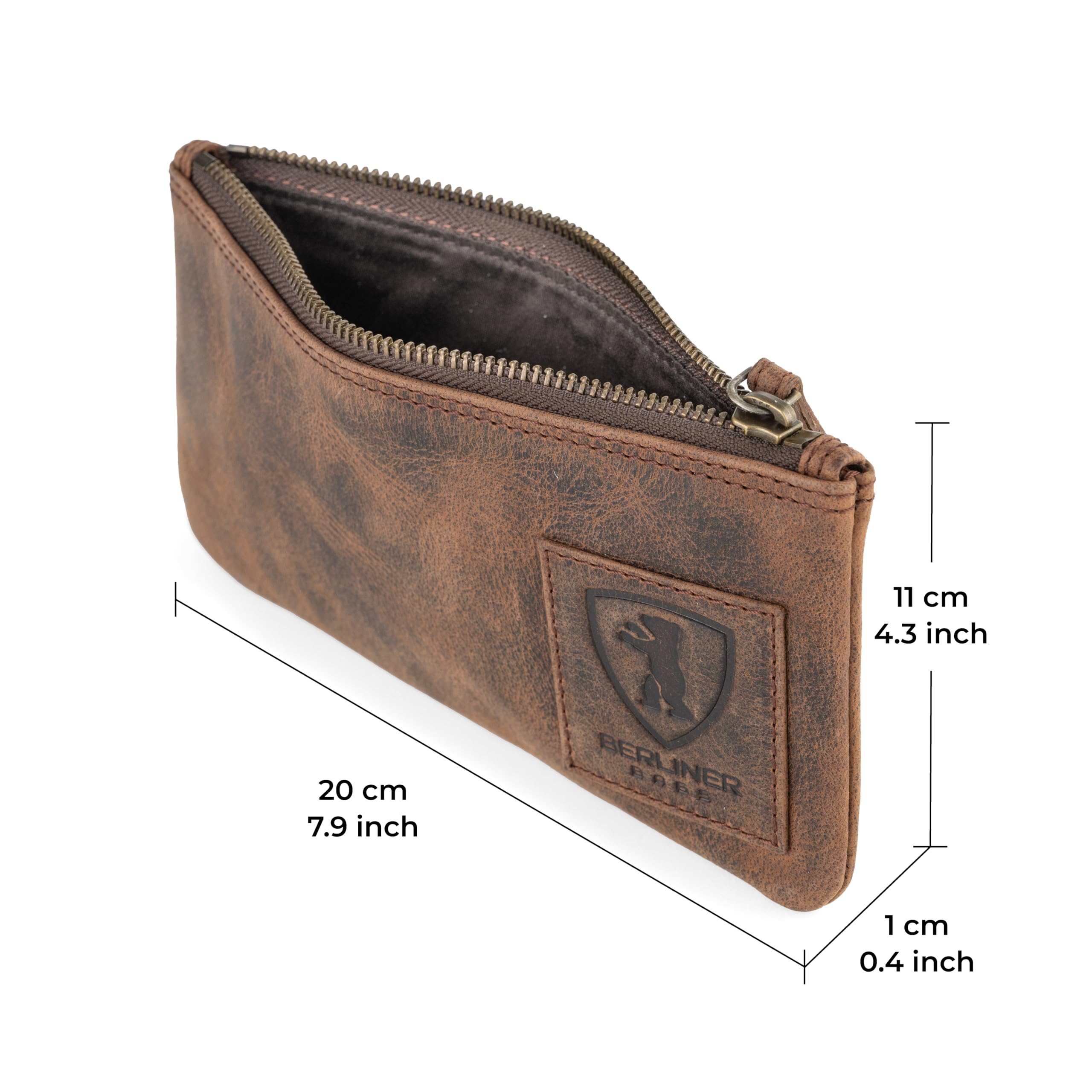 Berliner Bags Vintage Federmäppchen Etui aus Leder mit YKK Reissverschluss, Federmappe für Stifte - Braun