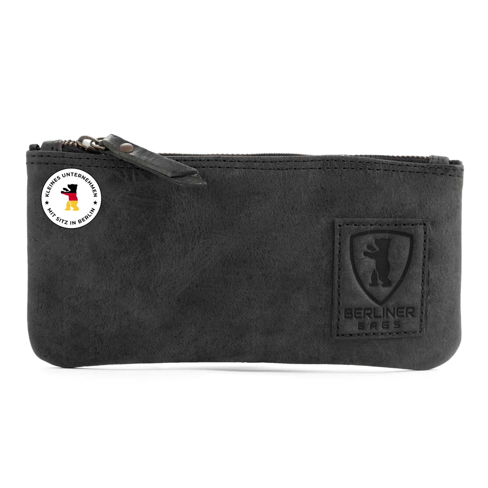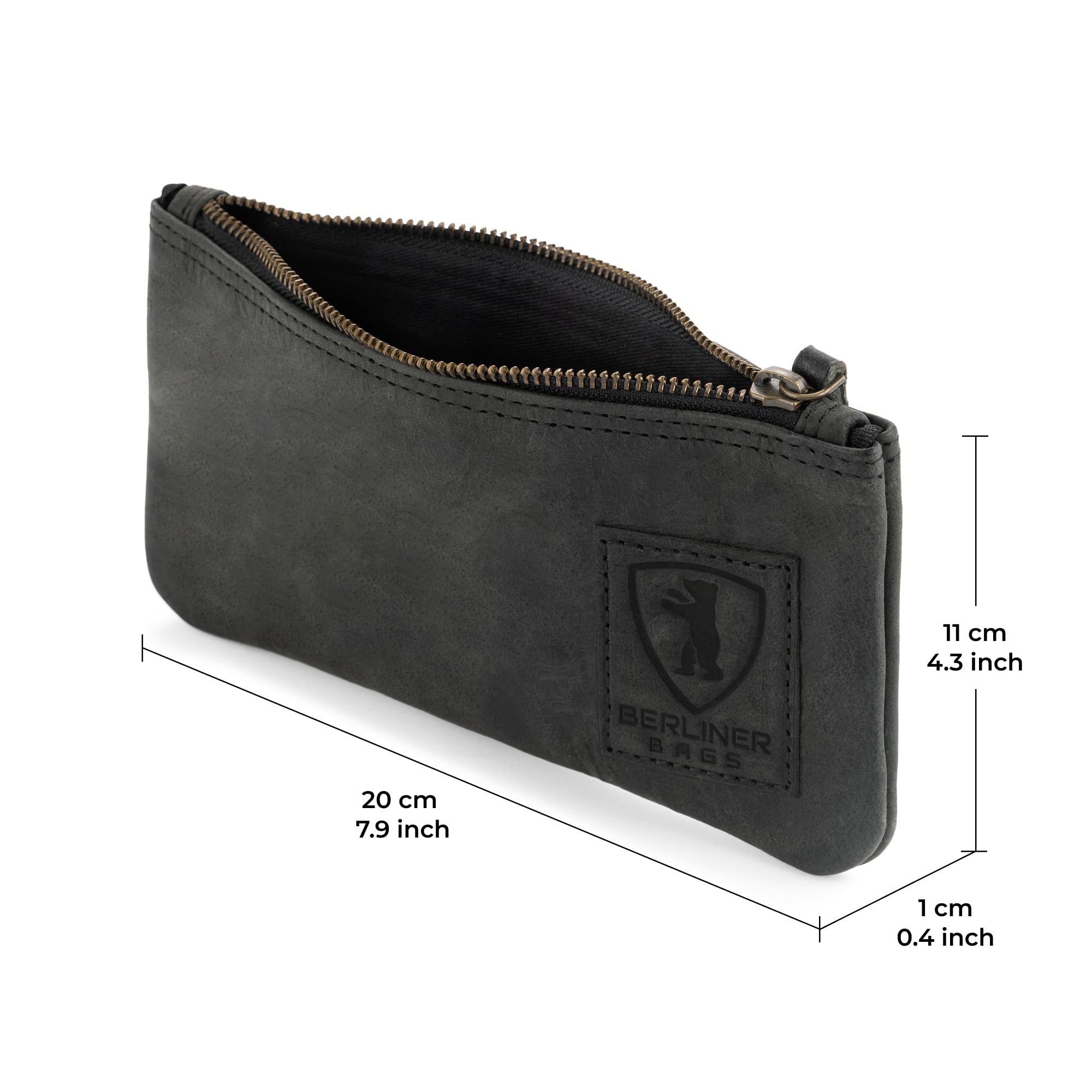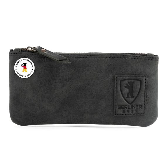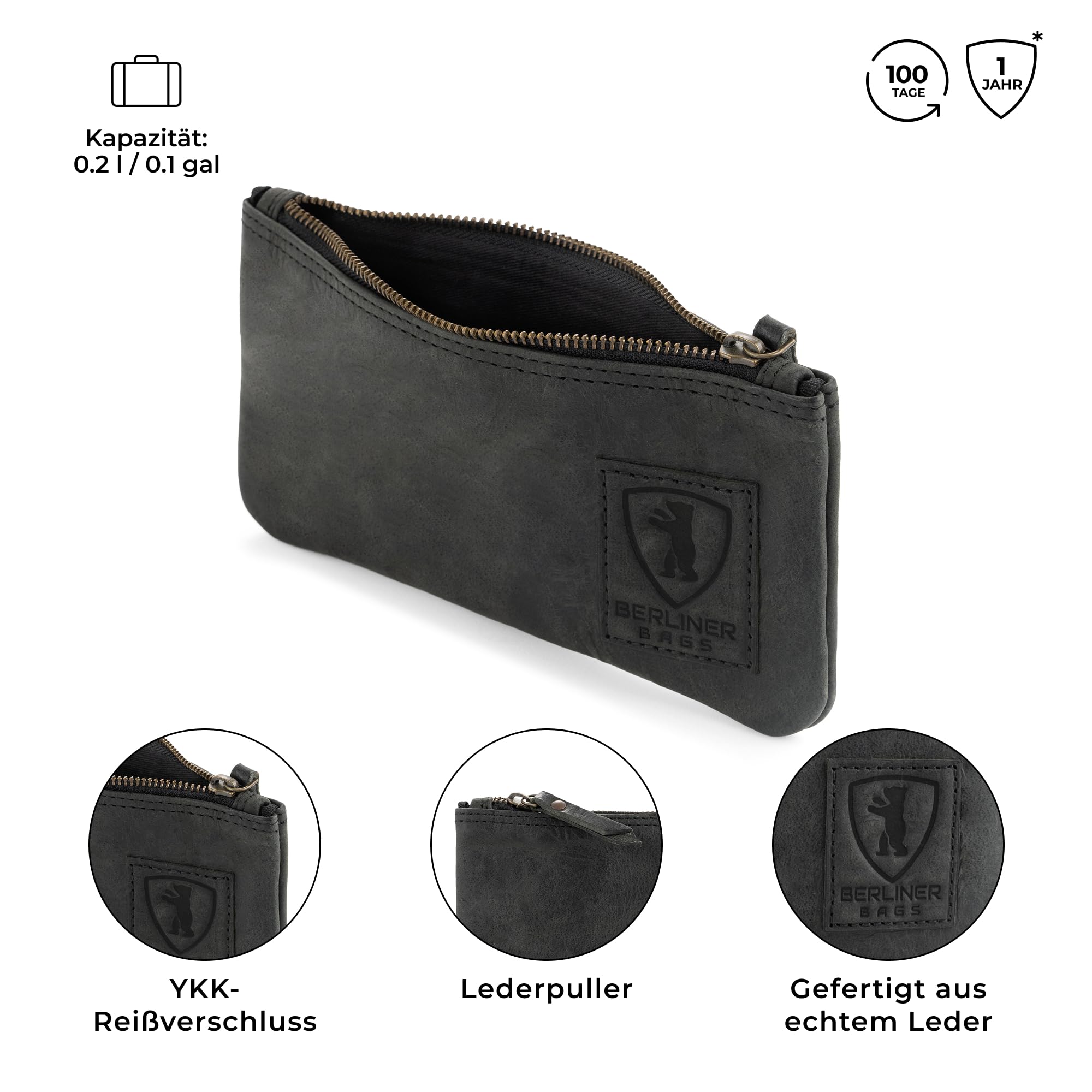 Berliner Bags Vintage Federmäppchen Etui aus Leder mit YKK-Reissverschluss, Robuste Federmappe für Stifte und Zubehör - Dunkelgrau