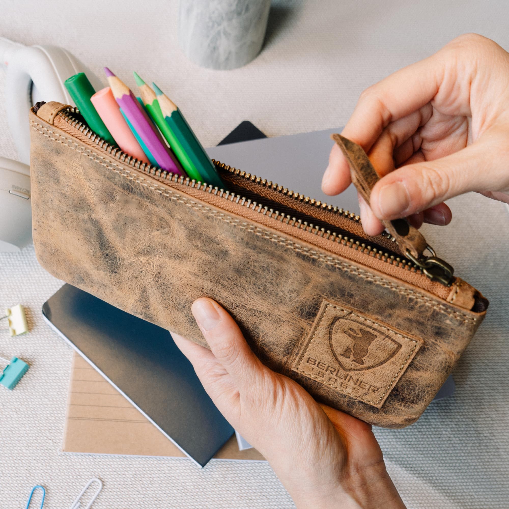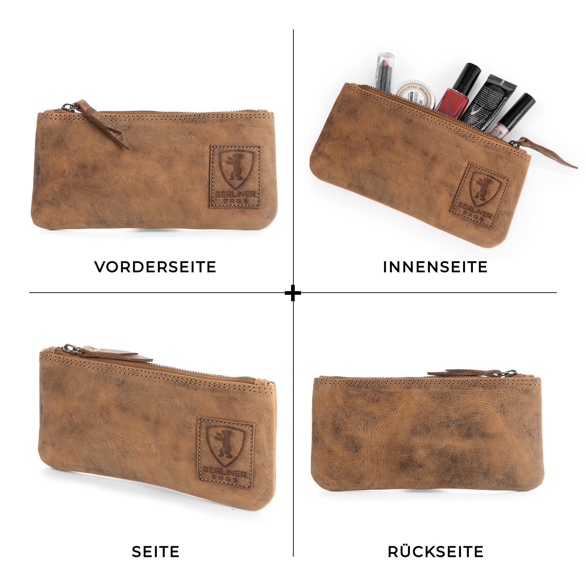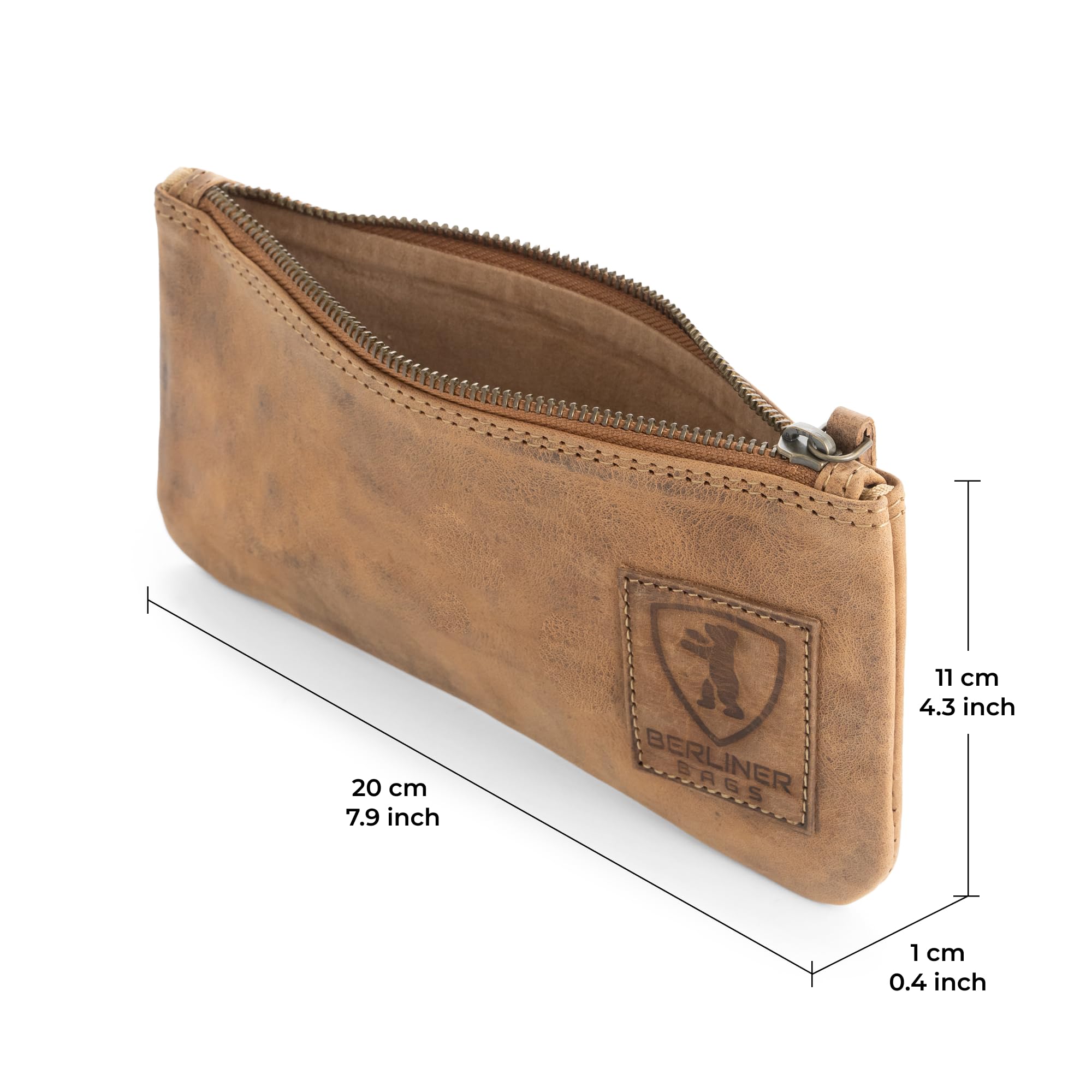 Berliner Bags Vintage Federmäppchen Etui aus Leder mit YKK-Reissverschluss, Robuste Federmappe für Stifte und Zubehör - Braun