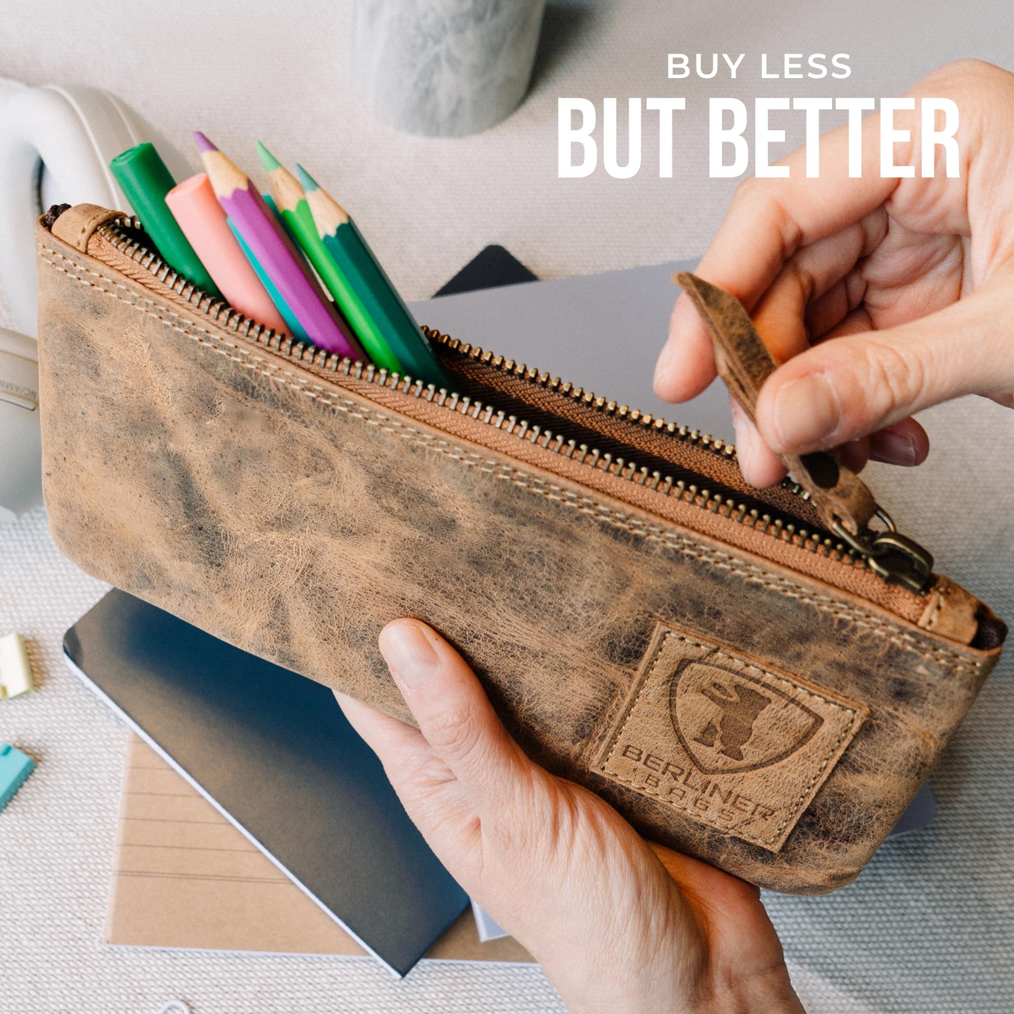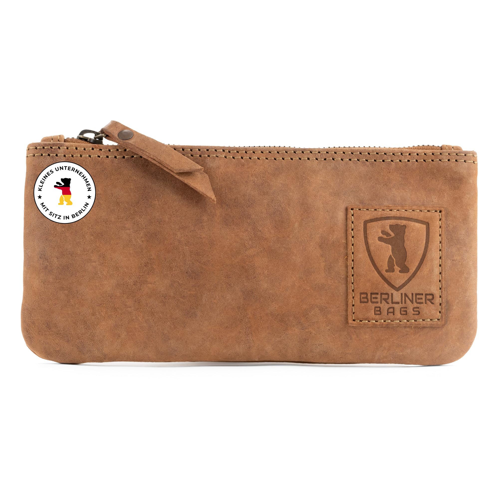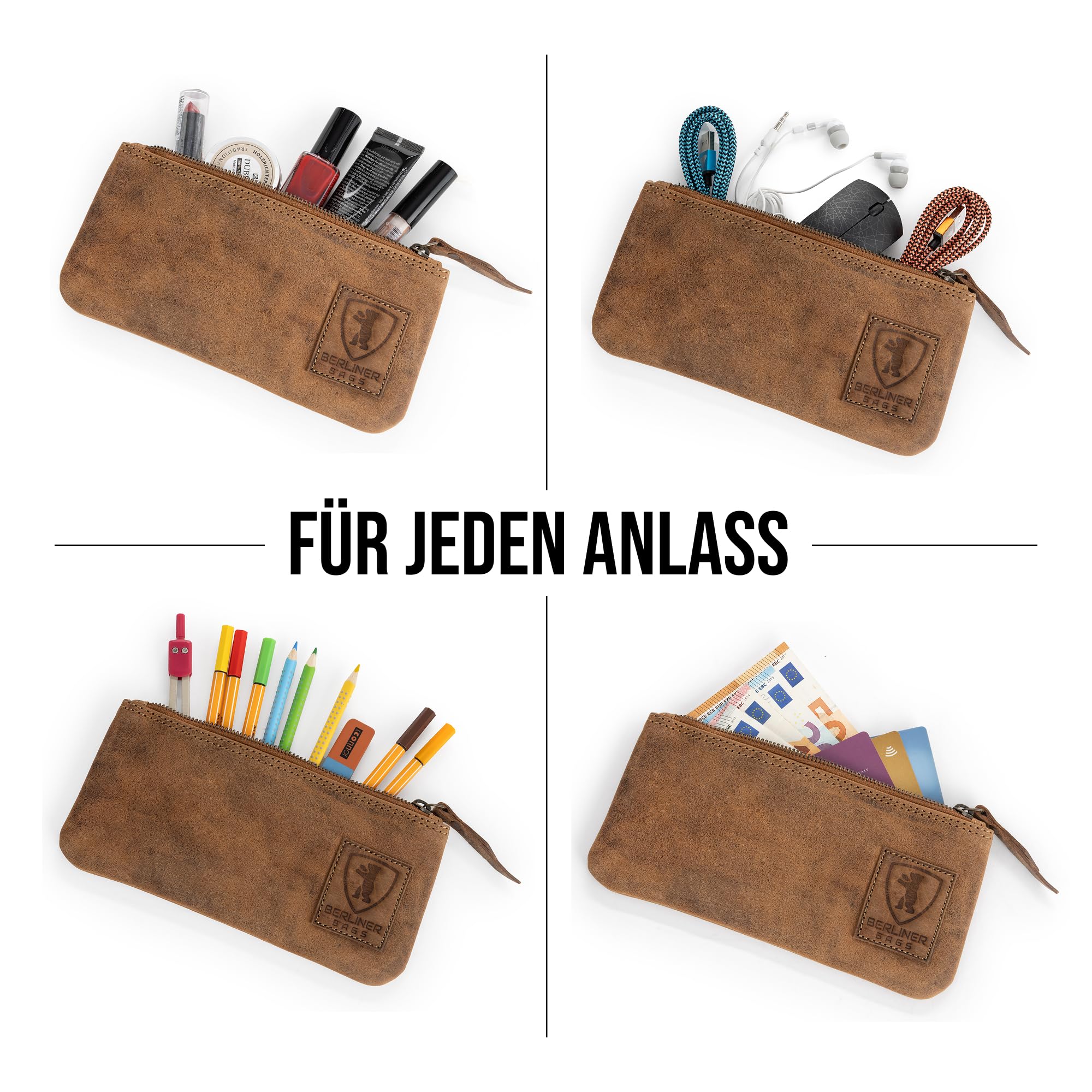Berliner Bags Vintage Federmäppchen Etui aus Leder mit YKK-Reissverschluss, Robuste Federmappe für Stifte und Zubehör - Braun