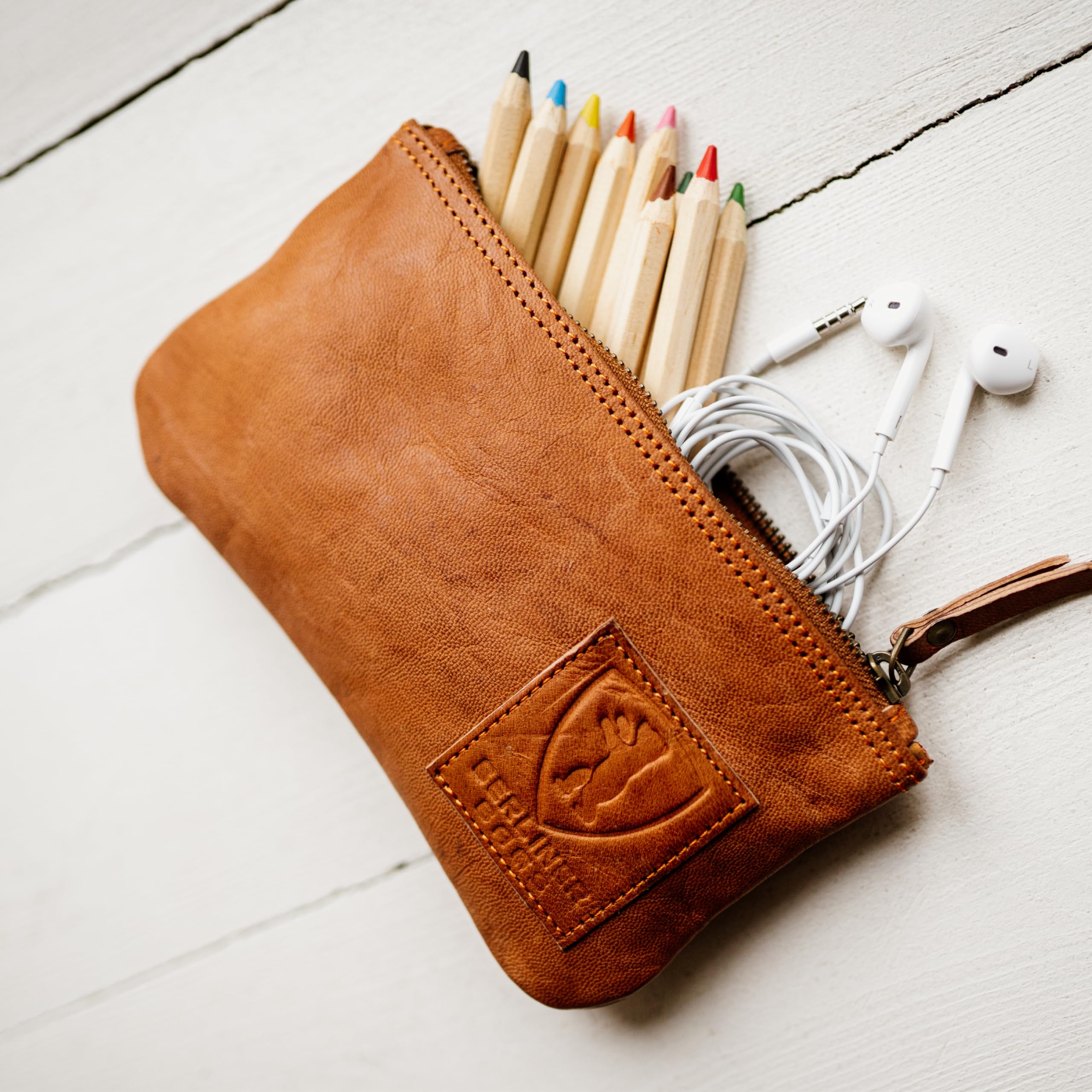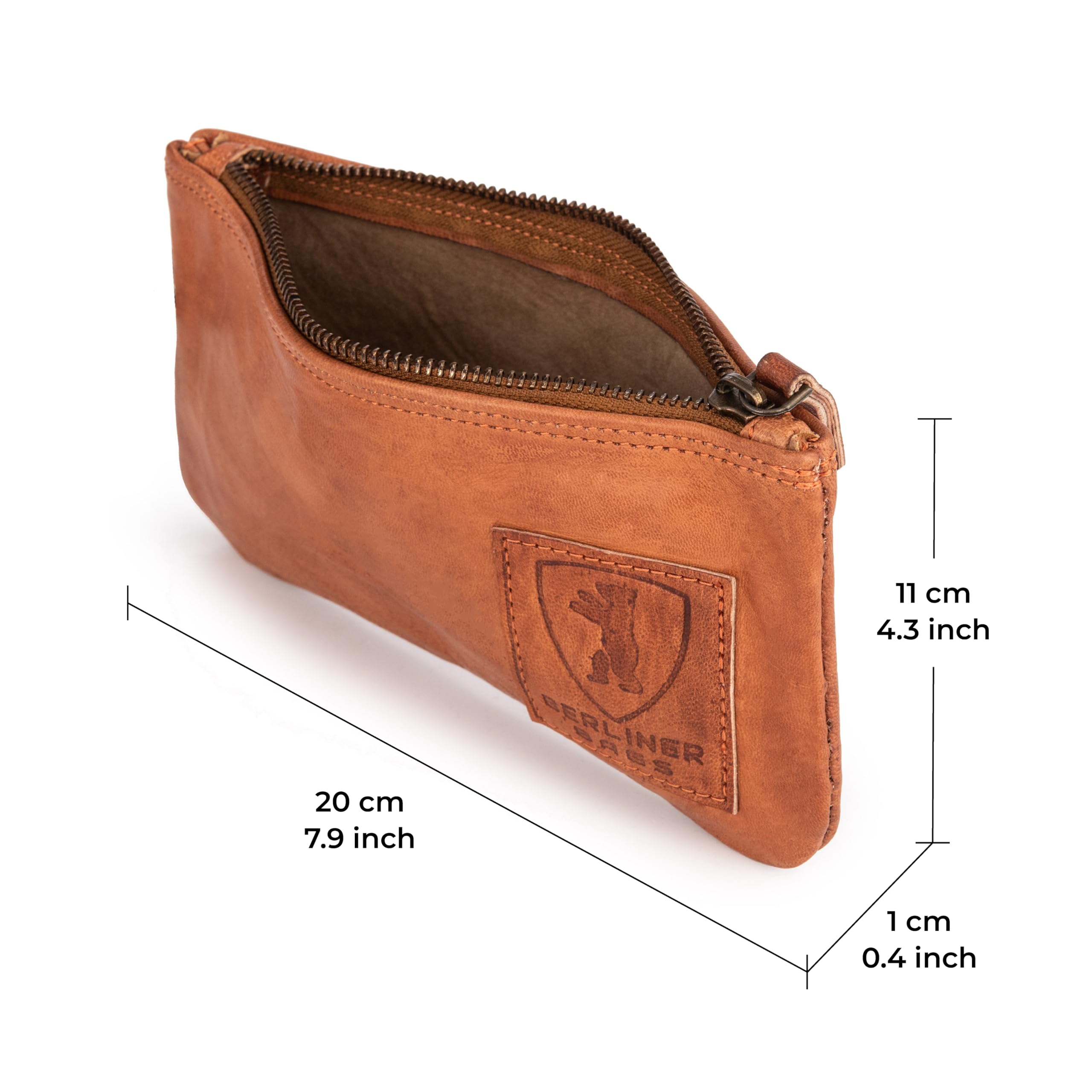 Berliner Bags Vintage Federmäppchen aus echtem Leder – Handgefertigtes Etui mit YKK-Reissverschluss, Federmappe - Braun