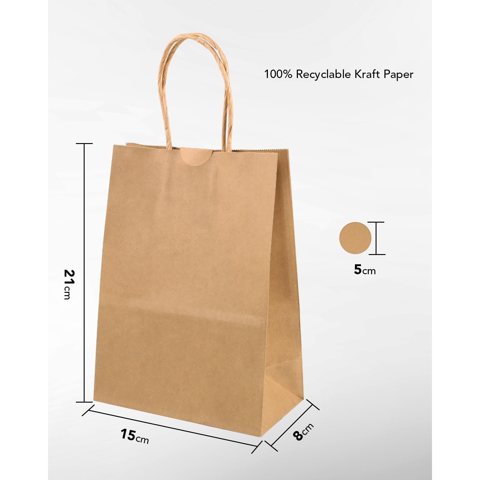 • Hochwertiges Papiermaterial: Die Papiertüte besteht aus recycelbarem und abbaubarem hochwertigem braunem Kraftpapier, das fein und glatt, nicht bleichend und schadstofffrei ist.