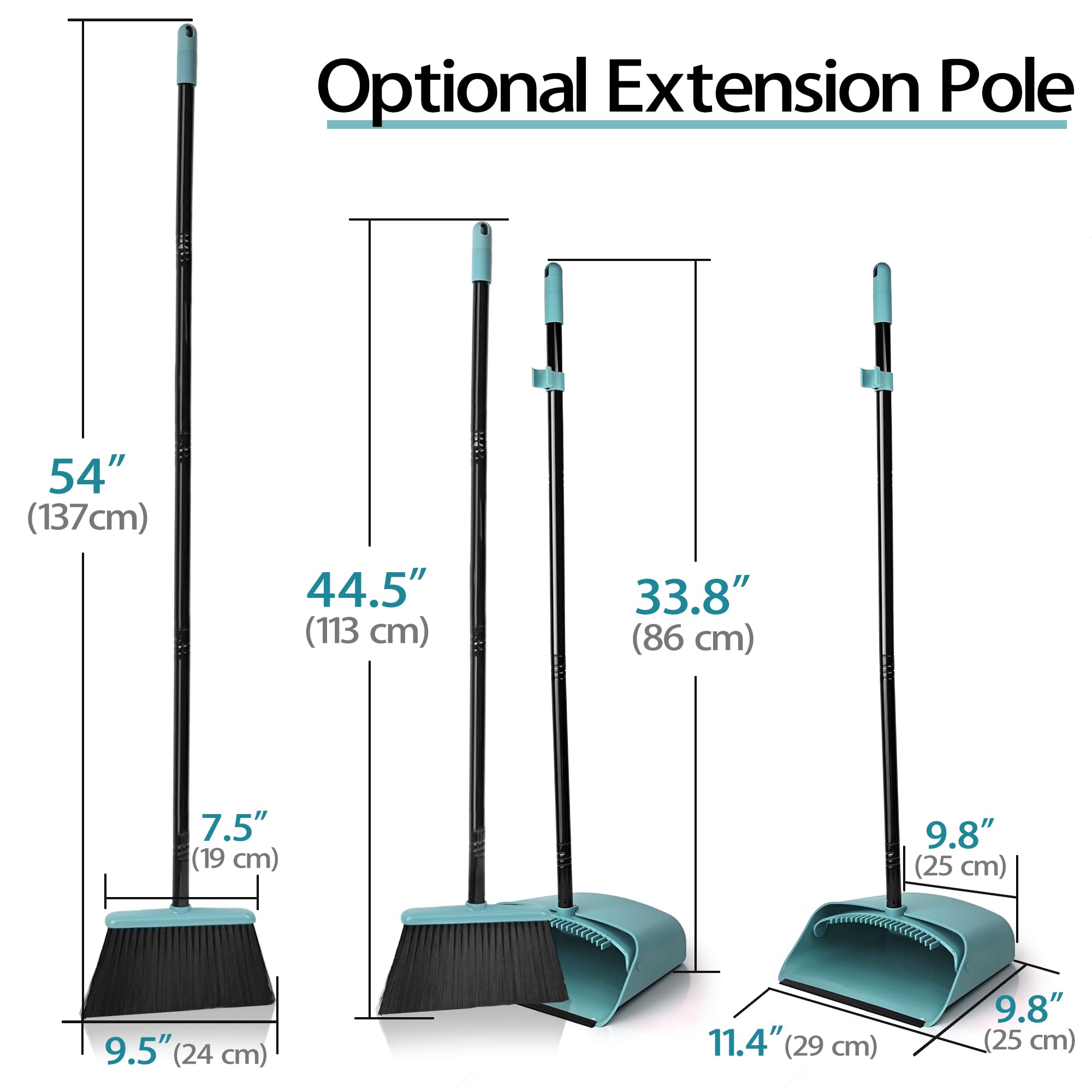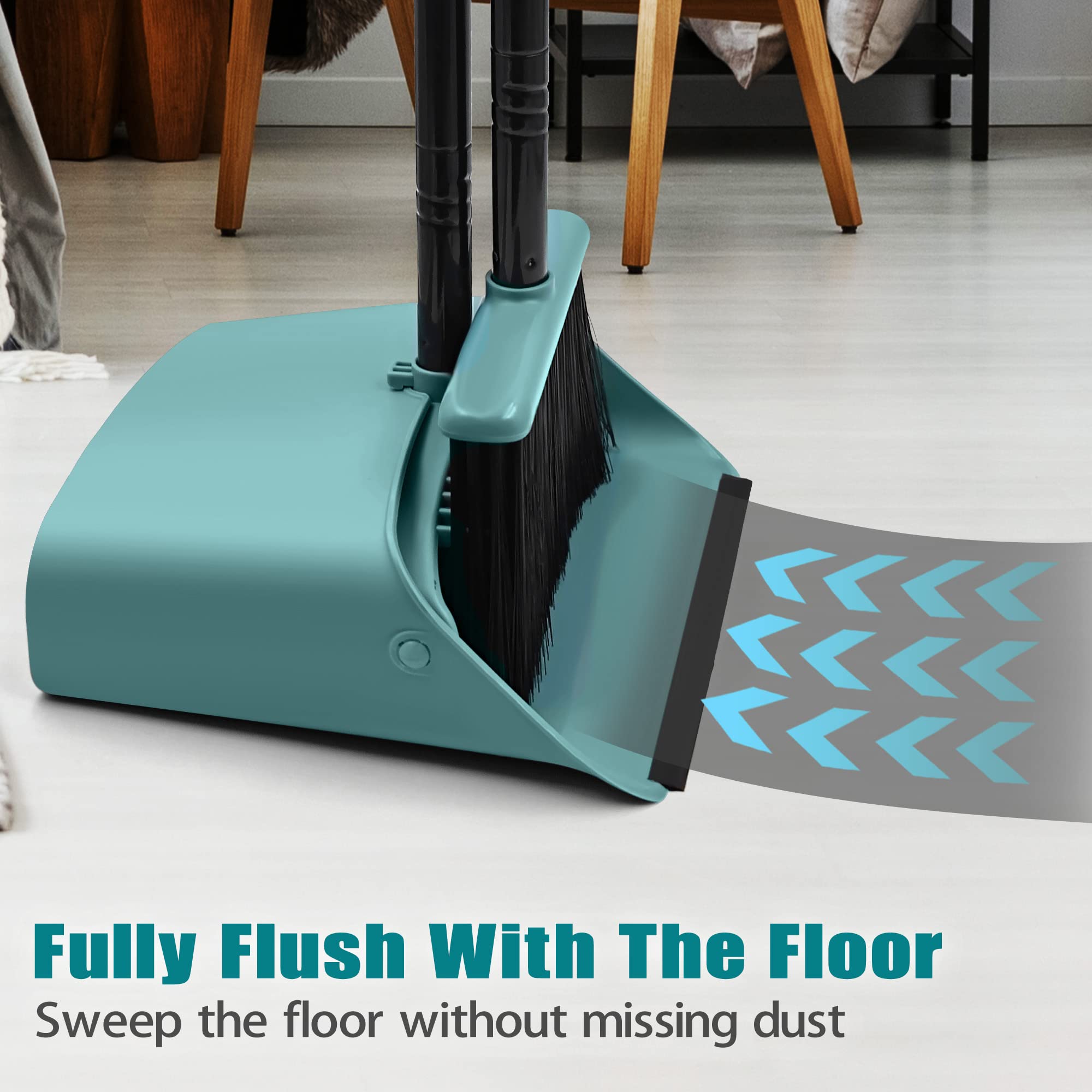JEHONN Besen und Kehrschaufel Set mit Langem Stiel 137 cm, Kehrbesen und Aufrecht Stehende Schaufel mit Kammzähnen, Broom Kehrset für Innen Haus Küche Lobby Garten Büro Zimmer (Grau Grün)
