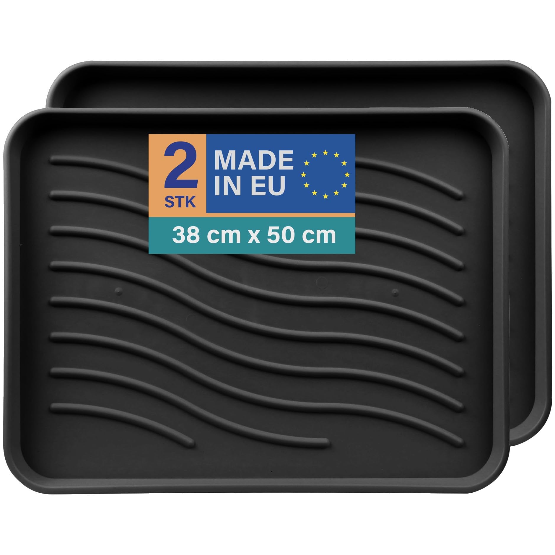 Bestlivings Schuhabtropfschale (2er Pack - Schwarz) Schuhablage (50x38x2,5cm) wasserdichte Schuhwanne - Aptropfunterlage für schmutzige und nasse Schuhe, Schuhmatte für Haus Garten