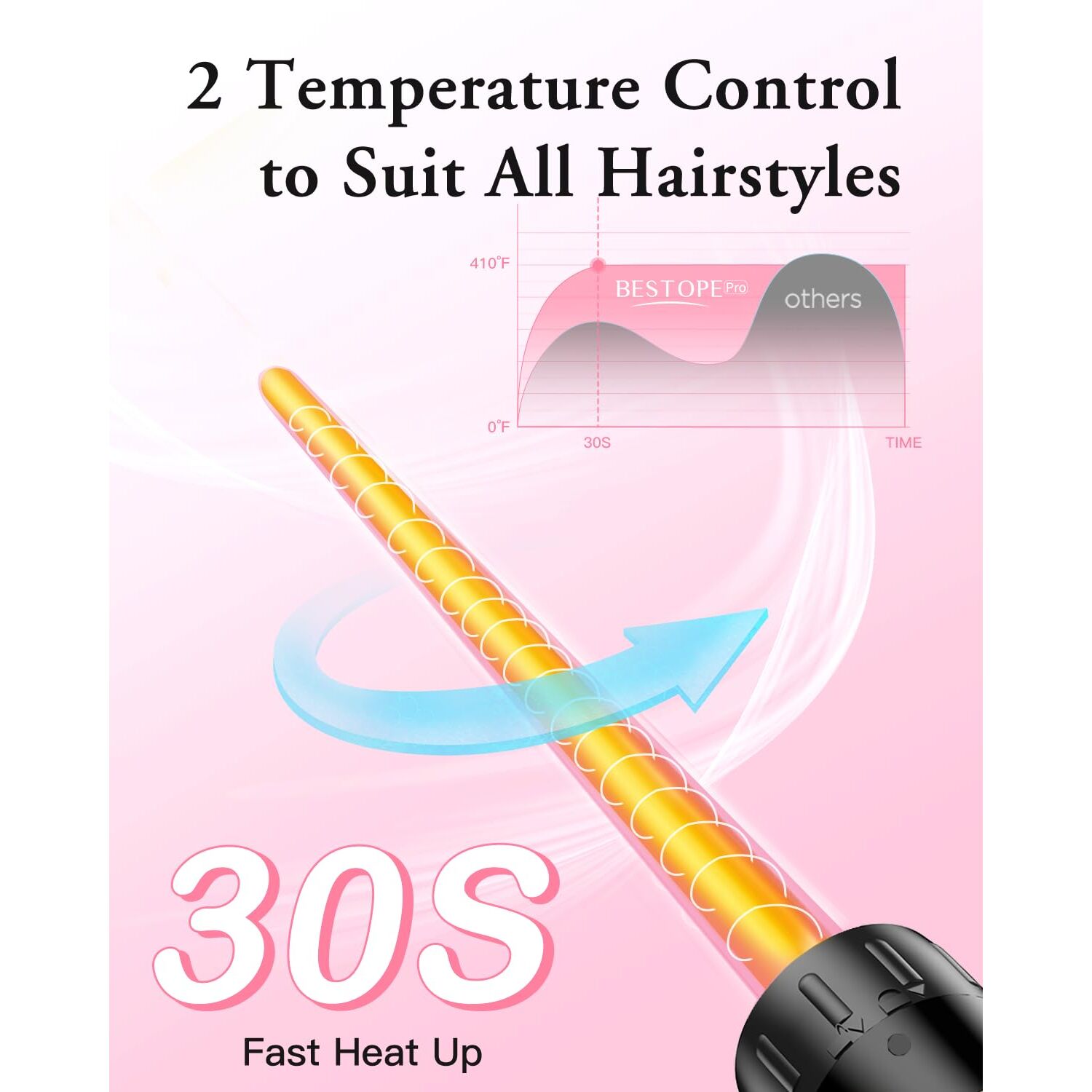 BESTOPE PRO 6-in-1 Lockenstab Große Locken und Kleine, Lockenstäbe, Lockenstab Mit Verschiedenen Aufsätzen, Handschuhen Temperatur Einstellbar, Schwarz