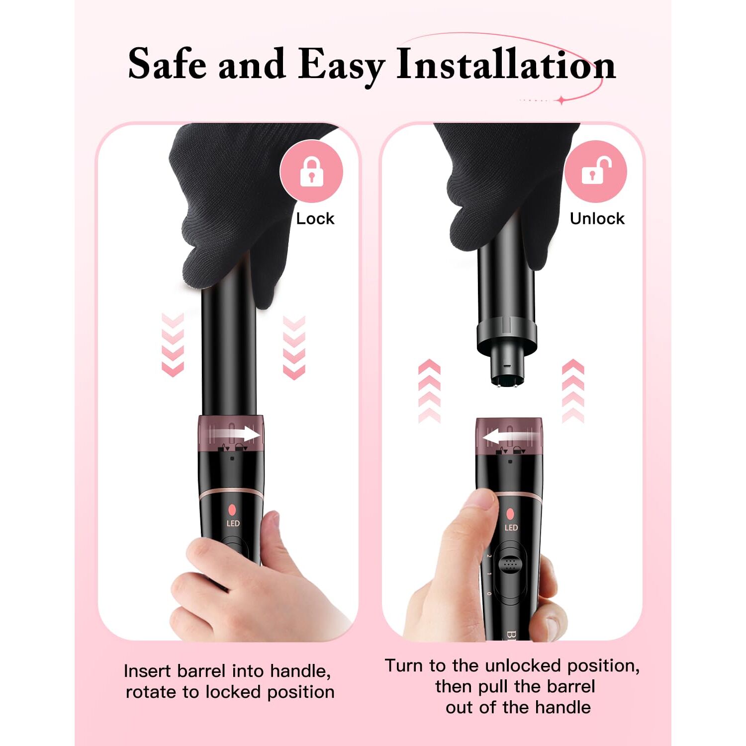 • 【Sicherer & Einfacher zu Bedienen】Das Lockenstab set basiert auf Kundenerfahrungen, der Lauf des Lockenstabs ist durch die Drehsperre fest verriegelt, um die Arbeitsleistung des Lockenstabs zu verbessern. Die Keramikbeschichtung ist umweltfreundlich ungiftig,die Isolierung erzeugt keine statische Elektrizität. Es wird in 60 Minuten automatisch heruntergefahren, 110 -220 V Dual-Voltage-Verwendung, einfach zu transportieren.