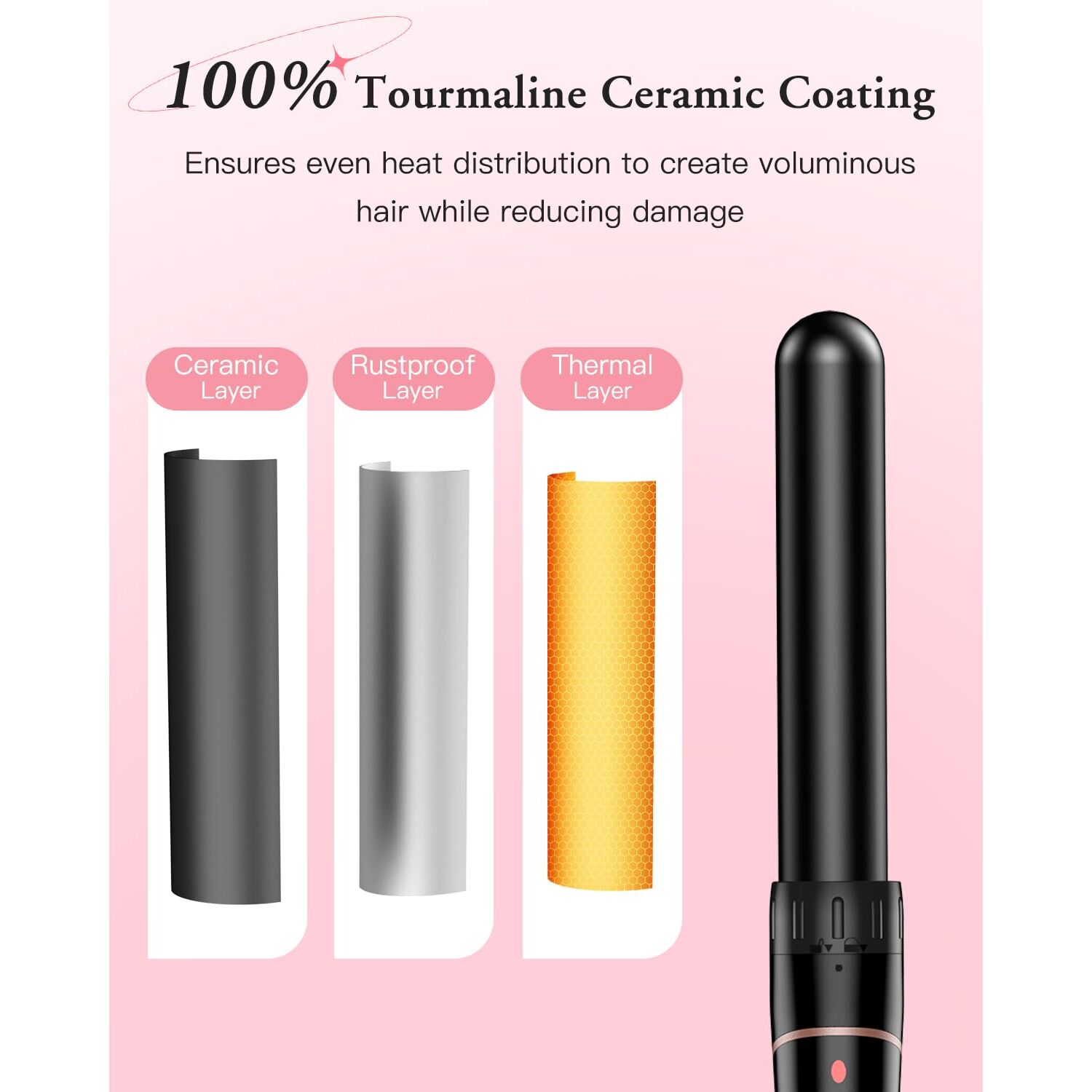 • 【Schnelles Aufheizen Spart Zeit】Der Lockenstab set besteht aus 100% Turmalin-Keramikbeschichtung, so dass die Hot Spots gleichmässig erhitzt werden nach Erreichen der Temperatur eine konstante Temperatur aufrechterhalten können ; Es kann innerhalb von Innerhalb einer halben Minute auf die höchste Temperatur erhitzt werden, wodurch Sie mehr Wartezeit sparen Ihr Haar schnell stylen können, 10-15 Min, um den Lockeneffekt zu vervollständigen.