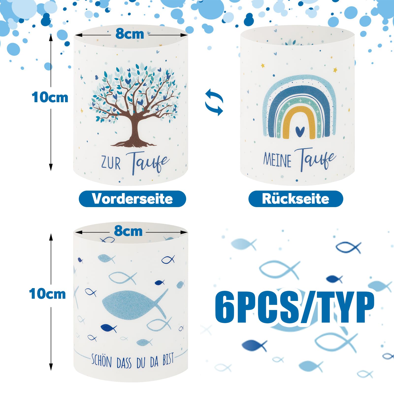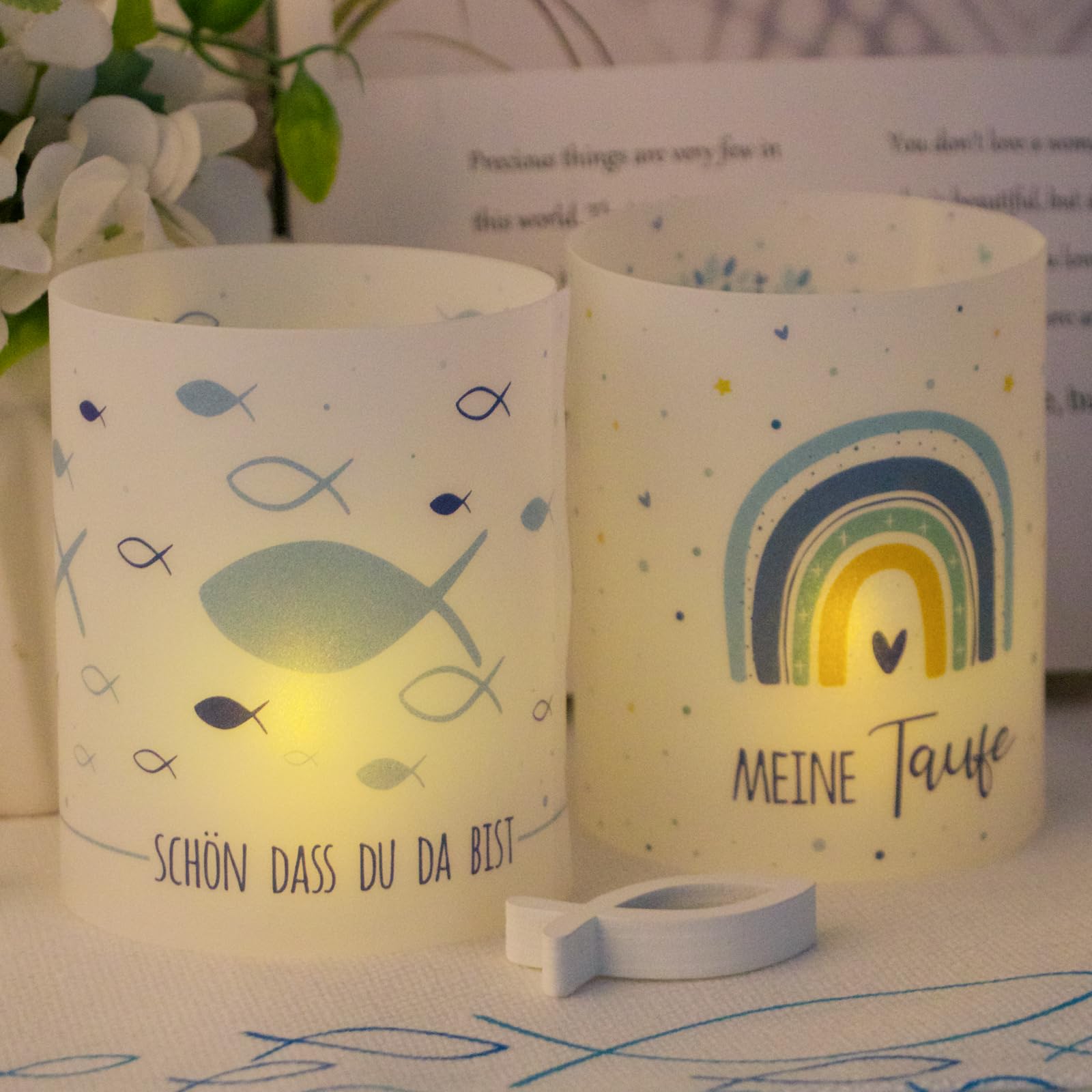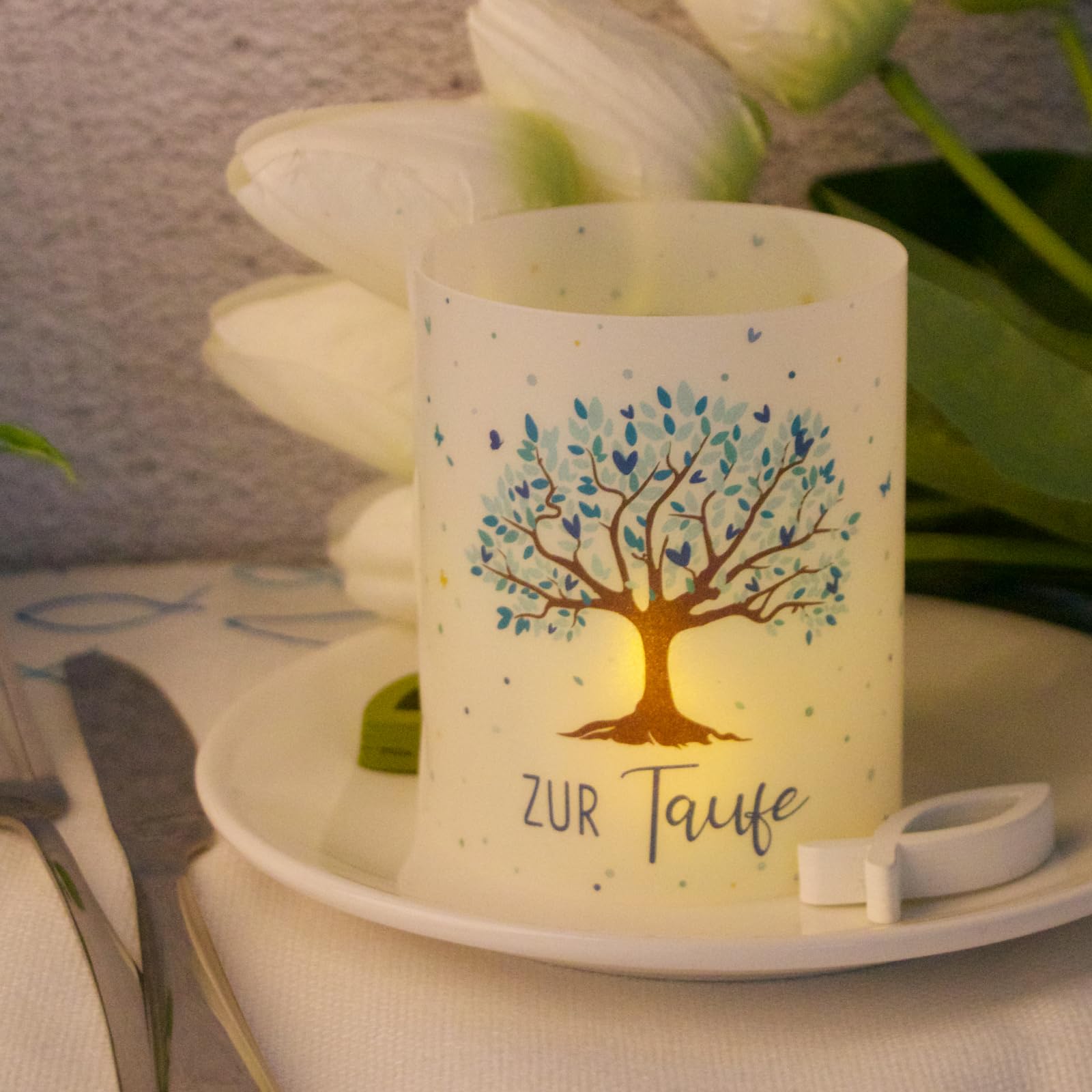 ????BETESSIN Windlicht Kerzen Deko Kommunion Taufe Tischdeko für Junge Mädchen Teelichter Kerzen Dekoration Blau????