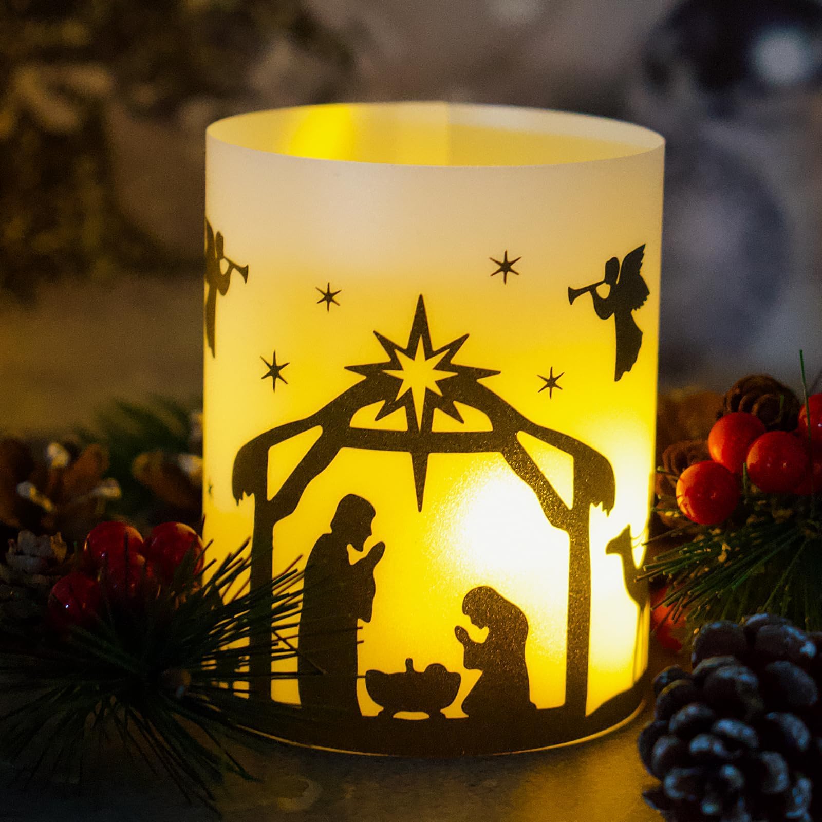 BETESSIN 12Pcs Windlicht Tischdeko Weihnachten Deko Jesus Geburt Krippe Deko Windlichter Weihnachtskrippe Mini Teelichter Weihnachten Kerzen Deko Lichthülle Teelichthalter Indoor Outdoor Dekoration