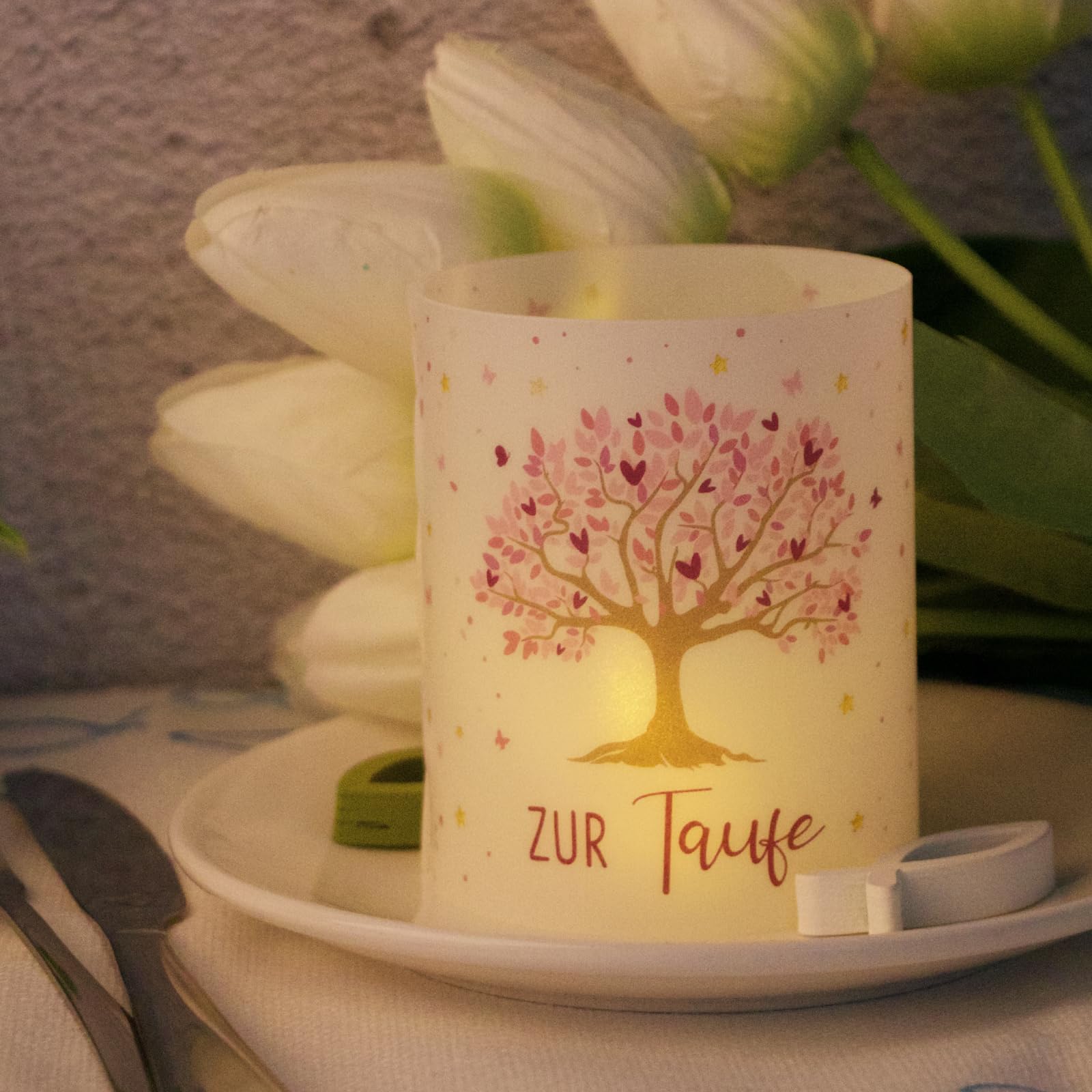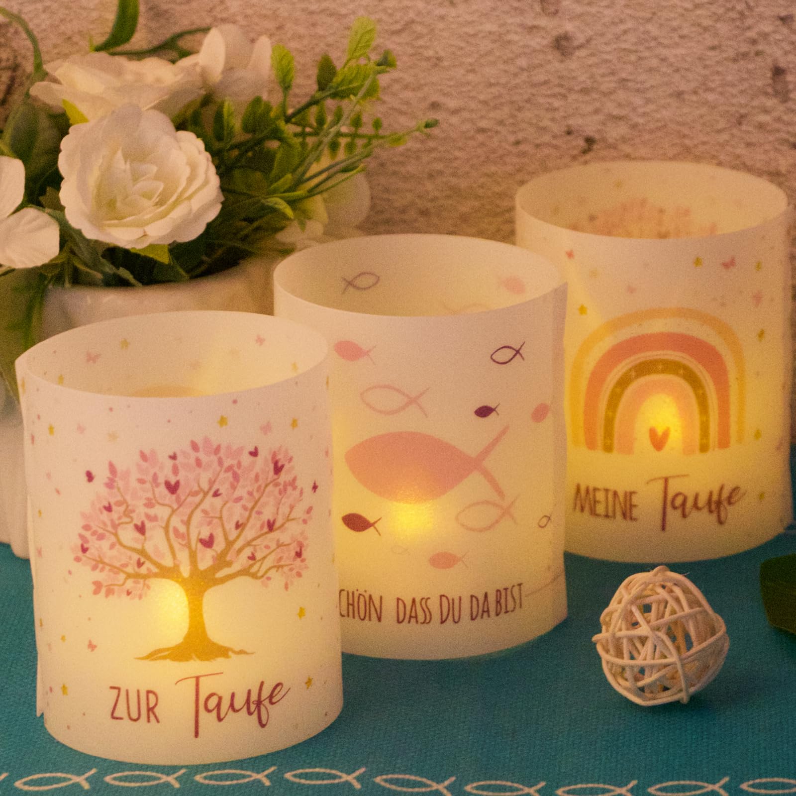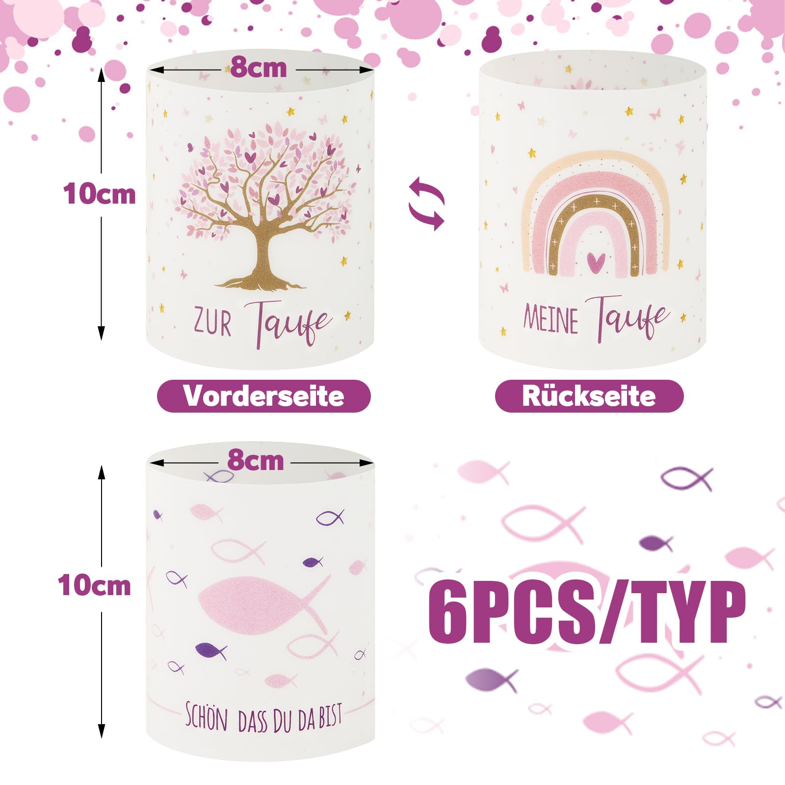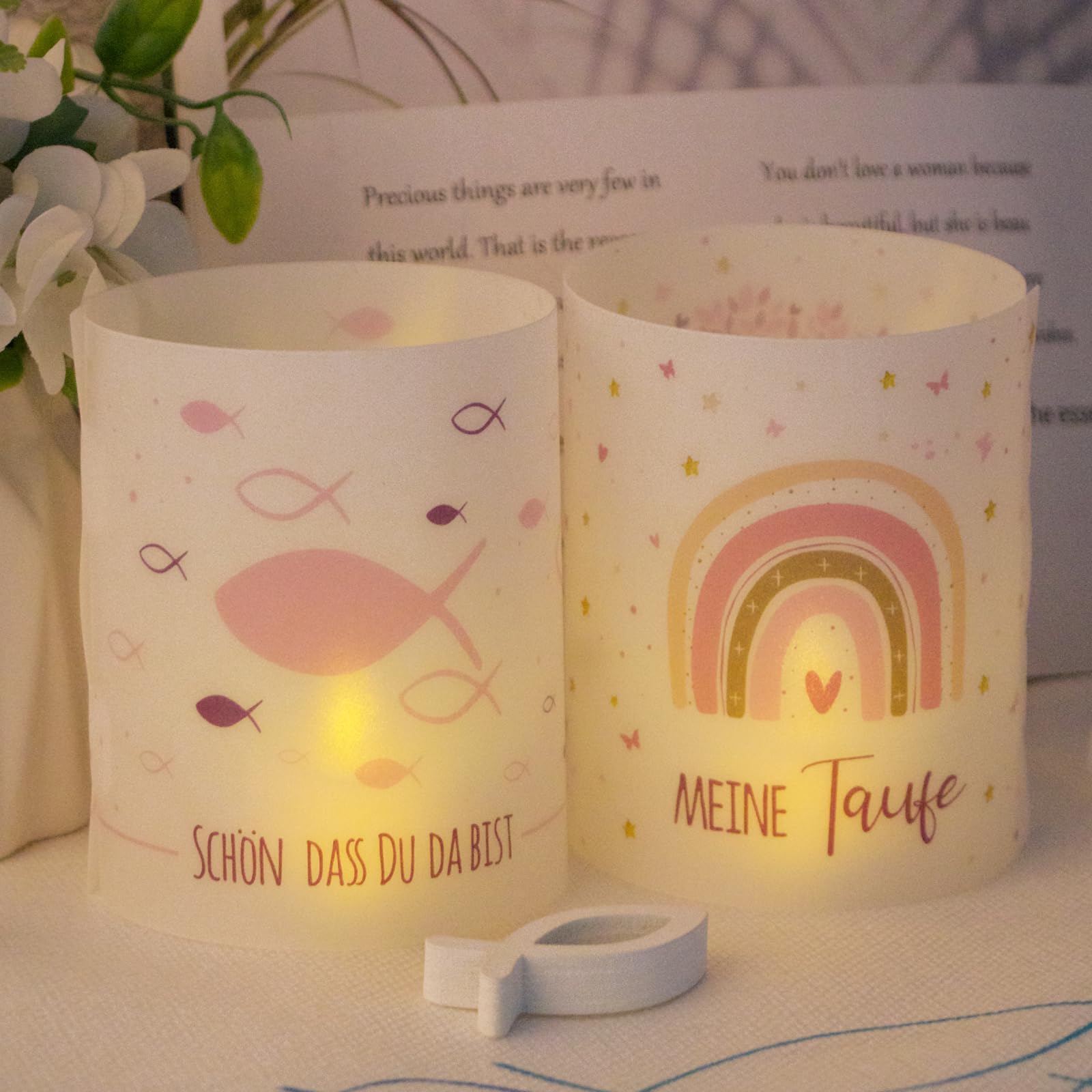 BETESSIN 12 Windlicht Tischdeko Taufe Teelicht Lichthülle Schön DASS du da bist Mini Kerzen Deko Rosa Kommunion Tischlichter Weihnachten Konfirmation Erstkommunion Teelicht Kerzen Dekoration