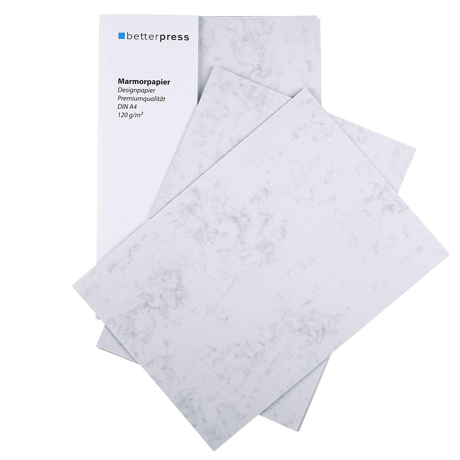 Betterpress® 50 Blatt Briefpapier Marmorpapier grau Elefantenhaut 120g, A4 – Beidseitig Marmoriertes Papier in hochwertiger Qualität – Premium ideal als Speisekarte, Zertifikat und Urkunde