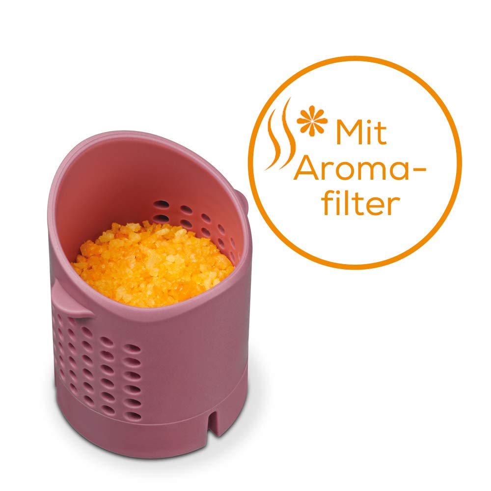 - Aroma-Therapie: Mit dem Aroma-Filter können Sie Badezusätze verwenden und Ihre Entspannung mit angenehmen Düften verstärken.