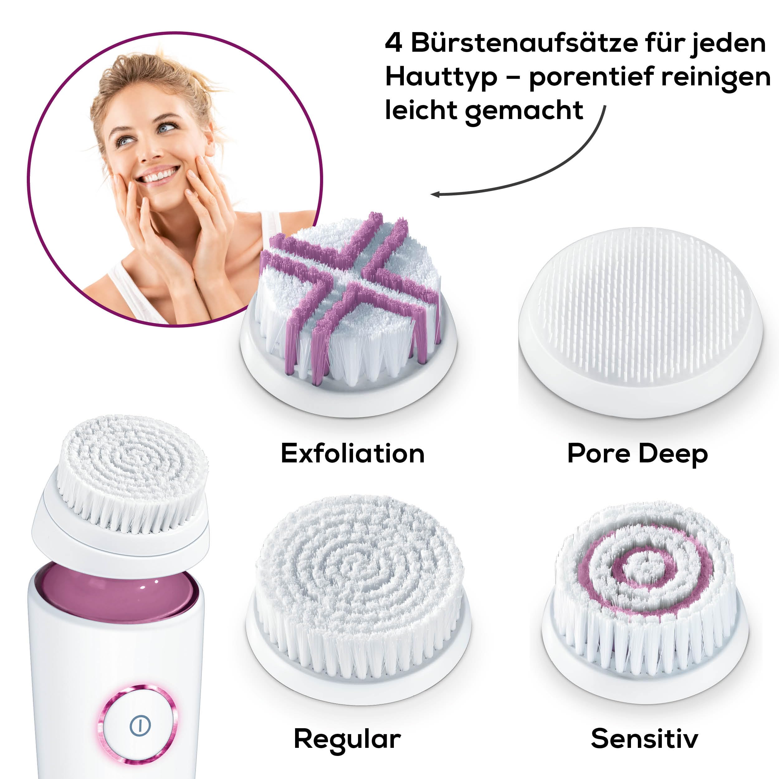 Beurer FC 95 Gesichtsbuerste – Elektrische Tiefenreinigung mit 4 Aufsaetzen & Akku
