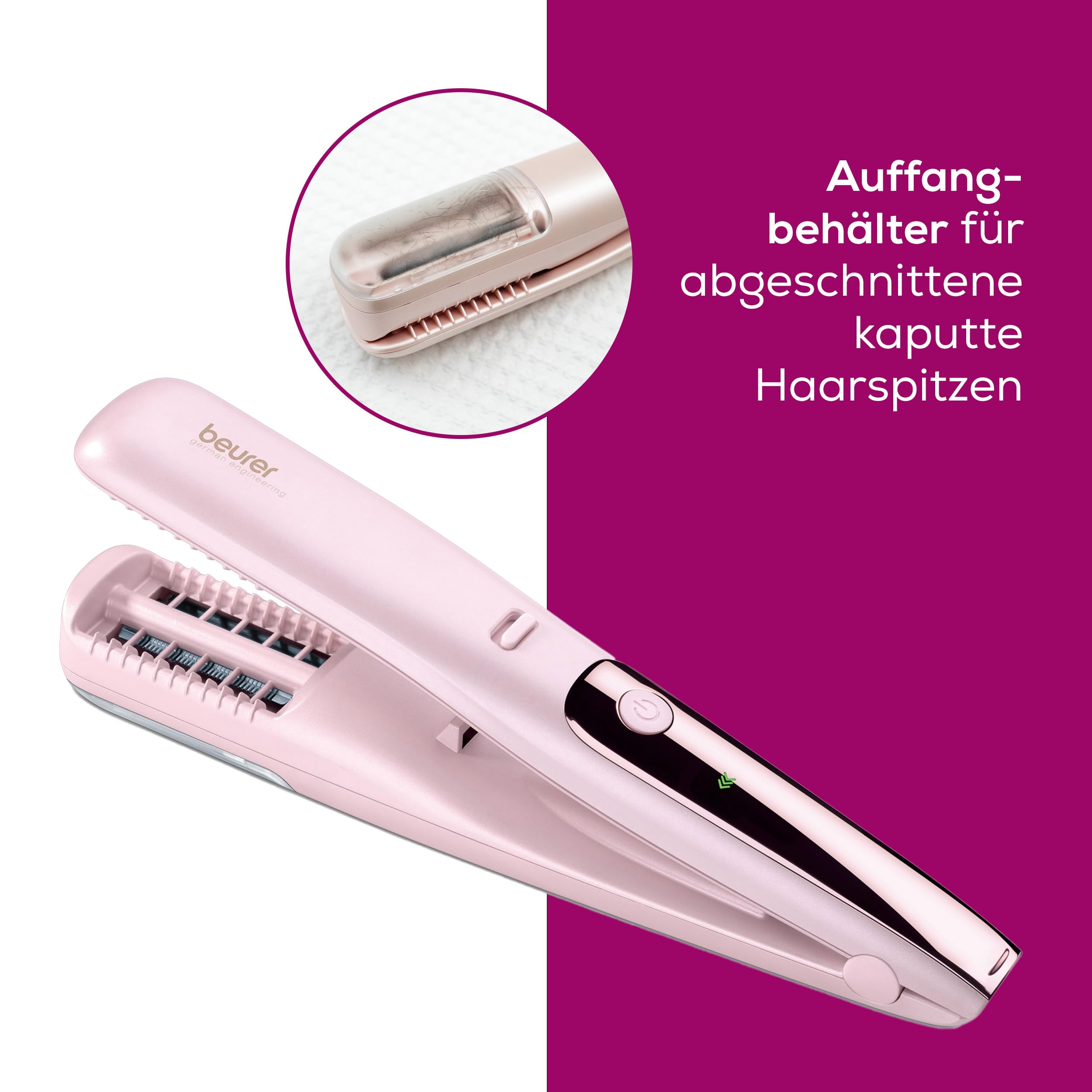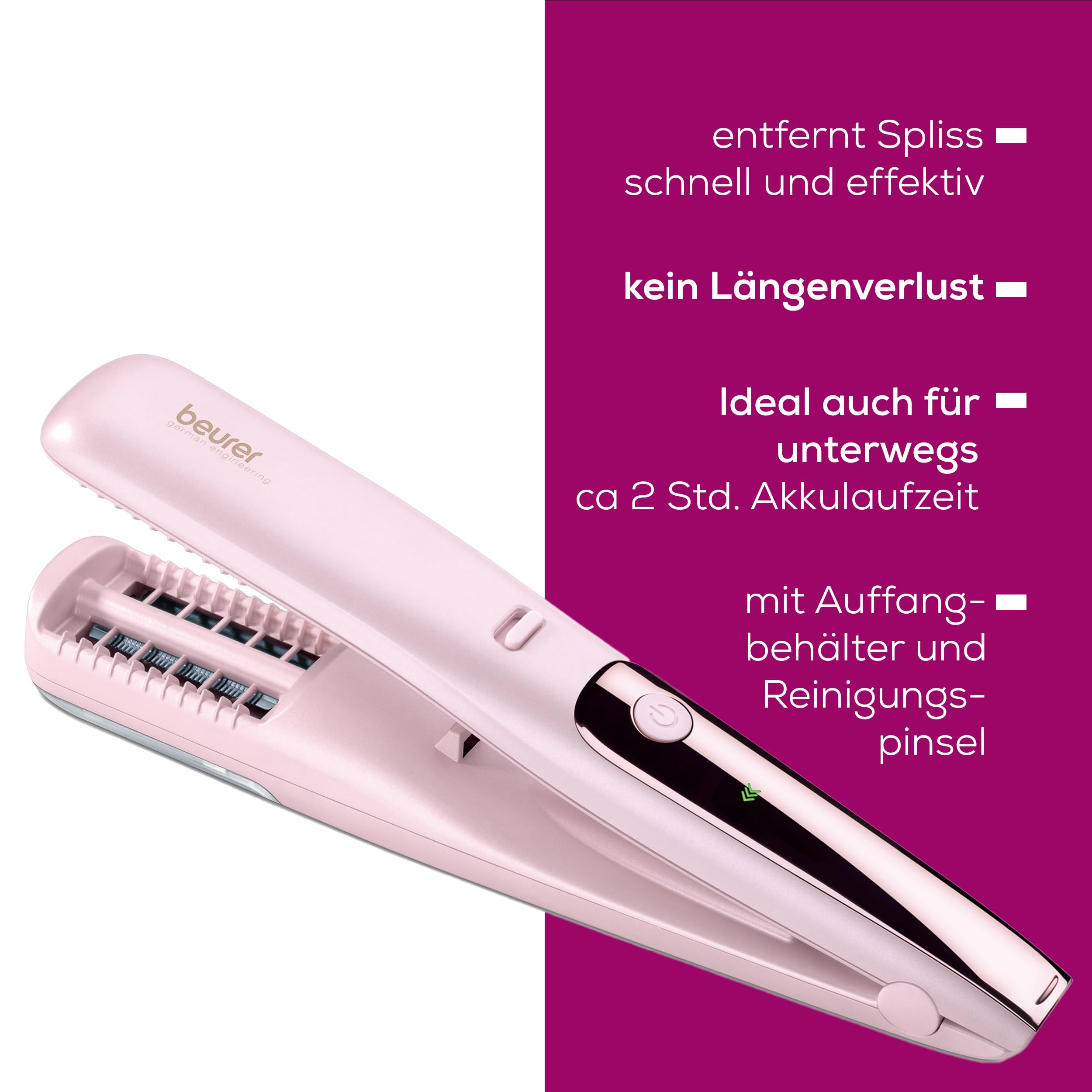 Beurer HT 22 Splissentferner, entfernt Spliss und kaputte Haarspitzen schnell und effektiv, ohne Längenverlust für gesundes Haar, mit LED-Anzeige, 2h Akkulaufzeit , rosa