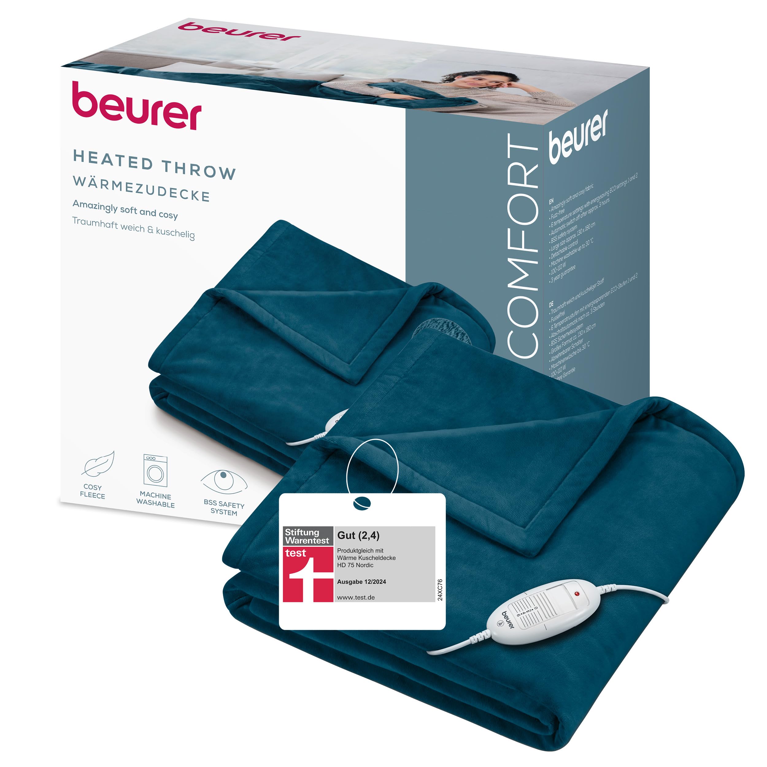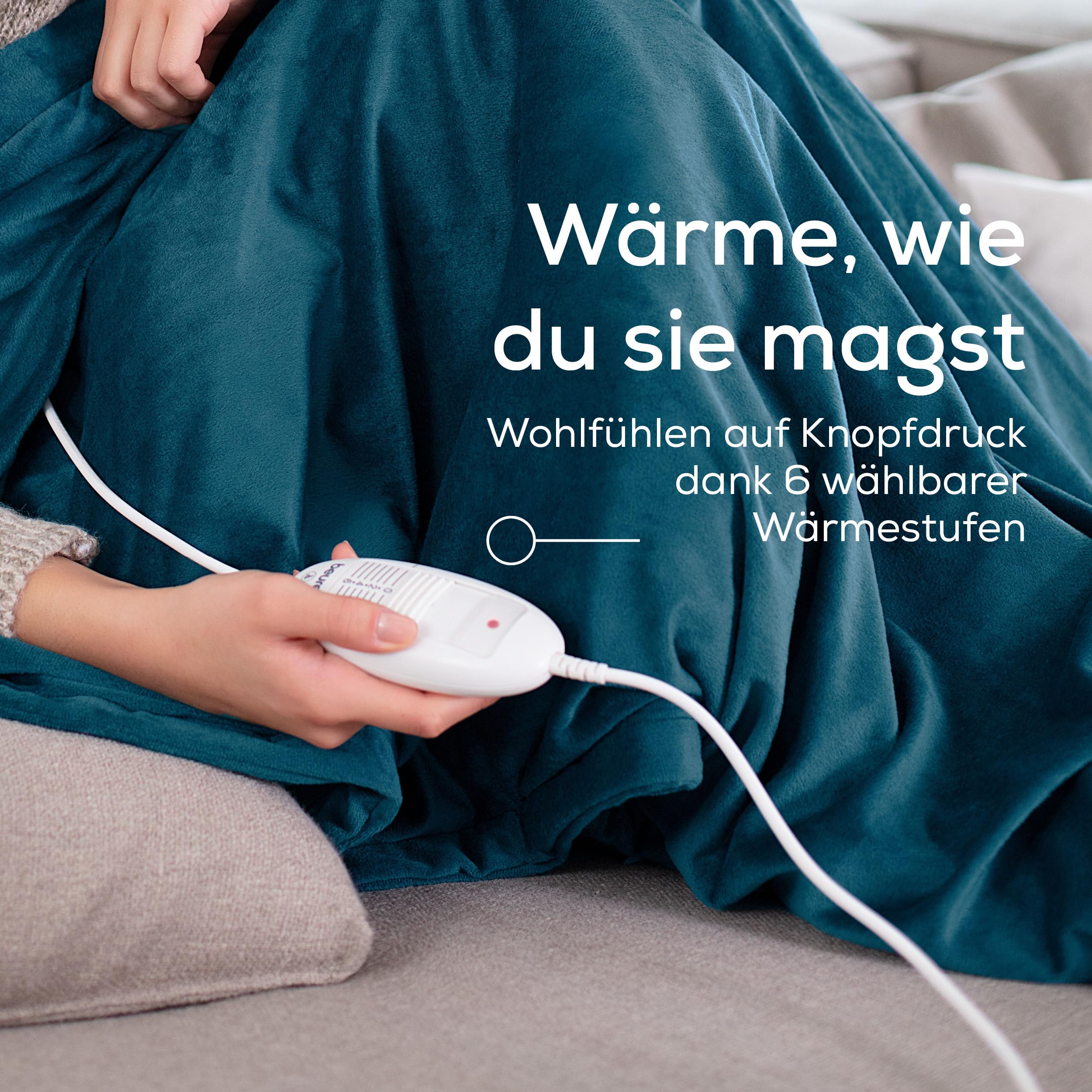 Beurer HD 75 Ocean Heizdecke, kuschelig weiche Wärmezudecke, 6 Temperaturstufen, maschinenwaschbar, mit Abschaltautomatik und besonders sicher, petrol, 180 x 130 cm