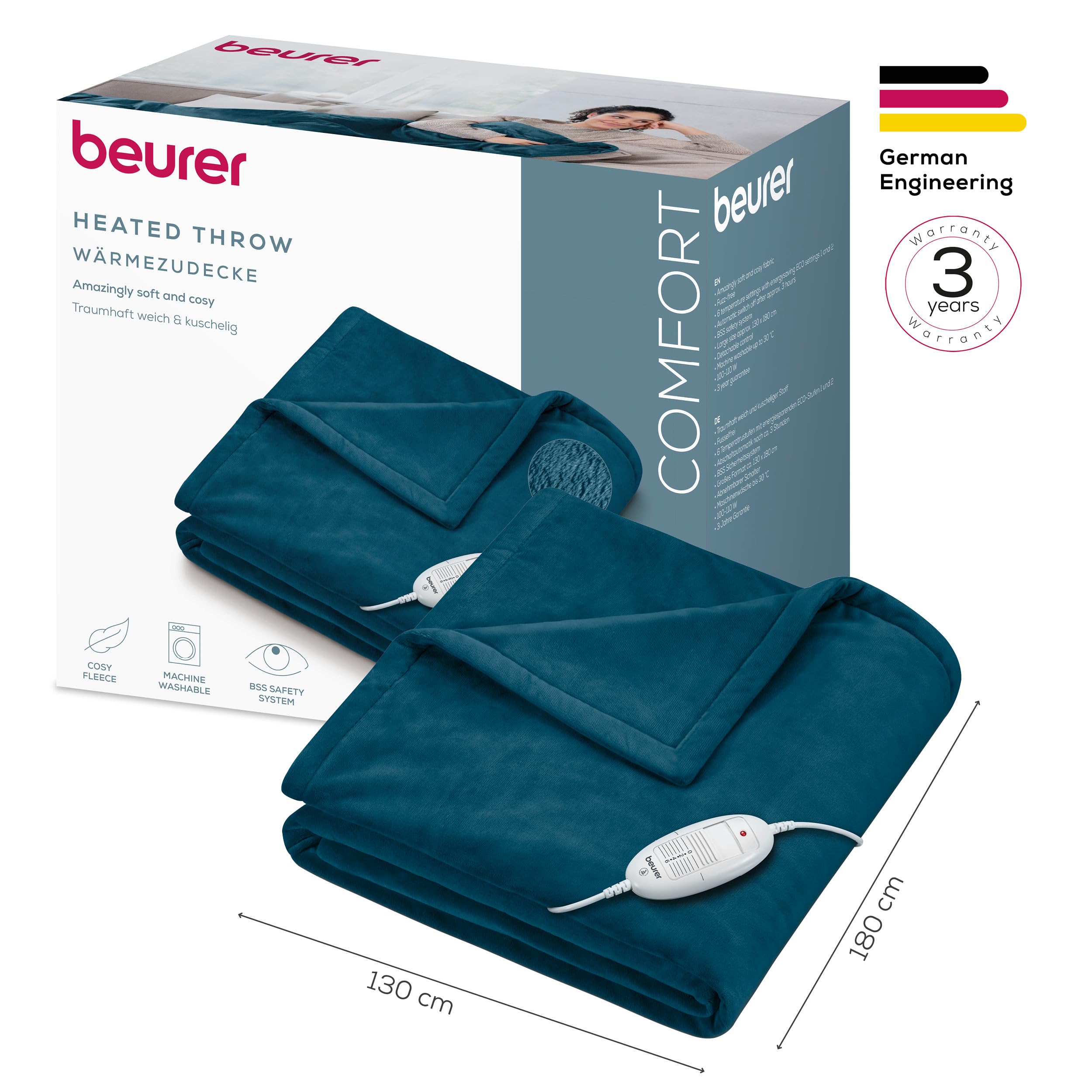 • SICHERE ANWENDUNG: Die Abschaltautomatik nach ca. 3 Stunden und das integrierte Beurer Sicherheitssystem sorgen für höchste Sicherheit - im Fehlerfall schaltet sich die Heizdecke automatisch ab