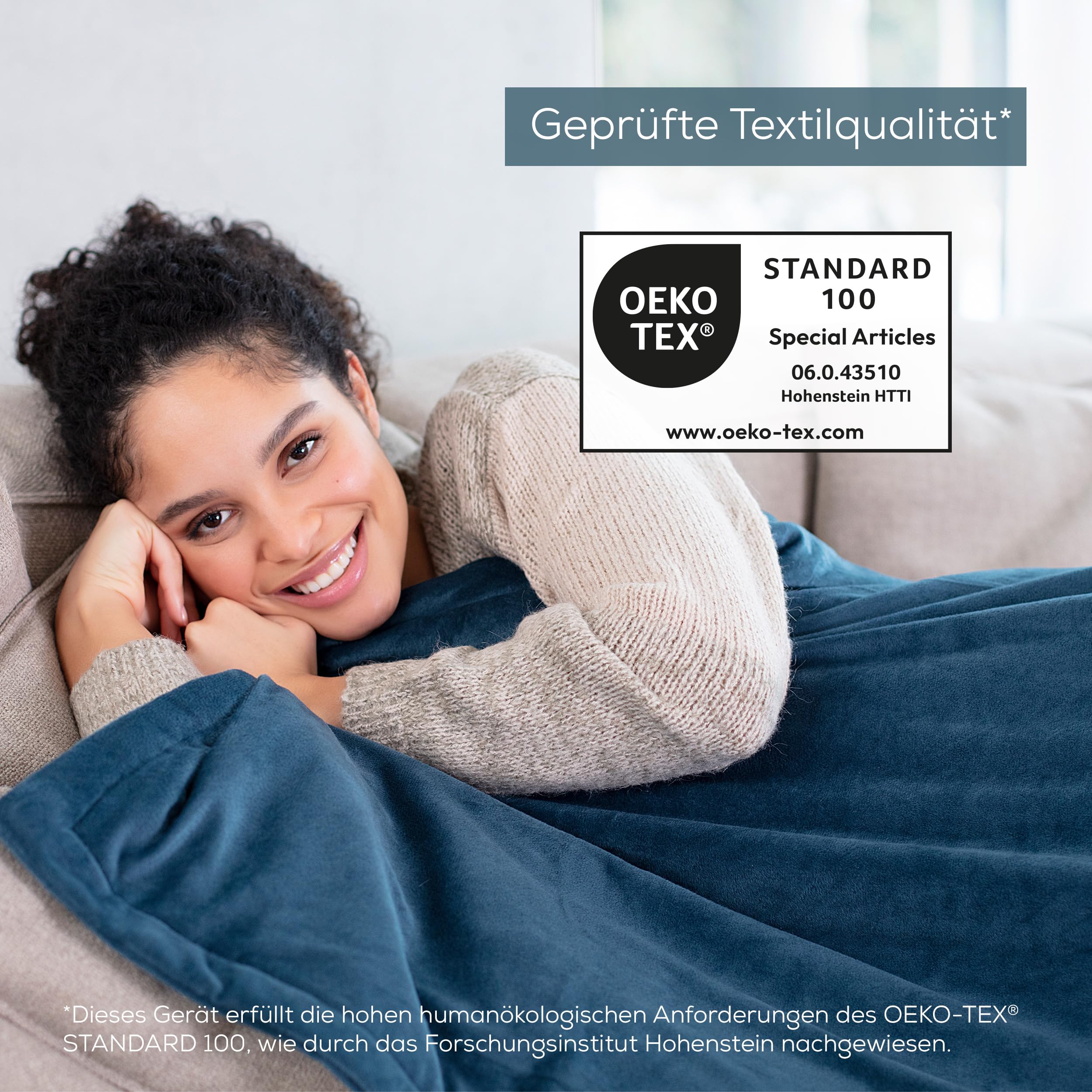 • GEPRÜFTE TEXTIL-QUALITÄT: Die Wärmedecke erfüllt die hohen humanökologischen Anforderungen des Öko-Tex 100 Standards, durch das Forschungsinstitut Hohenstein nachgewiesen