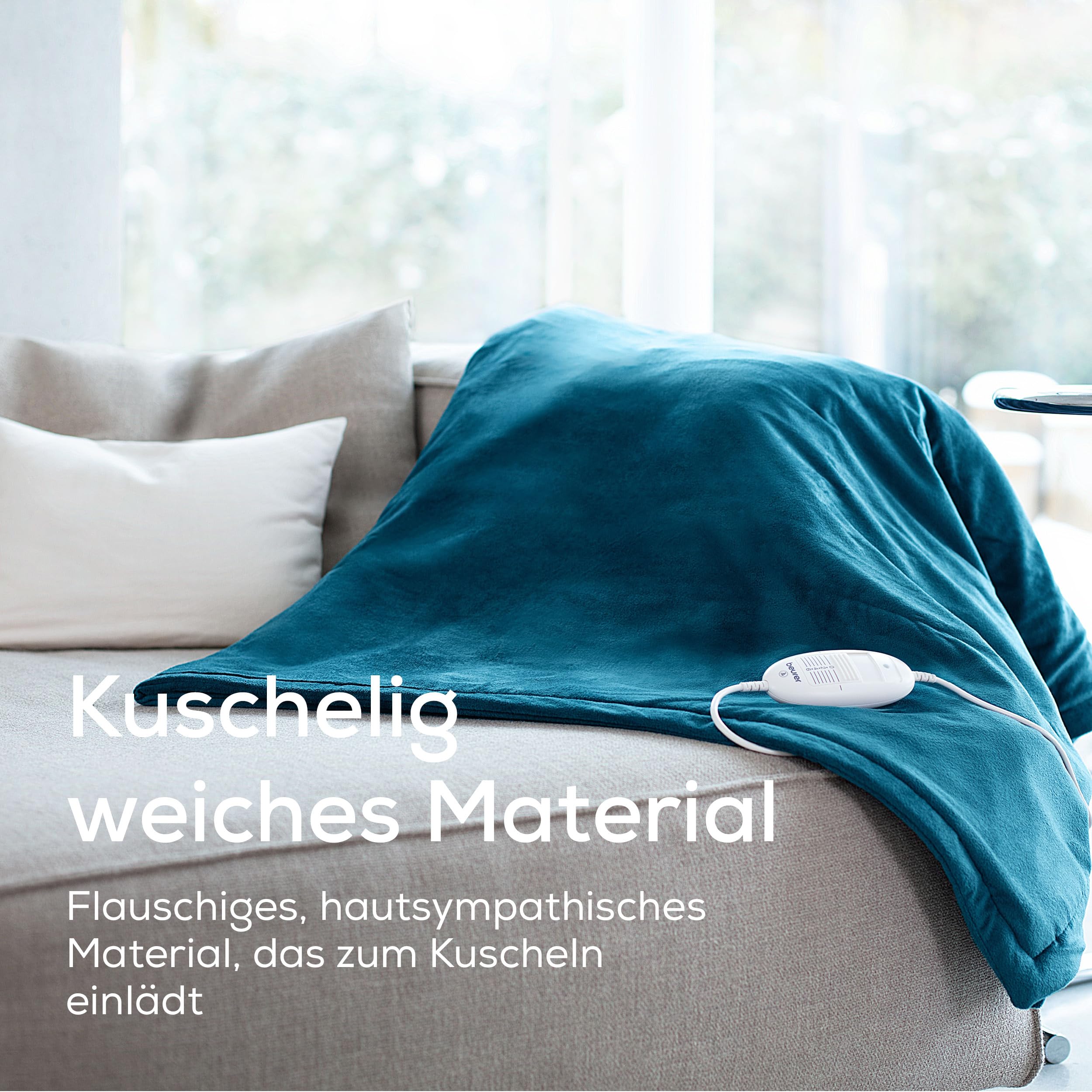 Die Beurer HD 75 Ocean Wärmezudecke bietet dank der sechs individuell einstellbaren Temperaturstufen wohlige Wärme ganz nach deinen persönlichen Bedürfnissen. Nutze die wärmende Decke als Kuschelheizdecke für gemütliche Momente auf dem Sofa, oder an lauen Sommerabenden auf der Terrasse oder dem Balkon. Durch das traumhaft weiche und kuschelige Obermaterial eignet sich die Decke selbst ohne Nutzung der Wärmefunktion als Kuscheldecke für jeden Tag.