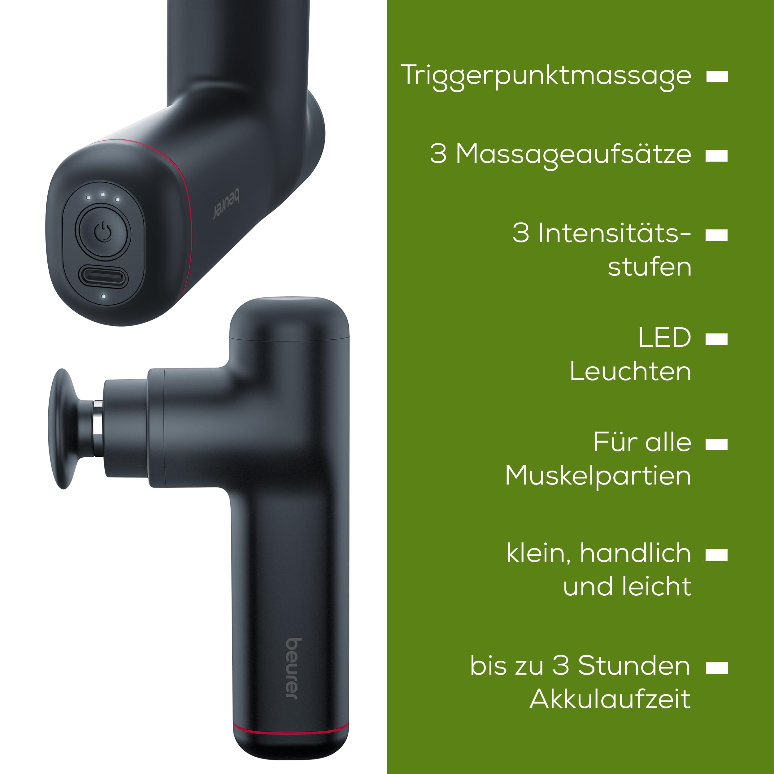 Beurer MG 79 Massage Gun Sensitive, kompakte Massagepistole mit 3 Aufsätzen, sanfte Triggerpunktmassage für empfindliche Körperbereiche, handliches Muskelmassagegerät mit 3 Intensitätsstufen