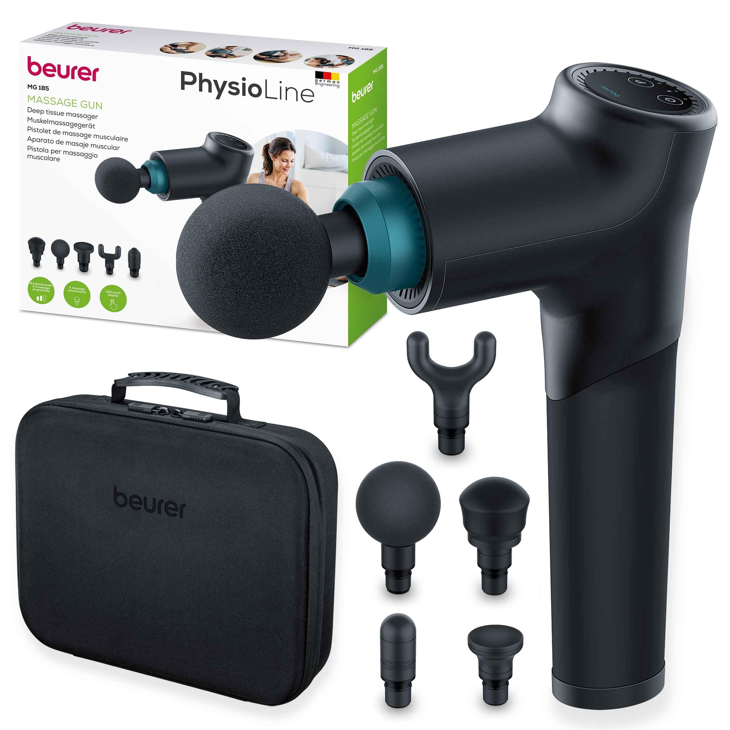 Beurer MG 185 Massagepistole, Massage Gun mit 5 Aufsätzen, kraftvolle Triggerpunktmassage, Lockerung von Verspannungen, Muskelmassagegerät mit 9 Intensitätsstufen, mit Akku