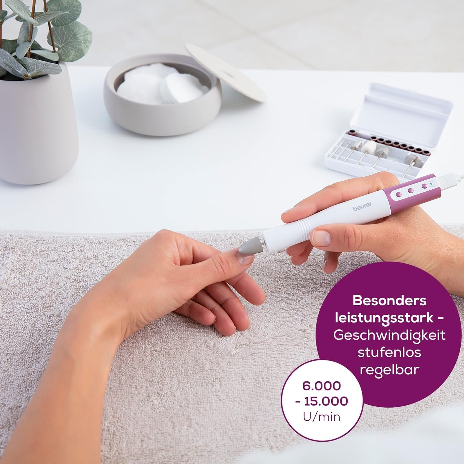 Beurer MP 52 Elektrisches Maniküreset – Leistungsstarker Nagelfräser für präzise Nagelpflege, für Natur- & Kunstnägel geeignet, bis 15.000 U/min, inkl. 8 Profi-Aufsätze