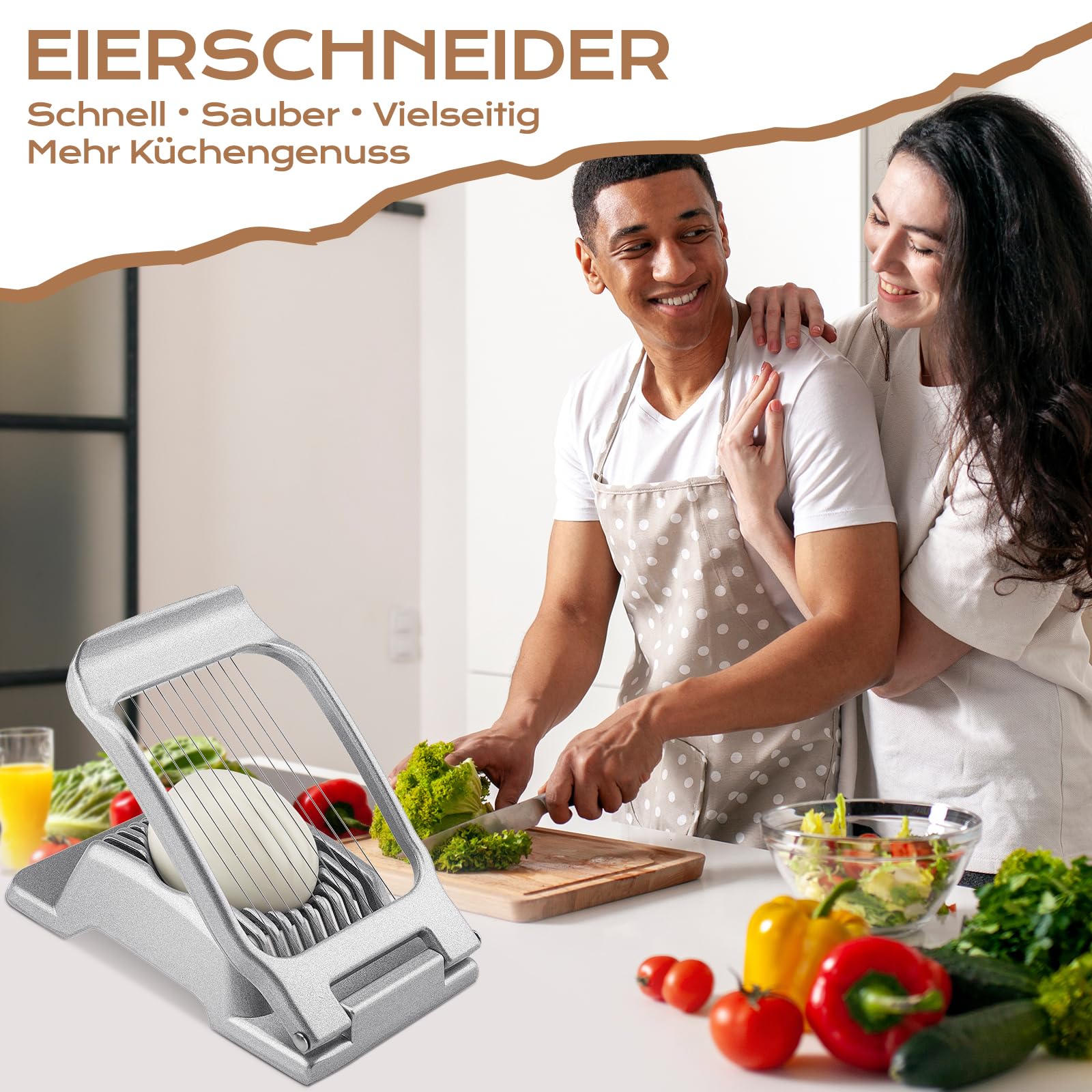 - ????【Mehrzweck】 Der eierschneider edelstahl eignet sich nicht nur hervorragend für gekochte Eier, sondern kann auch schnell und einfach Kiwi, Erdbeeren, Käse, Butter, Pilze usw. basierte Vorspeisen.Perfekt für die Zubereitung von Kochsalaten oder Vorspeisen auf Eibasis.