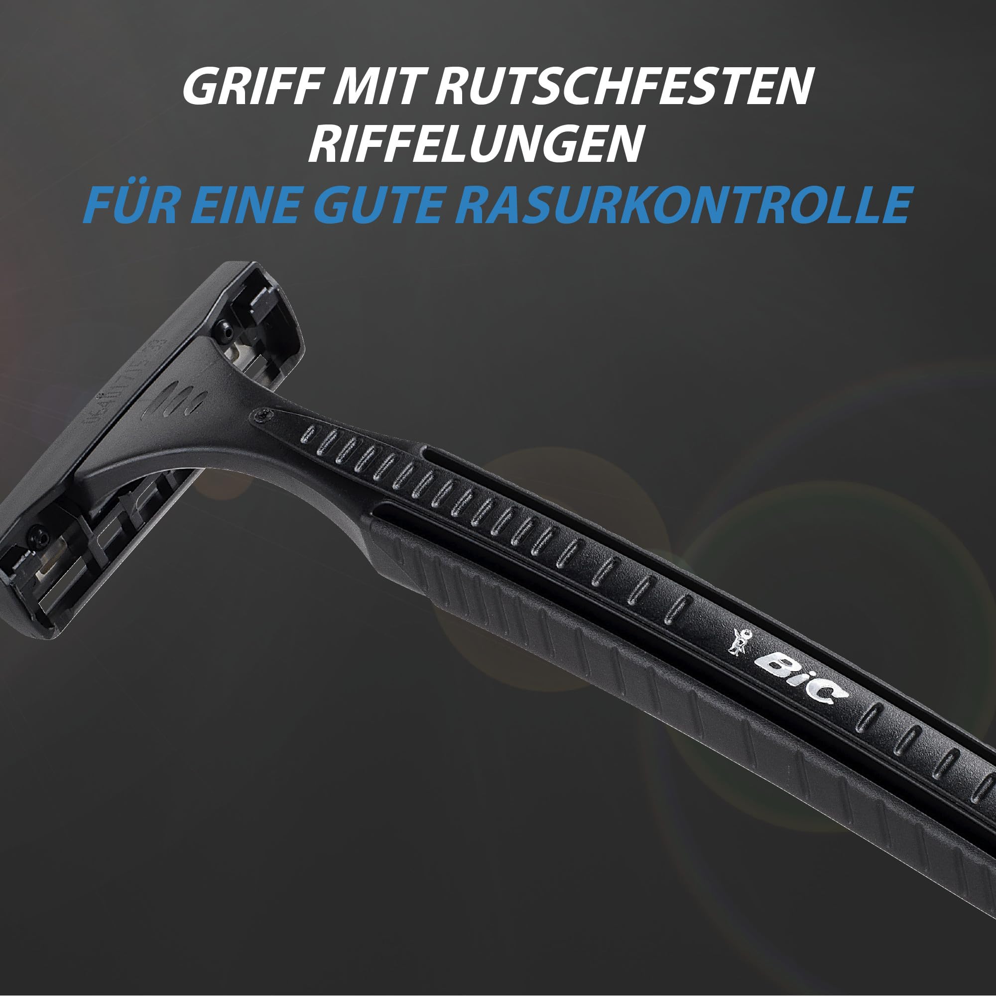 BIC 3 Action Herren Rasierer Set Noch schnellere und sichere Rasur: Ausgestattet mit einer 3-Klingen-Technologie sorgt der fixierte Rasierkopf für kontrolliertes und gründliches Rasieren - auch bei empfindlicher Haut. Der integrierte Gleitstreifen mit Aloe Vera sowie die Antirutschzone am Grifferlauben ein super leichtes Gleiten und eine sanfte und zugleich schnelle Rasur. Der Rasierer ist mit drei fixierten Klingen ausgestattet, die sich unabhängig voneinander bewegen. Mehrere Rasuren lang bleiben die Klingen scharf für ein gleichbleibend gutes Rasur-Ergebnis. Für eine sichere und gründliche Haarentfernung: 3 bewegliche Klingen auch für empfindliche Hautpartien Fixierter Rasierkopf - für ein sicheres Rasieren Extra breiter Gleitstreifen mit Aloe Vera - für geschmeidiges Gleiten über die Haut Sorgt für eine optimal rasierte Haut BIC Rasierer werden ausschliesslich in eigenen Produktionsstätten in Griechenland und Frankreich hergestellt. So können die hohen Ansprüche an die Produktqualität stets überprüft und eingehalten werden. Eine strenge Qualitätskontrolle während der Herstellung sorgt für gleichbleibende Produktqualität. Die Produktentwickler bei BIC können auf jahrelange Erfahrung in der Herstellung von Rasierern zurückgreifen. Zusammen mit dem Anspruch, immer die neuesten technischen Entwicklungen in das Produktdesign zu integrieren, entstehen so Produkte, die den Kunden ein optimales Preis-Leistungs-Verhältnis bieten. Selbstverständlich werden dabei die internationalen Normen für Produktsicherheit und Gesundheitsverträglichkeit stets eingehalten.