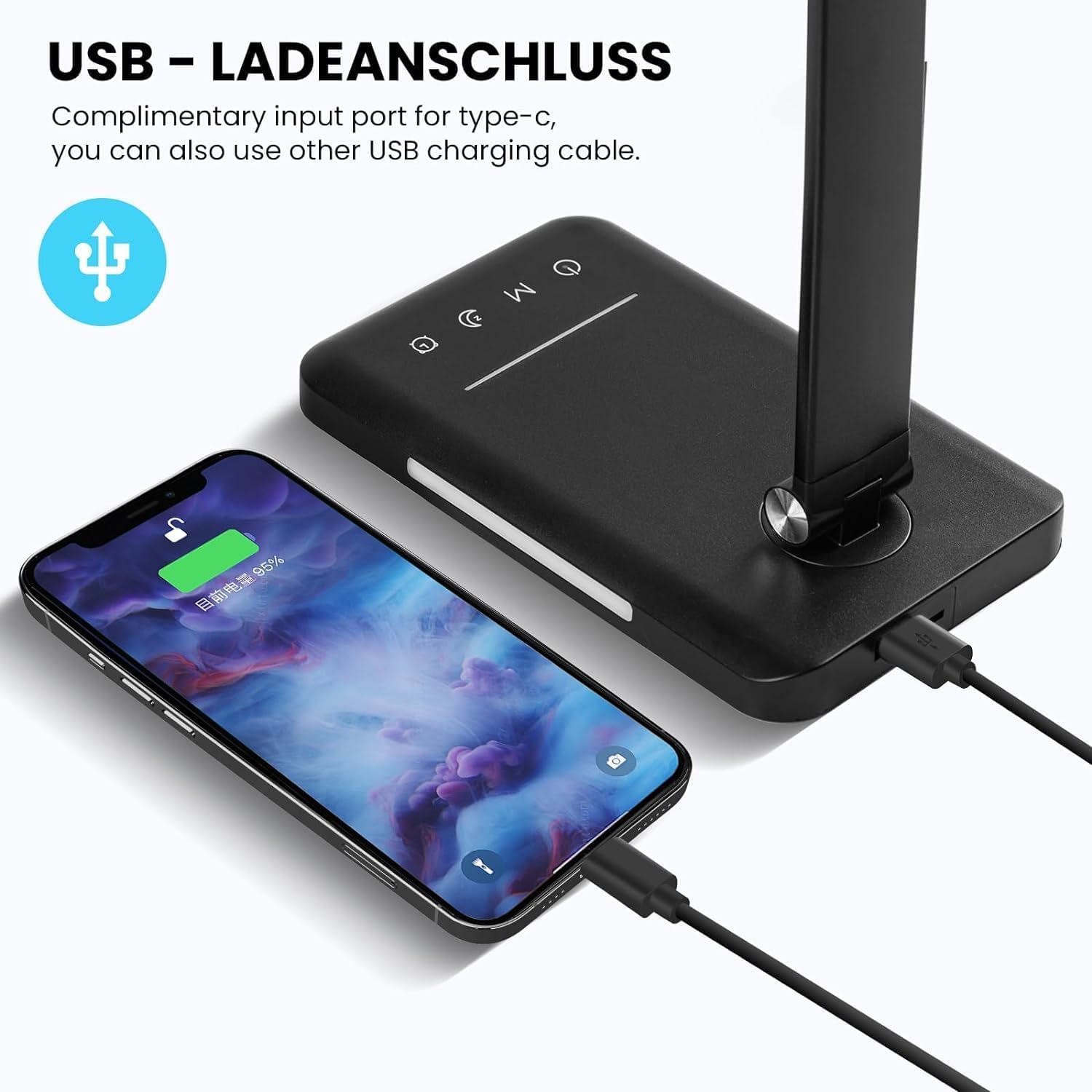BIENSER Schreibtischlampe LED Dimmbar - 560LM Bürolampe Desk Lamp mit 5 Farbmodi & 10 Helligkeitsstufen, 10W Schreibtisch Lampe mit Nachtlicht, USB-Anschluss, Memory-Funktion & Auto Timer - Schwarz
