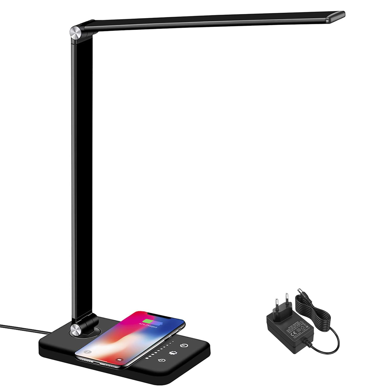 BIENSER Schreibtischlampe LED mit 10W Wireless Charging, USB Ladefunktion, Bürolampe Tischlampe mit 10 Helligkeits X 5 Farbstufen, Augenschonende, Dimmbar, Sensible Kontrolle, 30/60 min Auto Timer