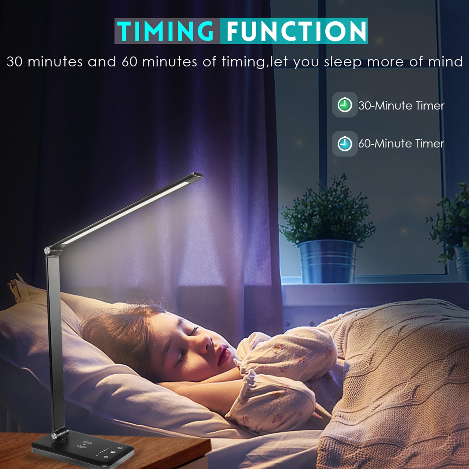 BIENSER Schreibtischlampe LED, 10W Wireless Charging & USB Ladefunktion, Bürolampe Tischlampe mit 10 Helligkeits X 5 Farbstufen Dimmbar, Memory Funktion, Sensible Kontrolle, 30/60 min Auto Timer, 20W