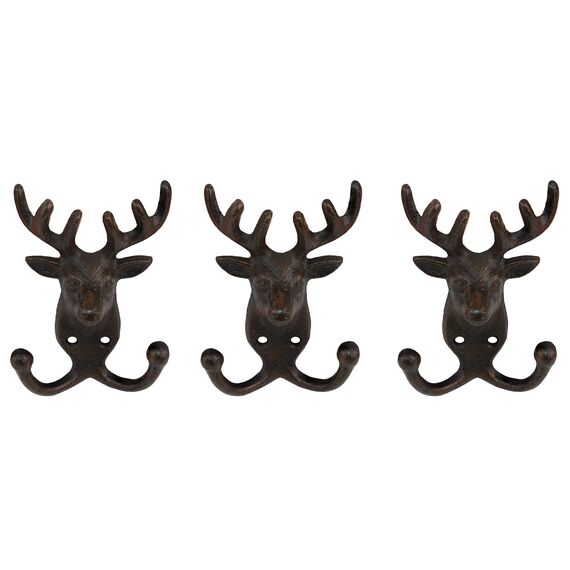 BigDean 3x Wandhaken Hirsch 2er Haken Gusseisen Garderobenhaken Werkzeughalter 9,5 x 4,5 x 12,5 cm