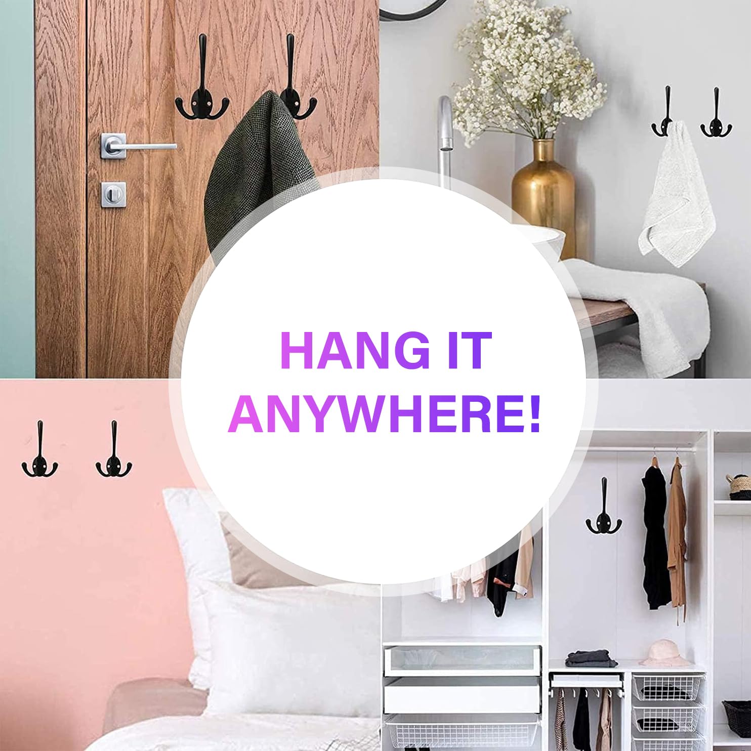 - Drei-Krallen-Haken-Design: Sie verwenden einen Doppelhaken, damit Ihre Kleidung oder die Gegenstände, die Sie aufhängen, nicht beschädigt werden. Sie können mehr Gegenstände aufhängen und Platz sparen. Kann innerhalb von 15 kg Dingen unterstützen. Gegenstände von grossen Kleidungsstücken bis hin zu kleinen Schlüsseln und so weiter klumpen nicht mehr auf Sofas, Betten und Böden herum. Halten Sie Ihr Zuhause ordentlich und organisiert