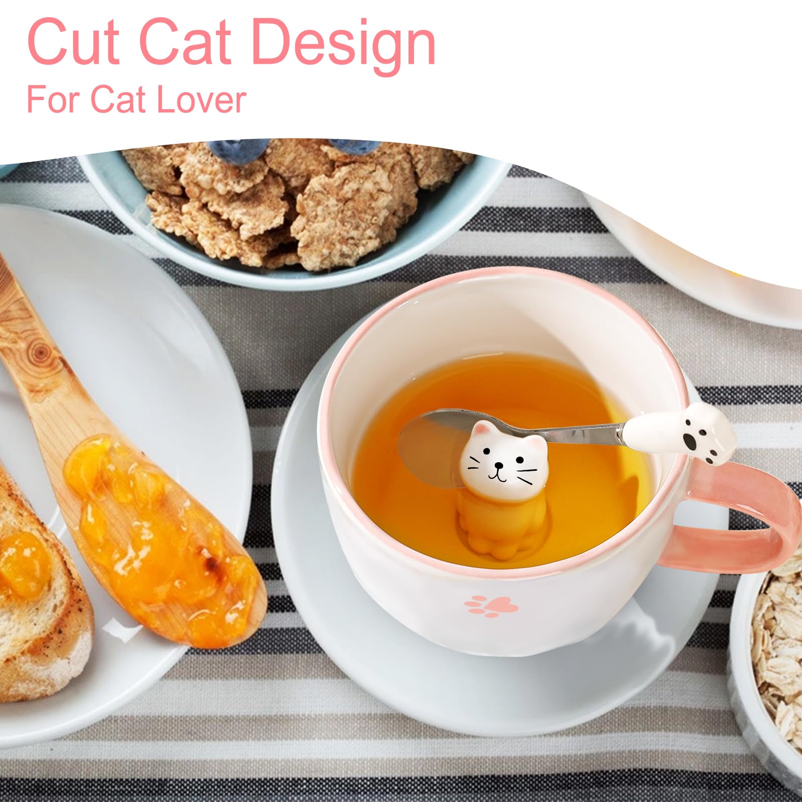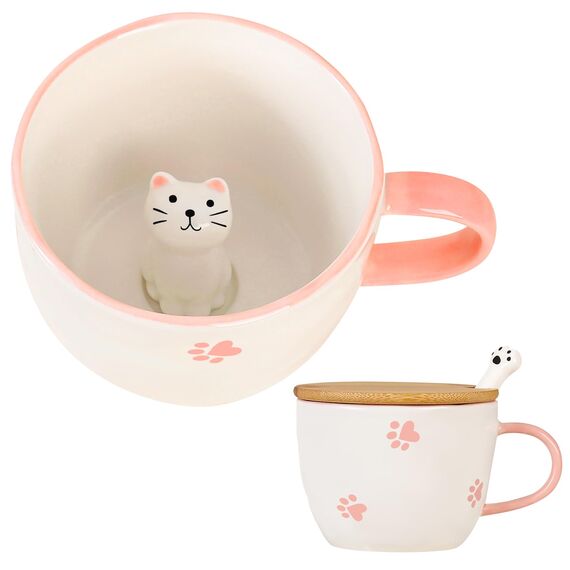 BigNoseDeer Süsse Sachen Keramik Katze Kaffeetasse Teetasse Deckel Löffel Lustige Tassen Geschenke für Frauen Kaffeebecher 3D Tasse Personalisiert Cappuccino Tasse Beste Freundin Weihnachten Geschenk