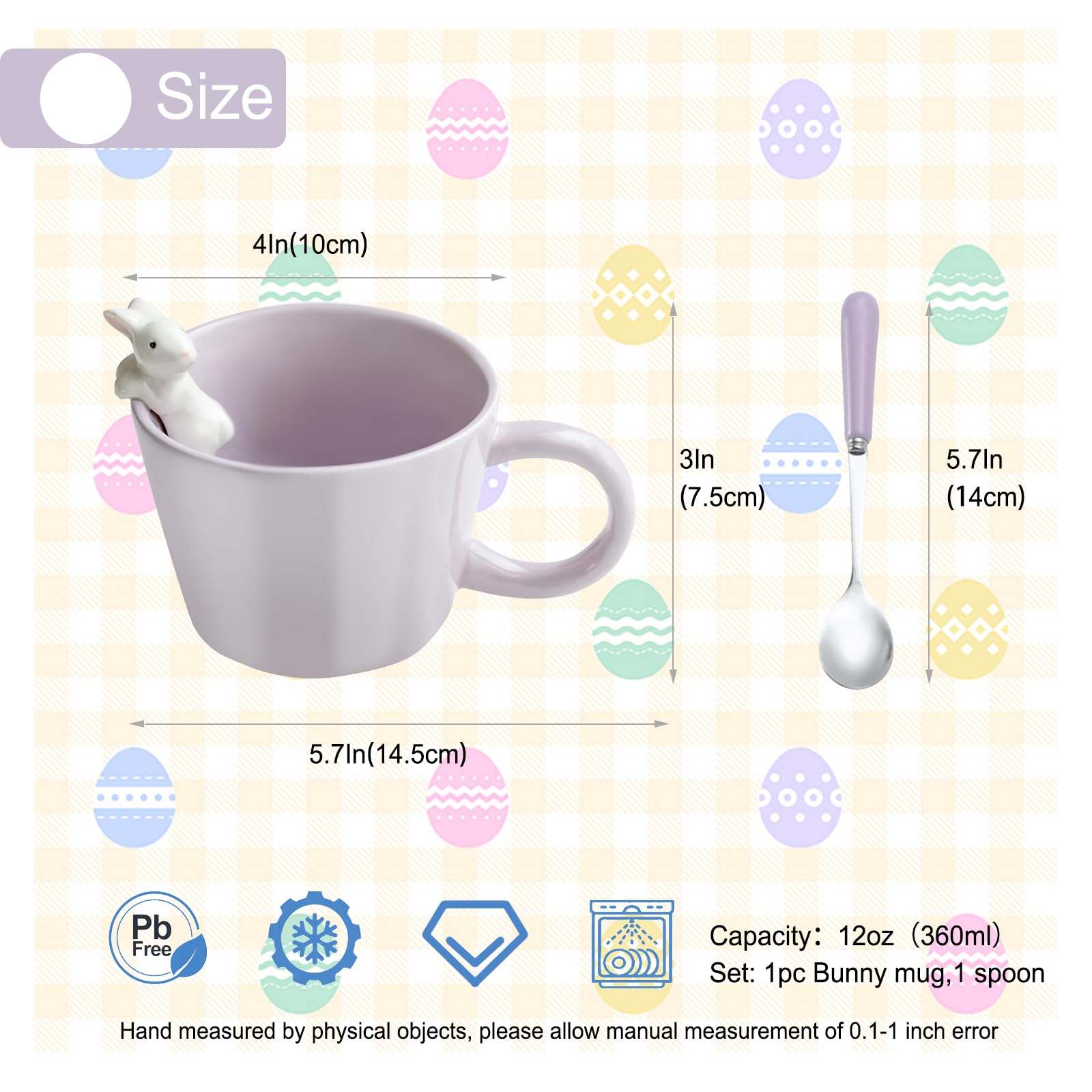 BigNoseDeer Tassen mit 3D-Kaninchen im Inneren, Keramik-Hasen-Kaffeetasse mit Löffel, niedliche Geschenke, Ostergeschenke, 350 ml, Violett