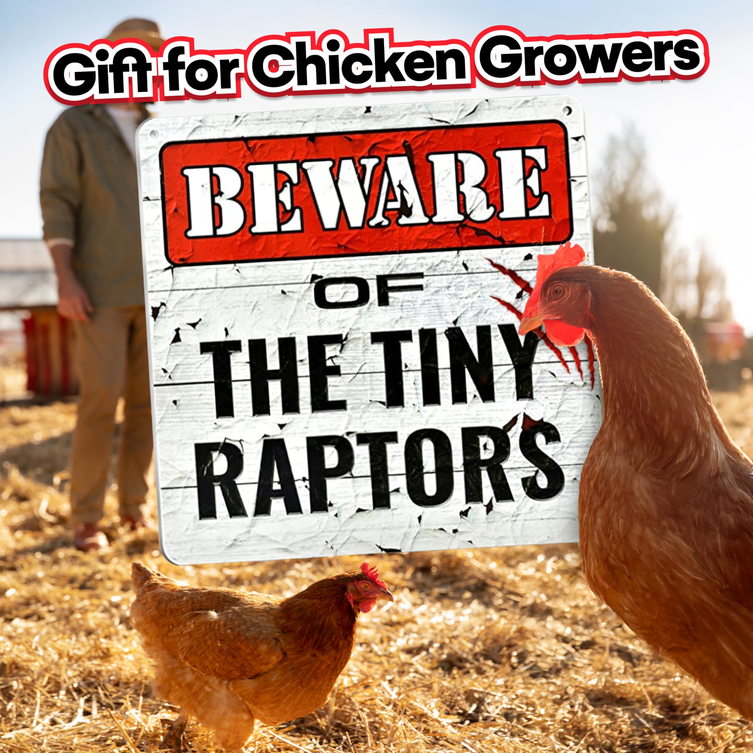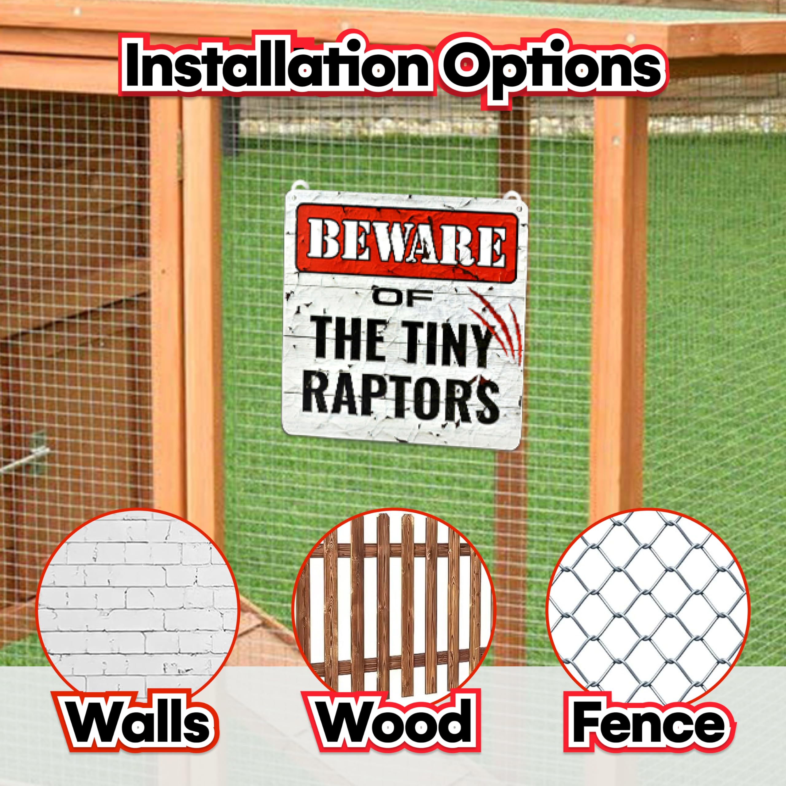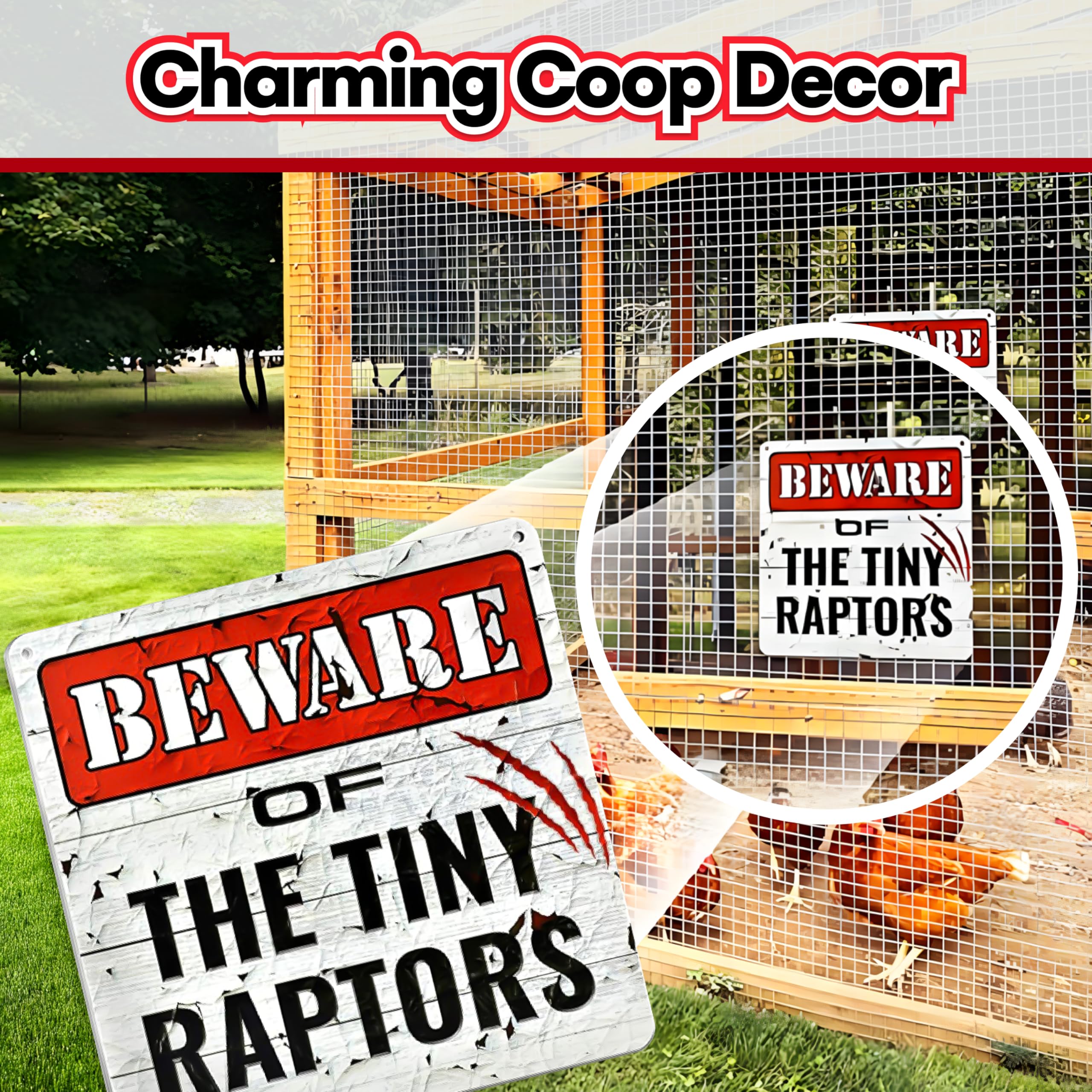 Bigtime Signs Tiny Raptors Hühner-Dekoration, 30,5 x 30,5 cm, Hühnerhof-Dekoration, Hühnerstall-Zubehör für Hühner-Futterspender, Geschenke für Hühnerliebhaber, PVC, 30,5 x 30,5 cm