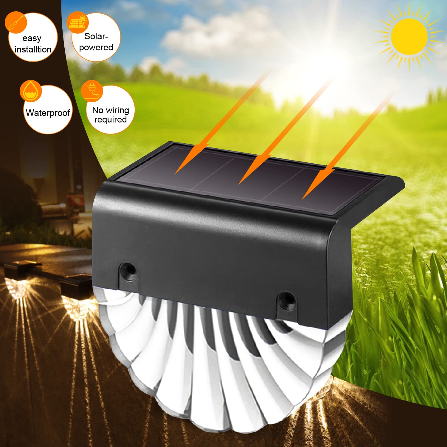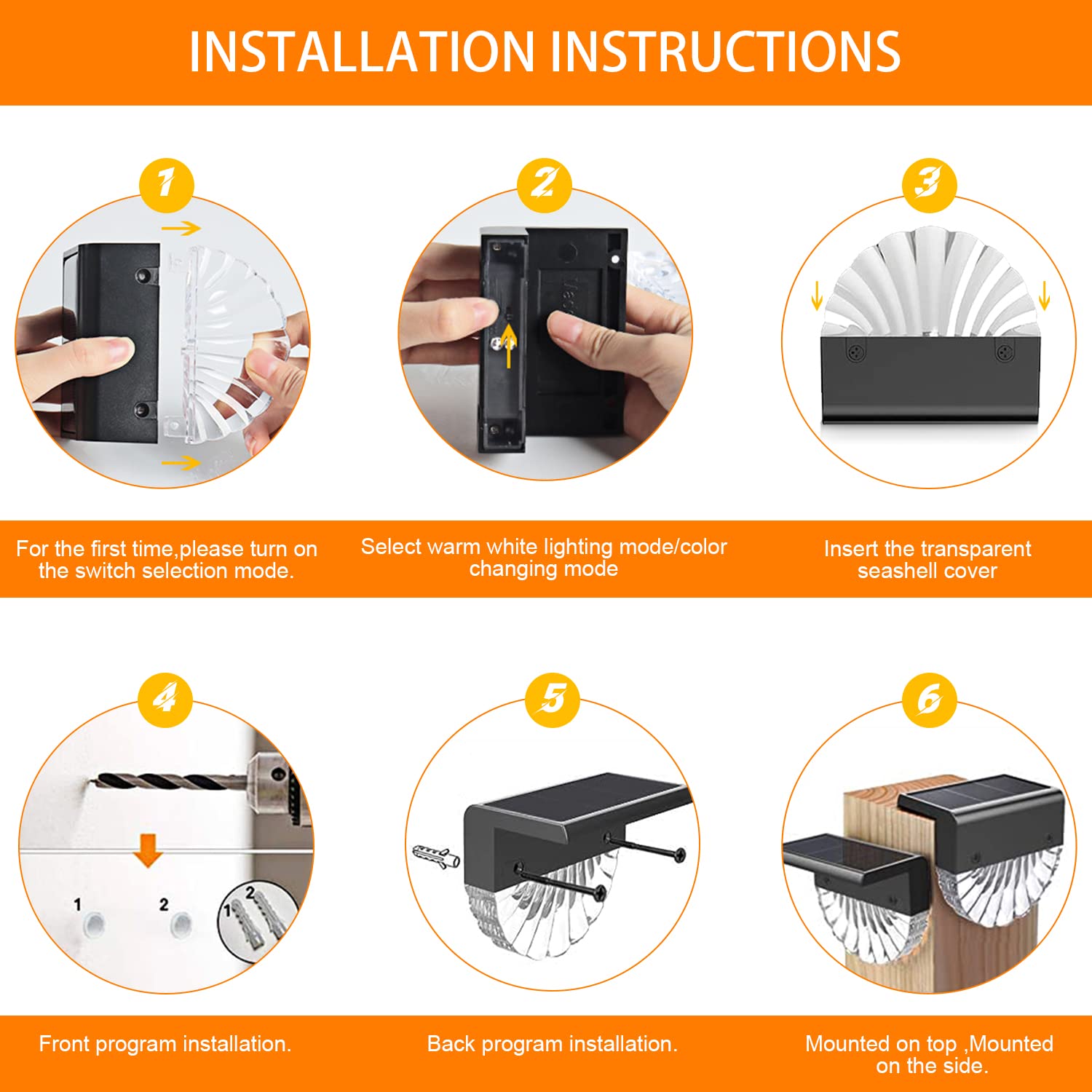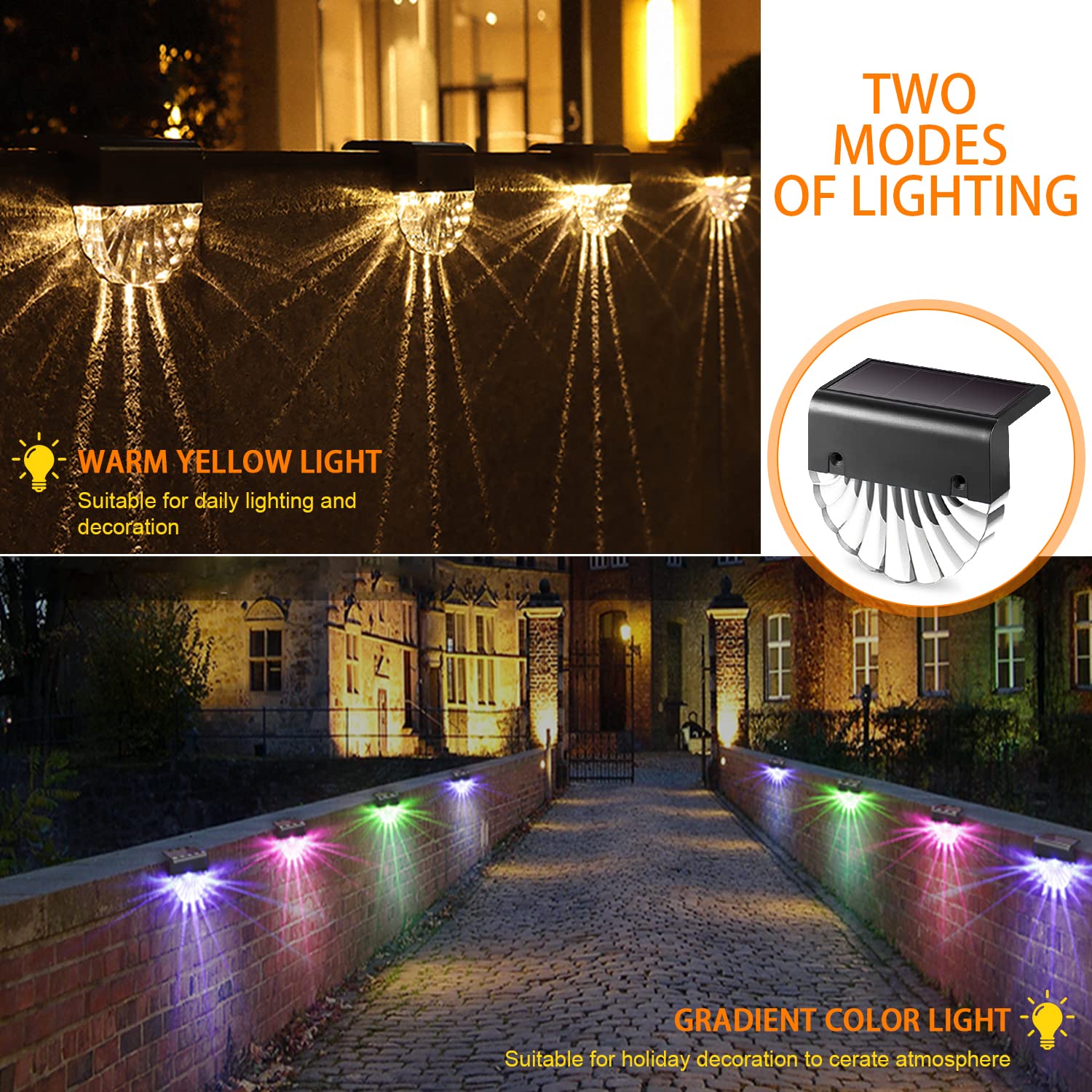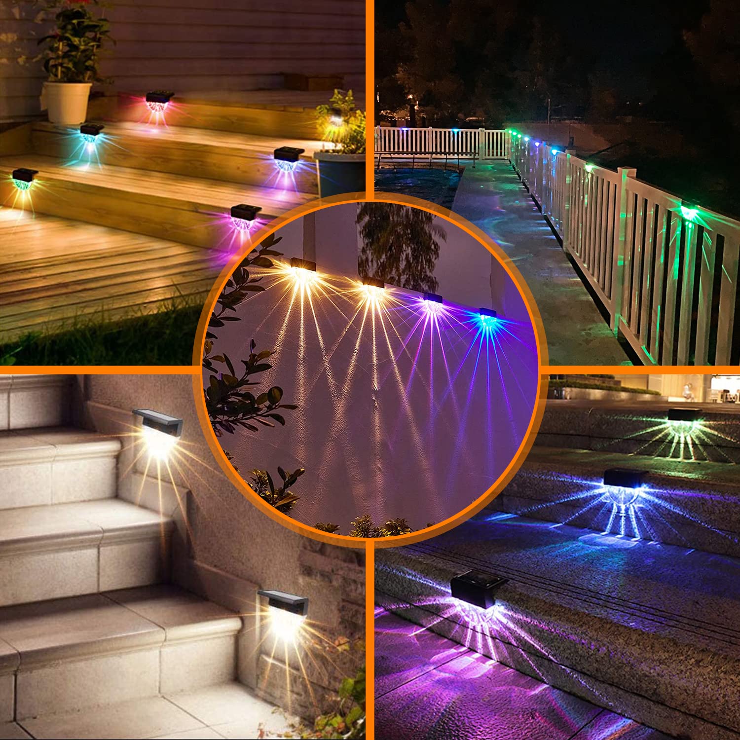 Bigzom Solarleuchte für den Aussenbereich, 6 Stück, Warmweiss + RGB-Beleuchtung, IP65, wasserdicht, für Terrasse, Treppen, Wege, Zäune, Gärten