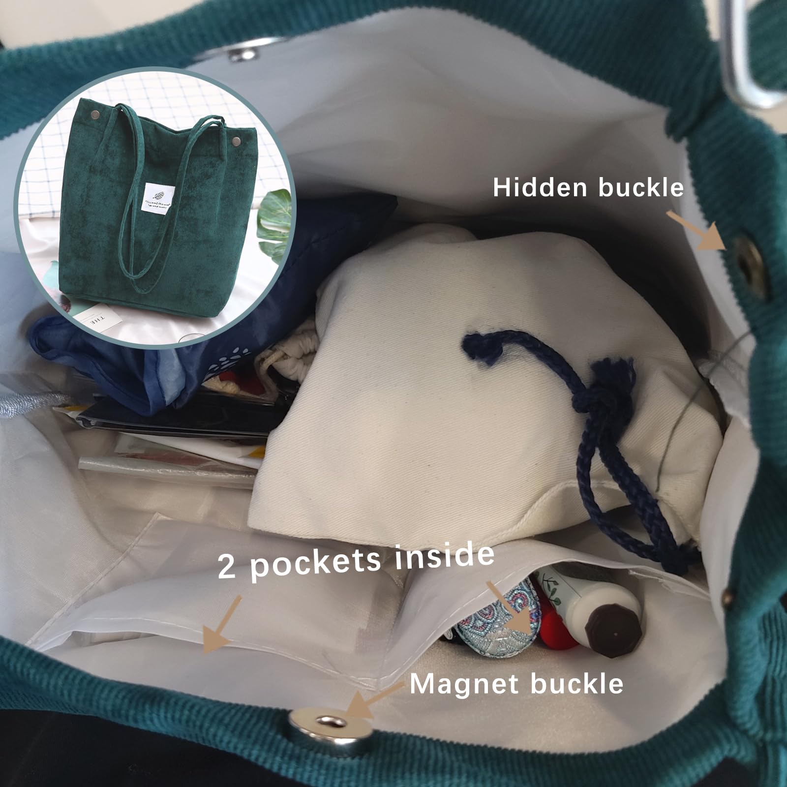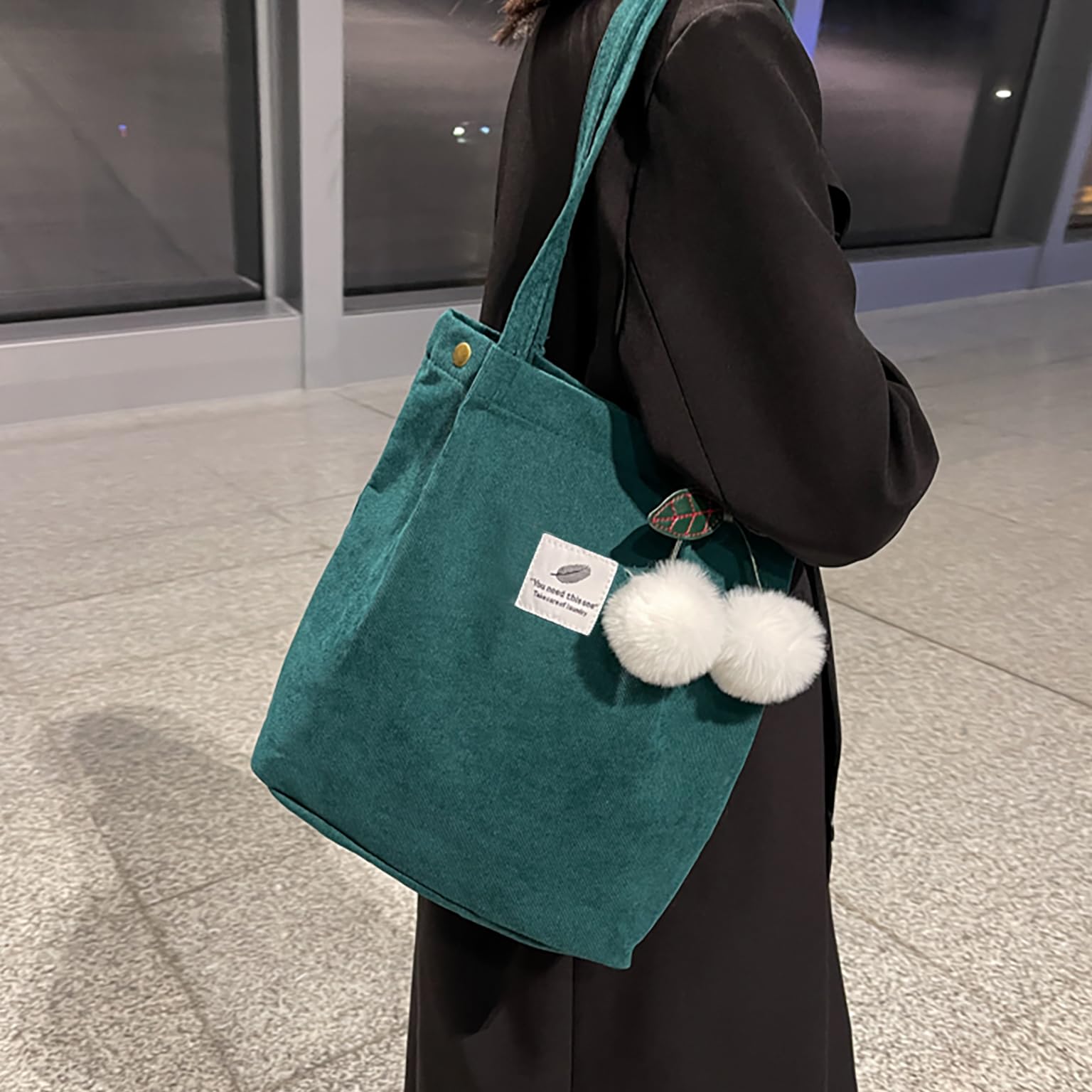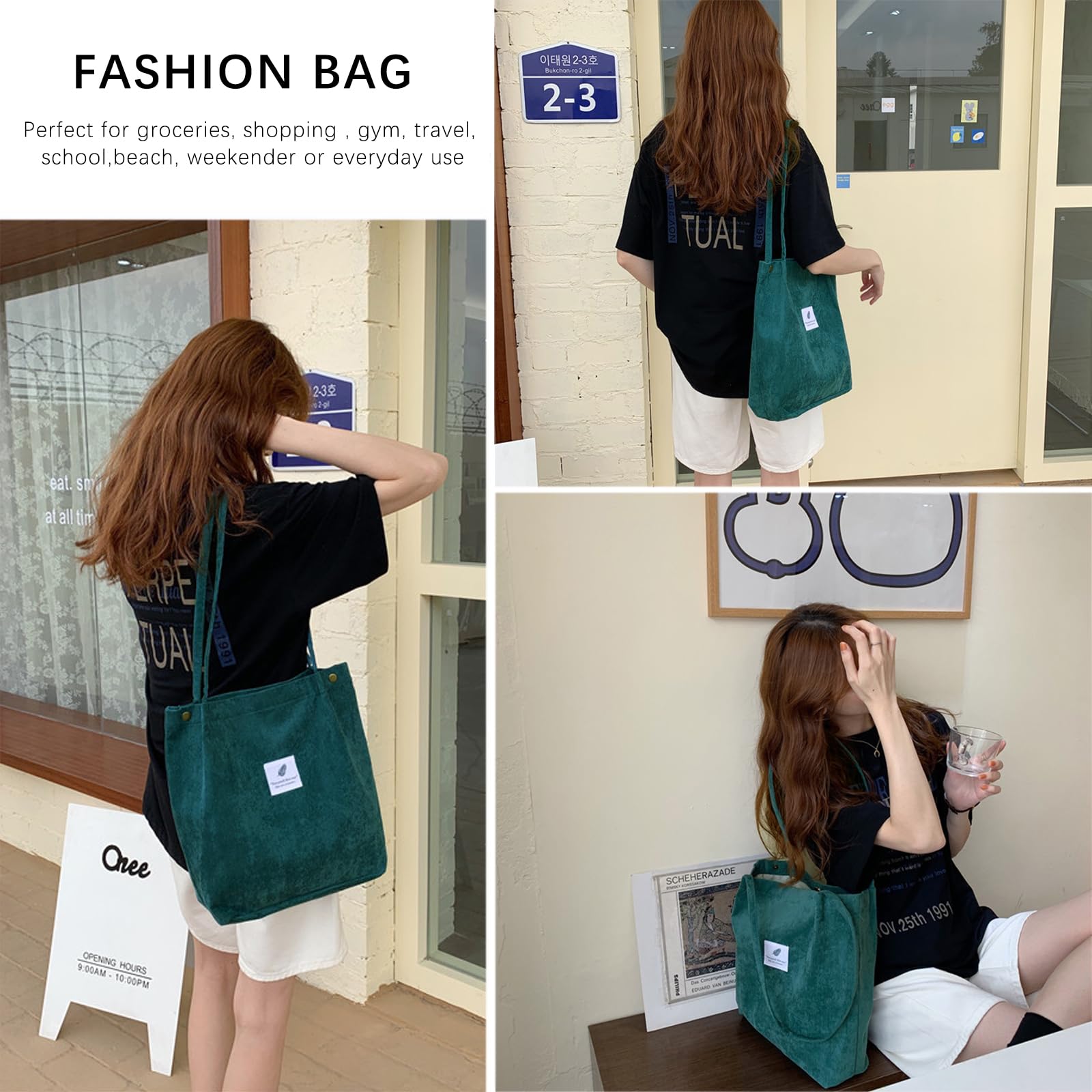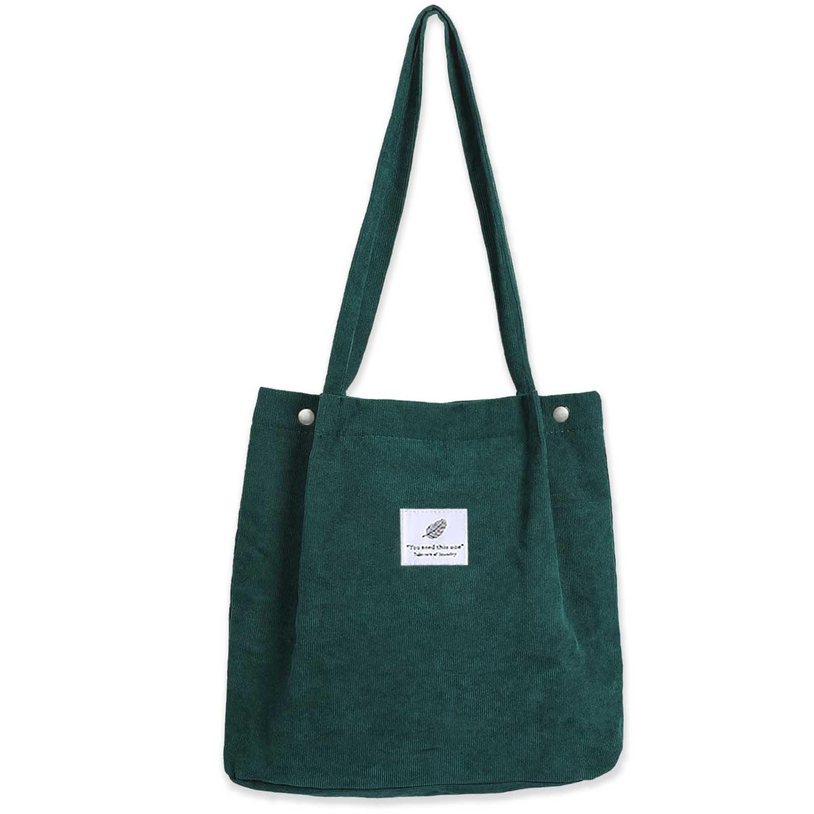 Bikasun Umhängetasche aus geripptem Samt für Damen und Mädchen - Grosser, wiederverwendbarer Tragebeutel mit Tasche - Einkaufstasche mit grosser Kapazität für die Schule