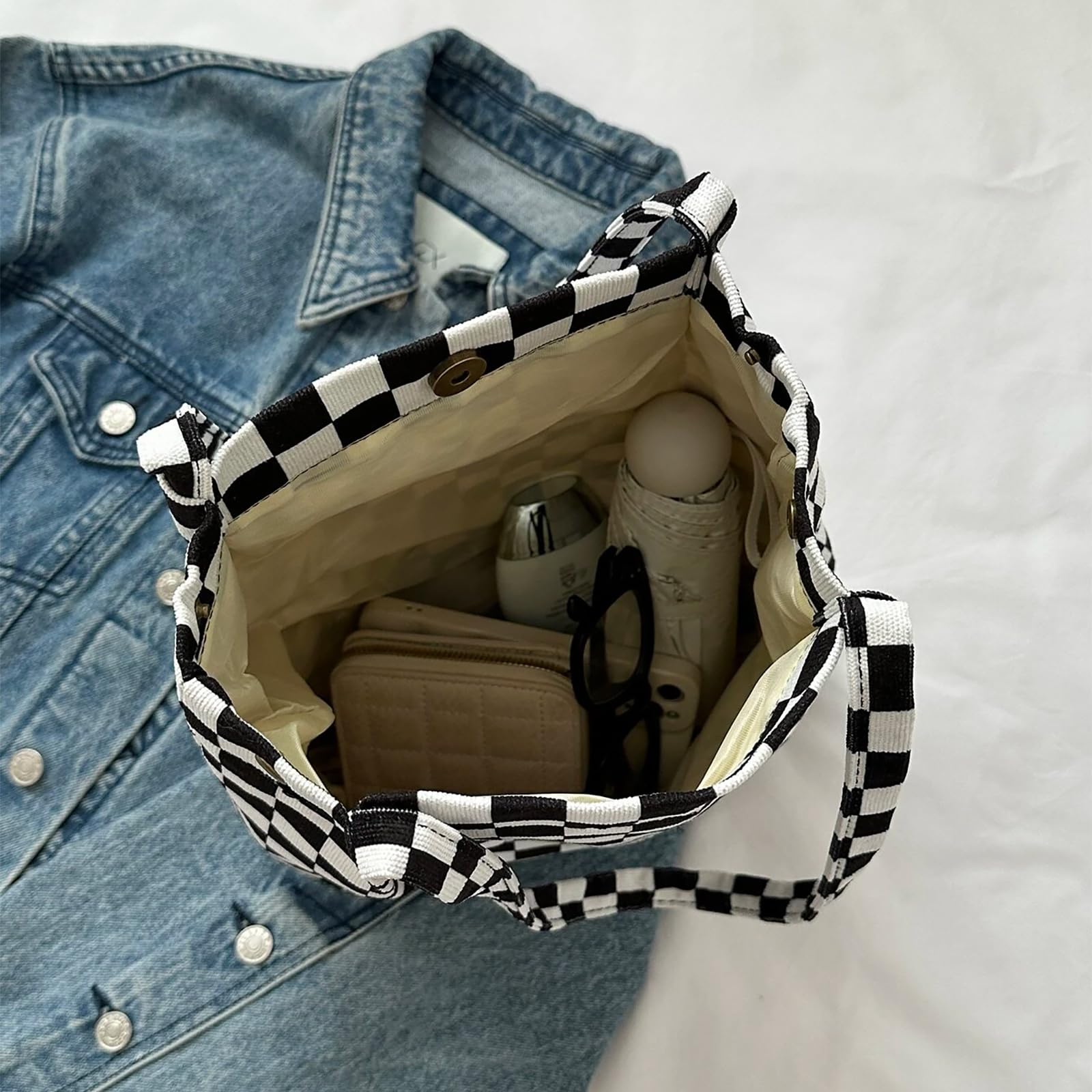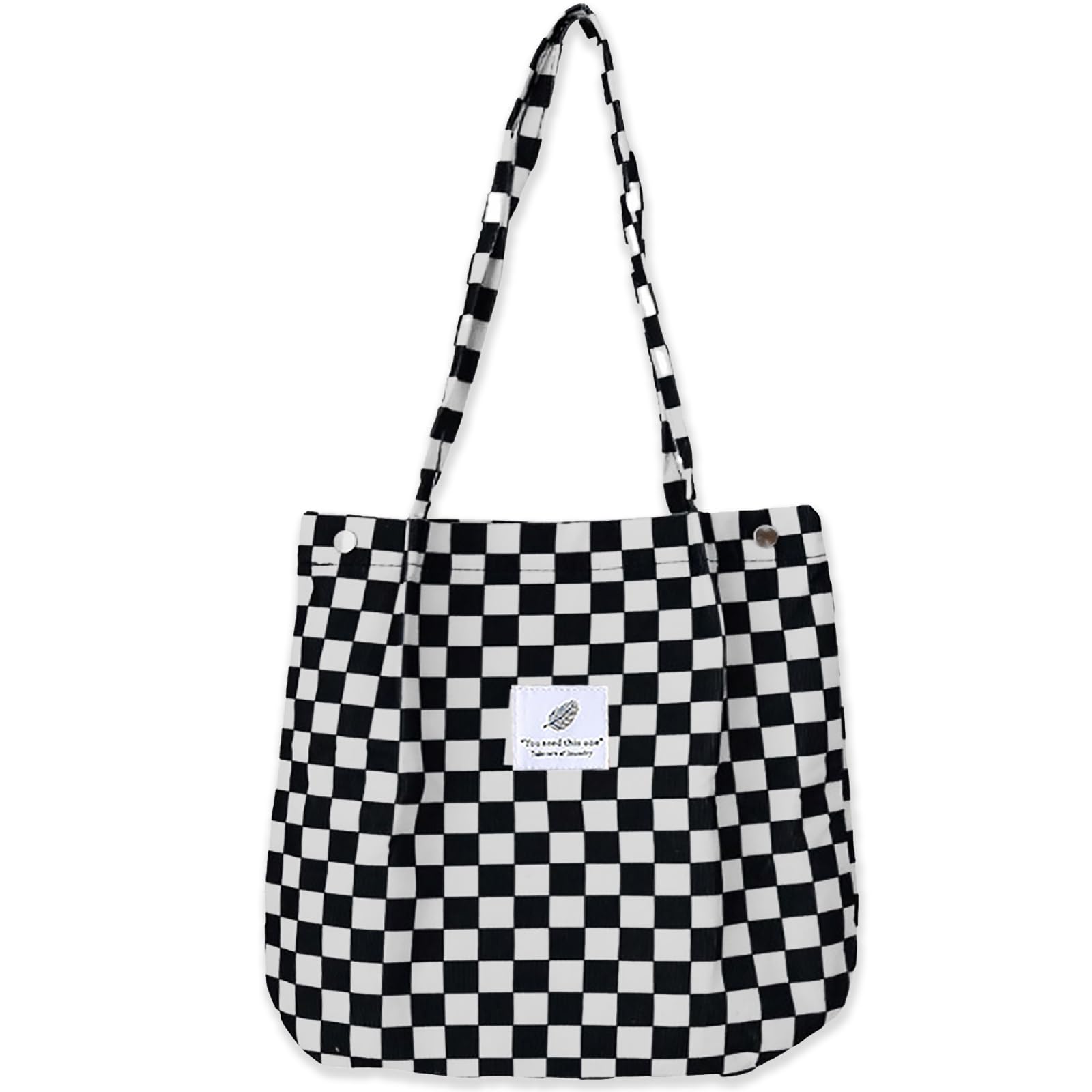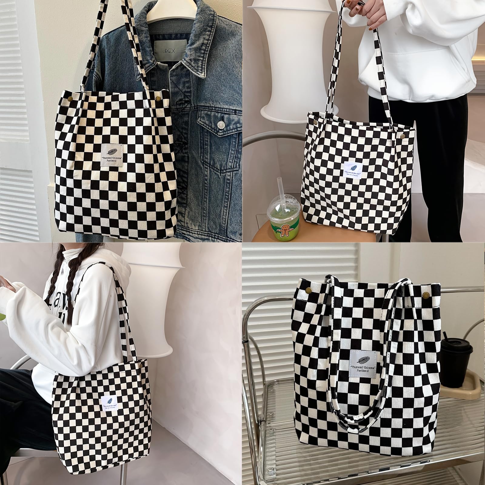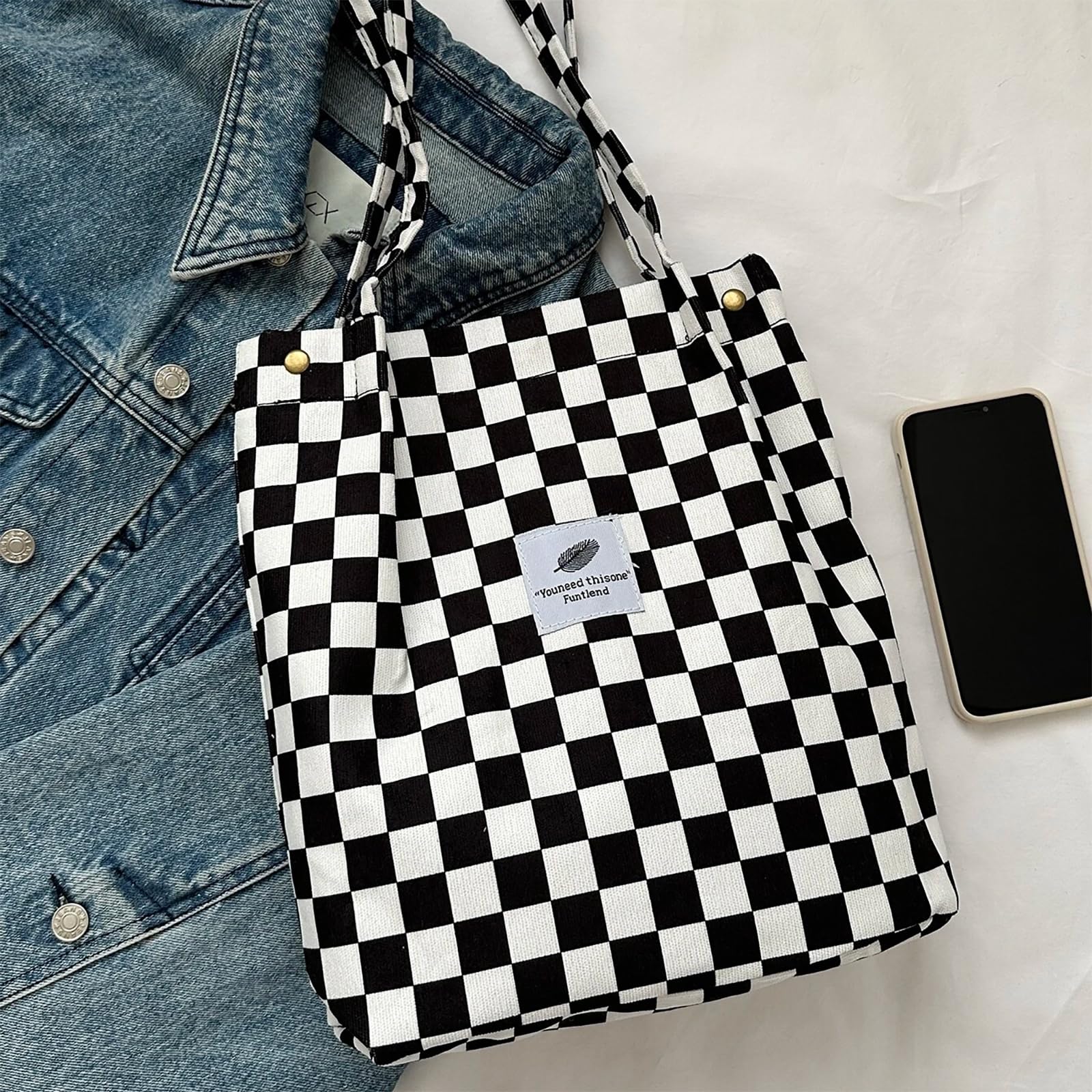 Bikasun Gross Umhängetasche Damen Cord Schultertasche Strandtasche Cord Tasche Crossbody Tasche Shopper Tote Bag Einkaufstasche Handtasche Shopper für Einkaufen Schule Schachbrettmuster