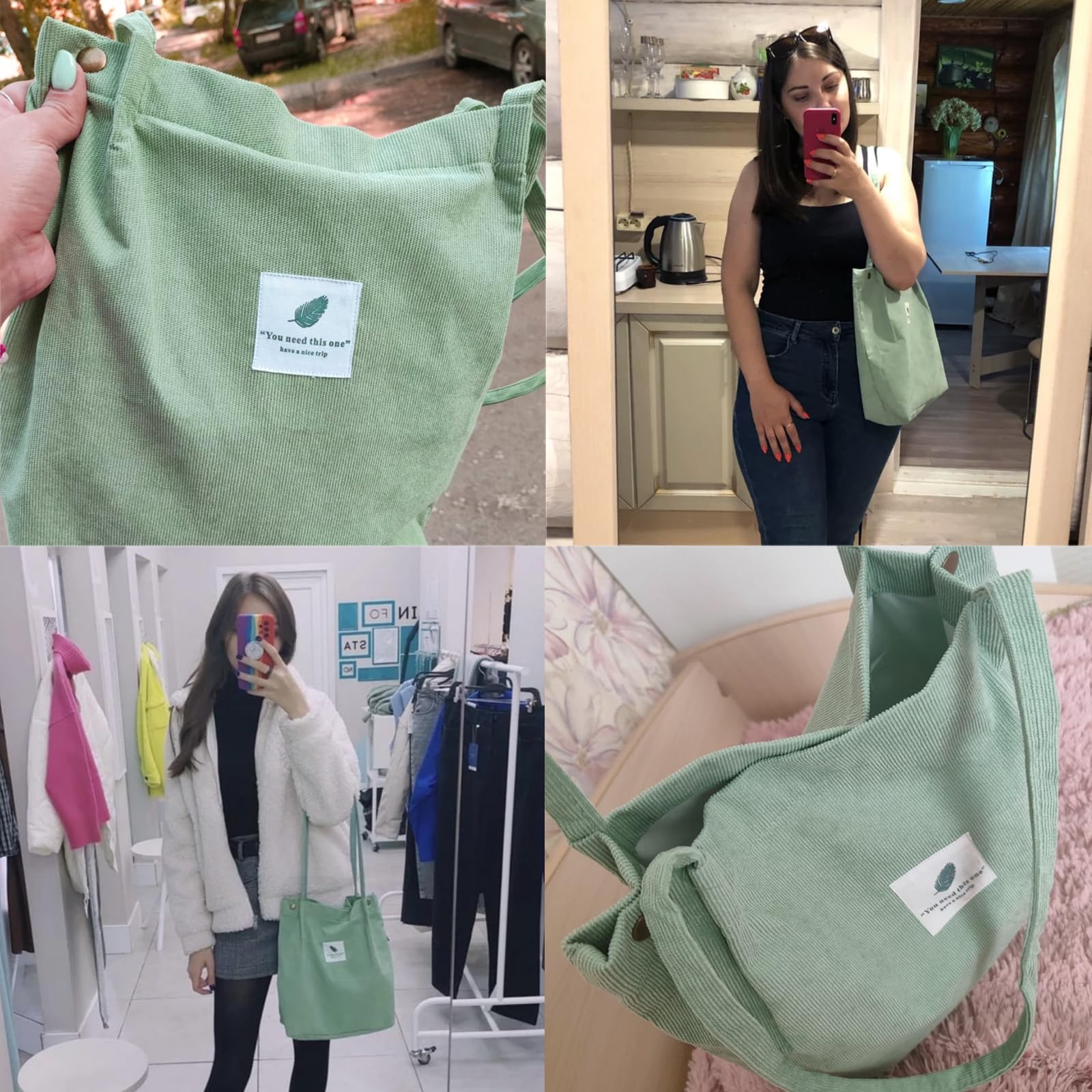 Bikasun -Einkaufstasche in geripptem Samt für Frauen und Mädchen Grosser wiederverwendbarer Transportbeutel mit Taschenbeutel mit grosser Kapazitätsrennen für die Schule