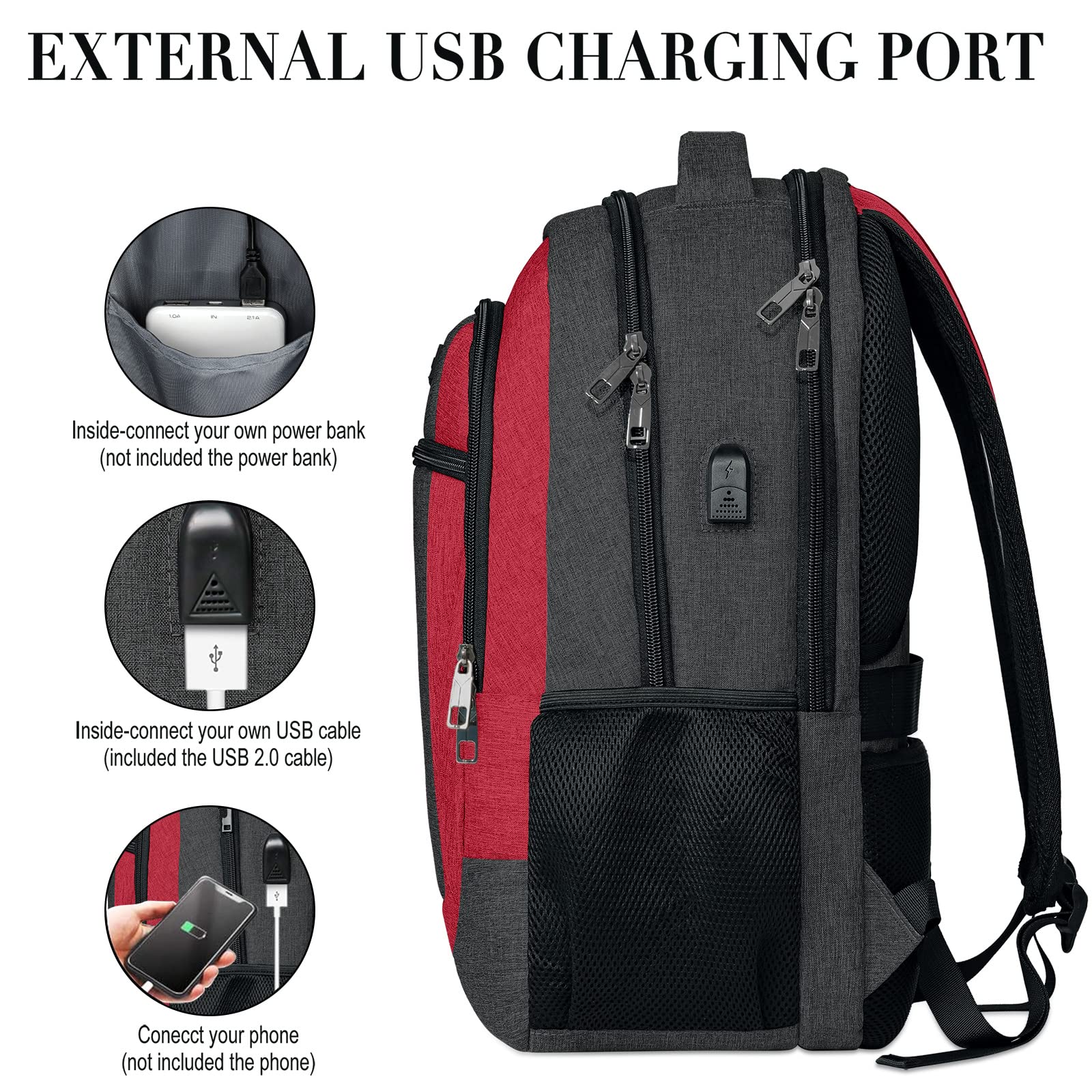 BIKROD Rucksack Herren und Damen, Schulrucksack Jungen Mädchen Teenager, Wasserdicht Rucksack | 15.6 Zoll Laptoptasche mit USB Ladeanschluss | Arbeit Reisen Wandern Backpack mit Anti Diebstahl Tasche