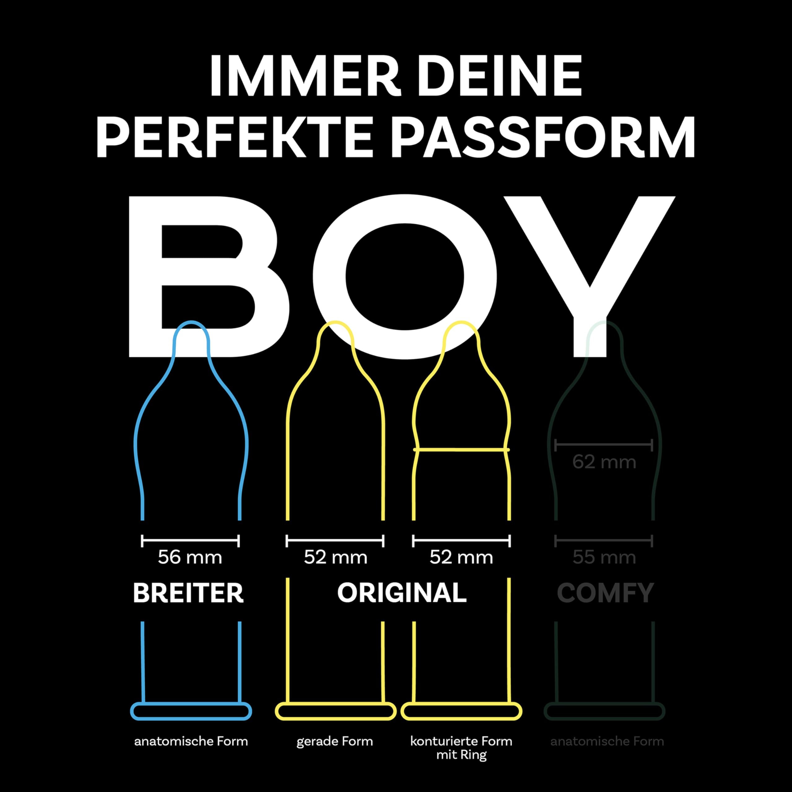 • HIER FÜR VIELFALT: Die Kondome aus Naturkautschuklatex mit Gleitfilm & Reservoir haben eine nominale Breite von 52 mm (Original) & 56 mm (Breiter). Mit leichtem Duft. Entdeckt auch unsere anderen Kondomsorten.