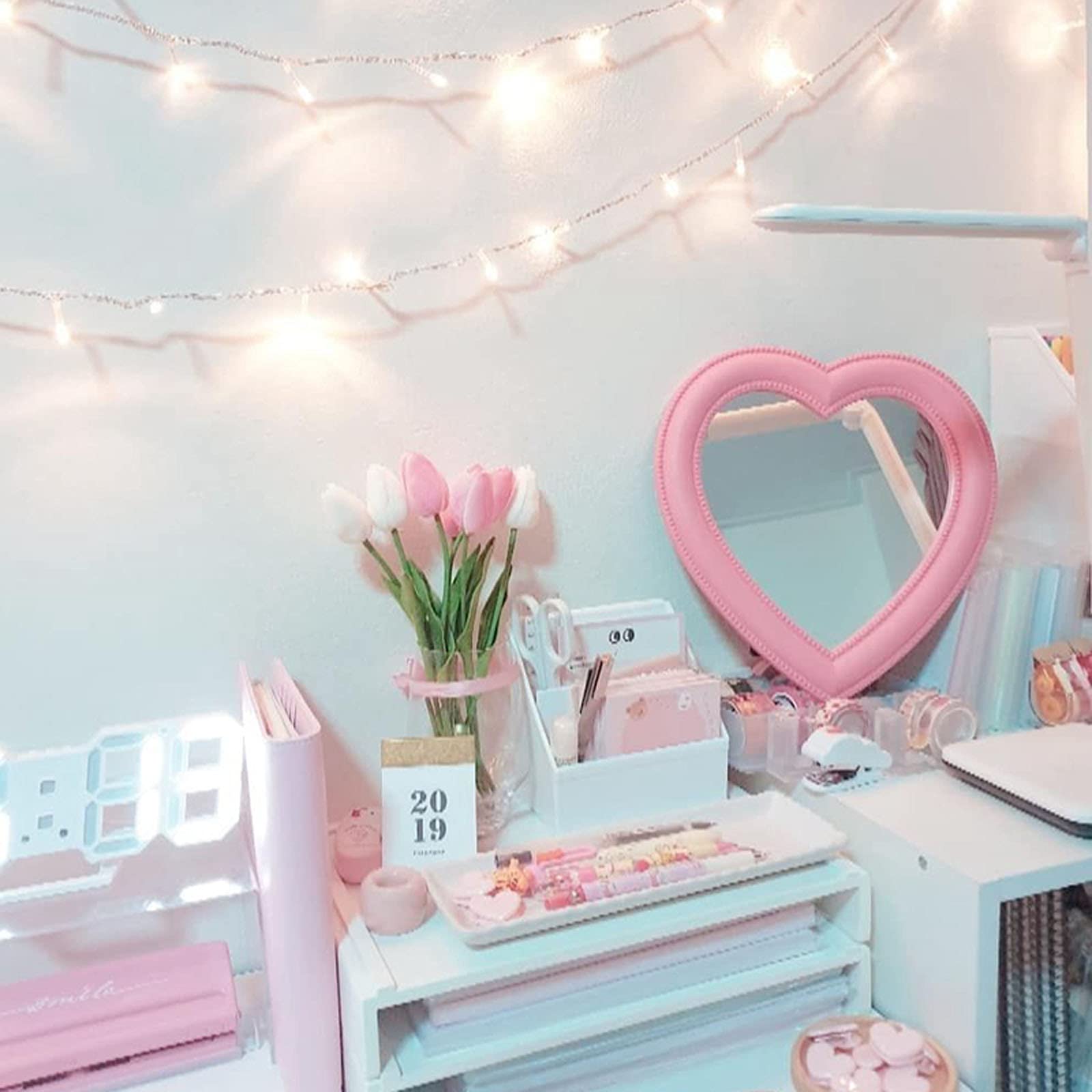 BinaryABC Herz-Make-up-Spiegel, Kosmetikspiegel, Wandspiegel, Schreibtischspiegel, Schlafzimmerspiegel, Hellrosa