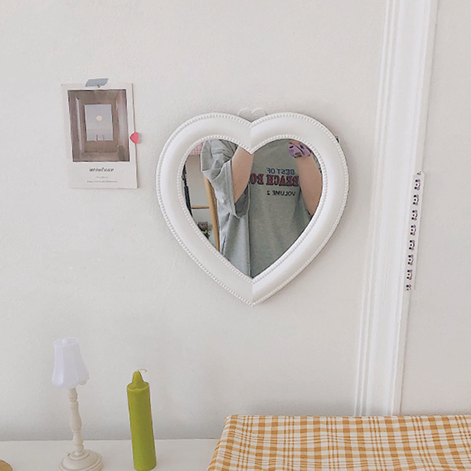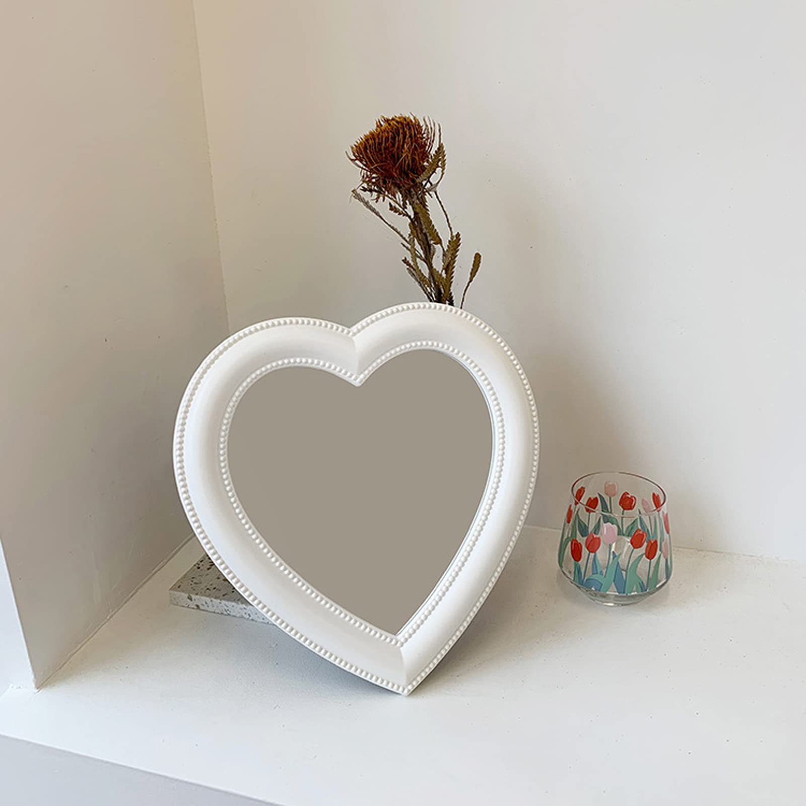 BinaryABC Herz-Make-up-Spiegel, Kosmetikspiegel, Wandspiegel, Schreibtischspiegel, Schlafzimmerspiegel (weiss)