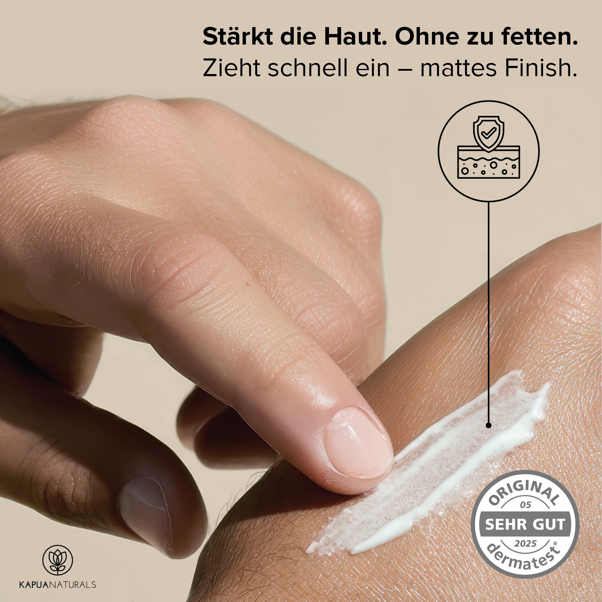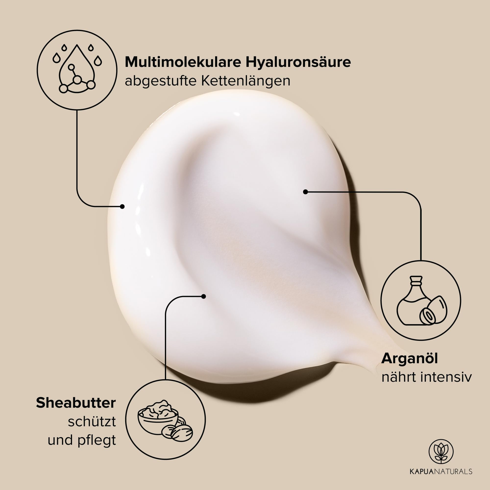 Verwöhnen Sie Ihre Haut mit der Kraft der Natur. Die Bio Hyaluron Creme von Kapua Naturals ist eine hochdosierte Feuchtigkeitspflege, die speziell entwickelt wurde, um den sichtbaren Zeichen der Hautalterung entgegenzuwirken. Diese reichhaltige Tages- und Nachtcreme kombiniert hochmolekulare Hyaluronsäure mit wertvollen Bio-Inhaltsstoffen, um Ihre Haut intensiv zu nähren und aufzupolstern.